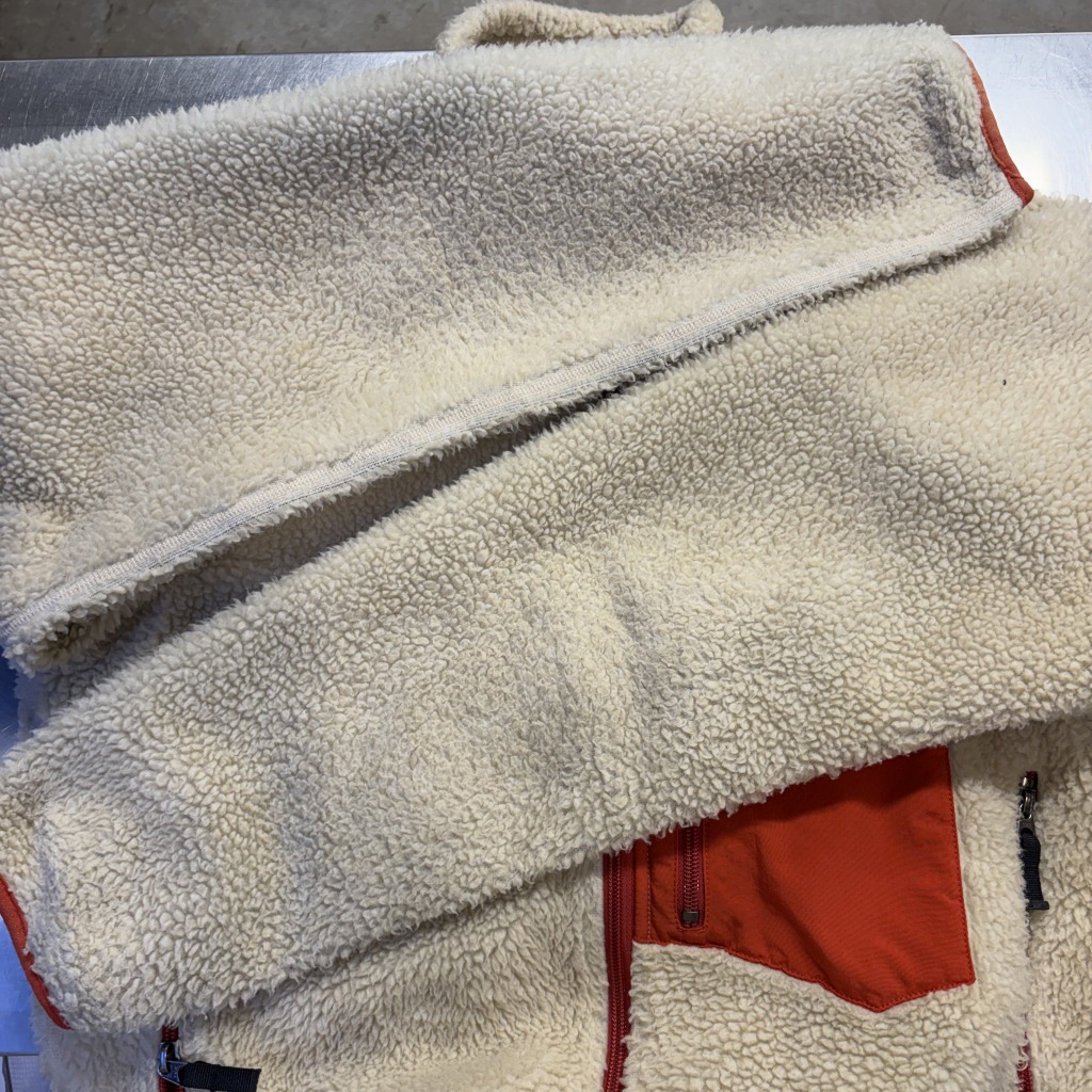 - 生地潰れや、袖、袖口,裾等に日焼け等による色落ちがあり全体的に着用感ございます。