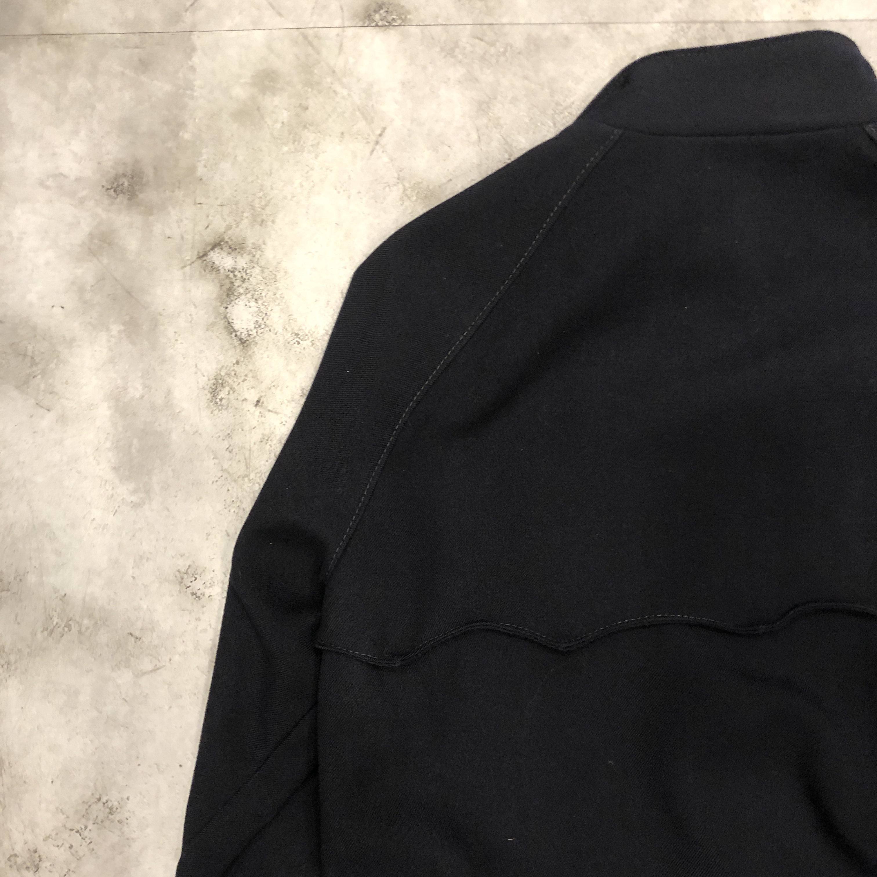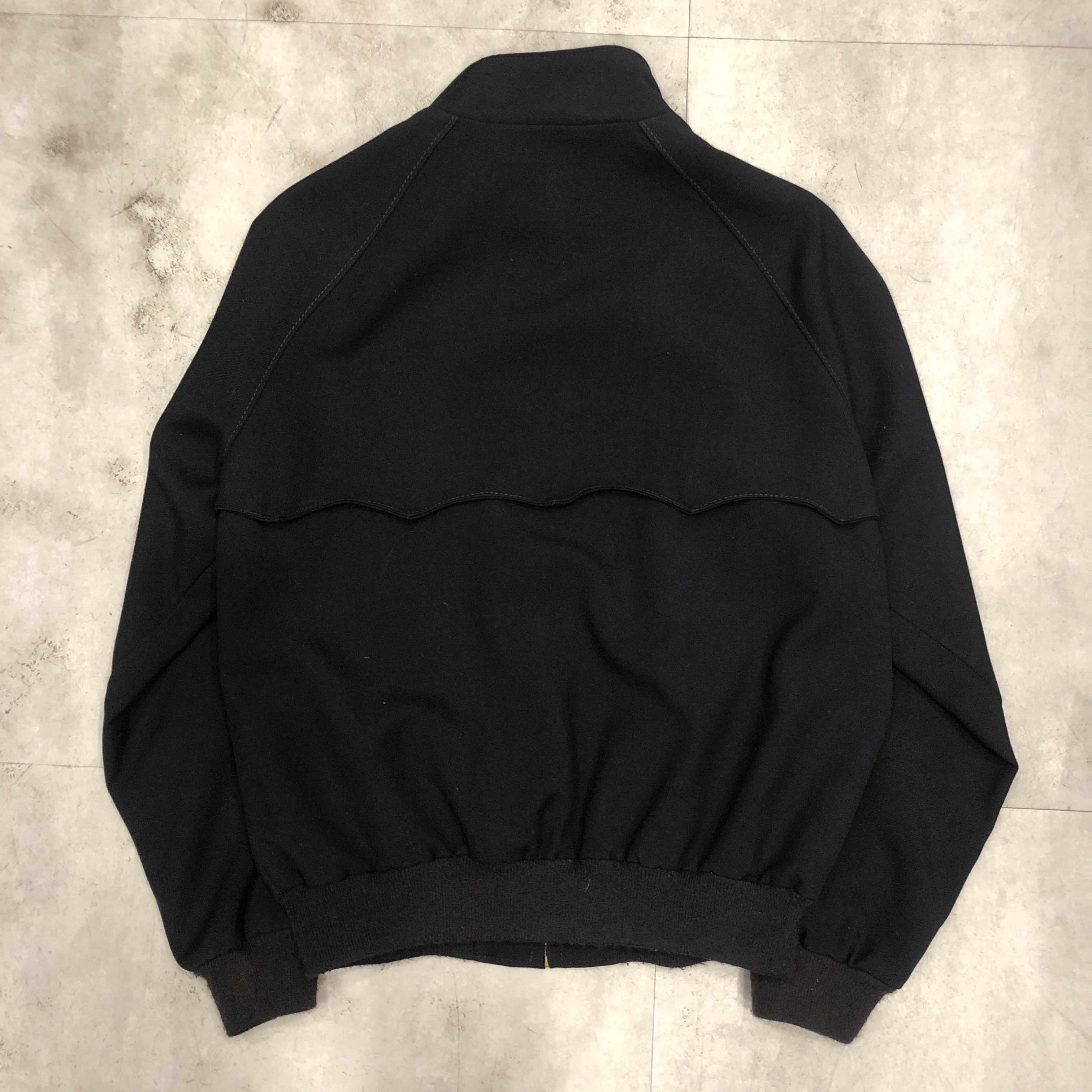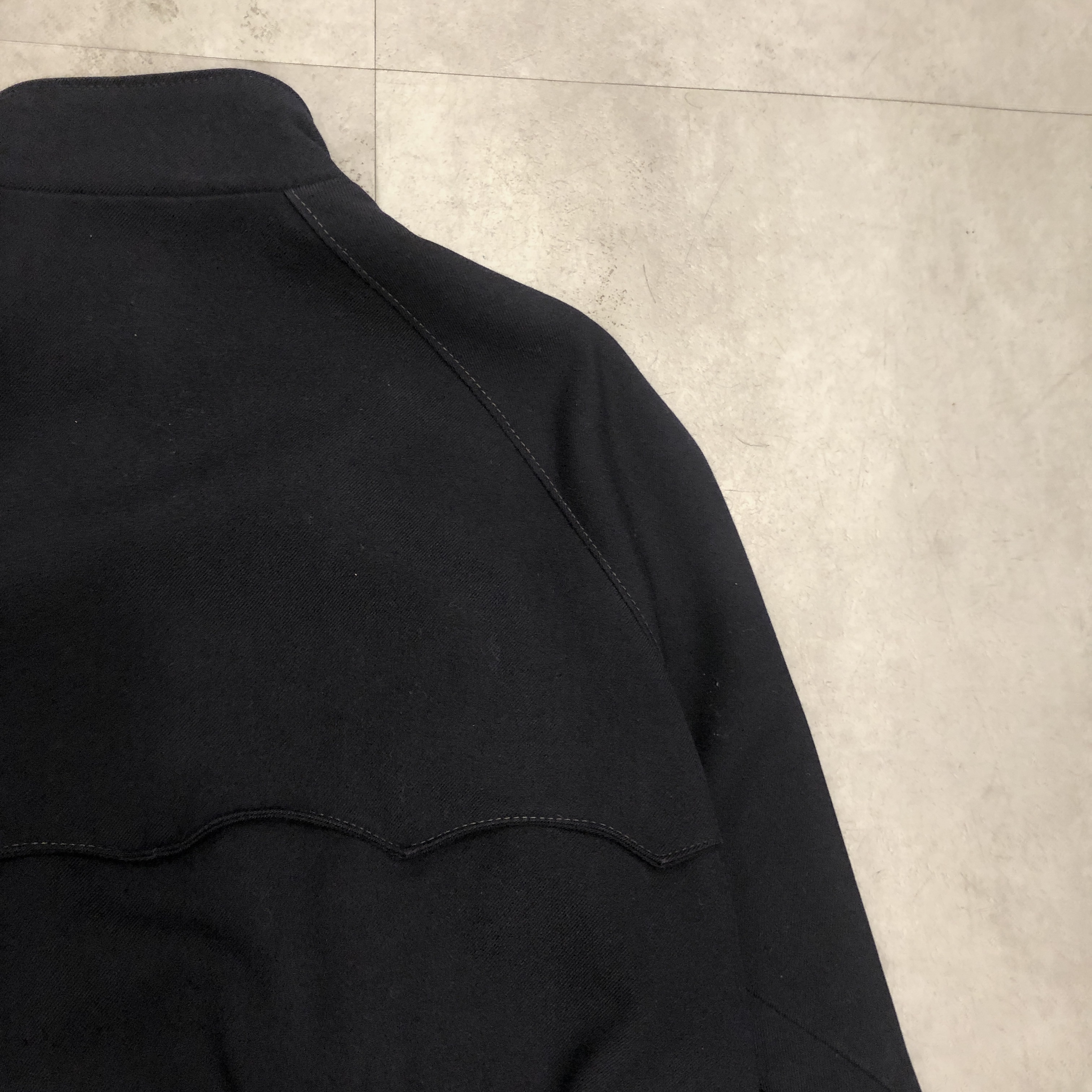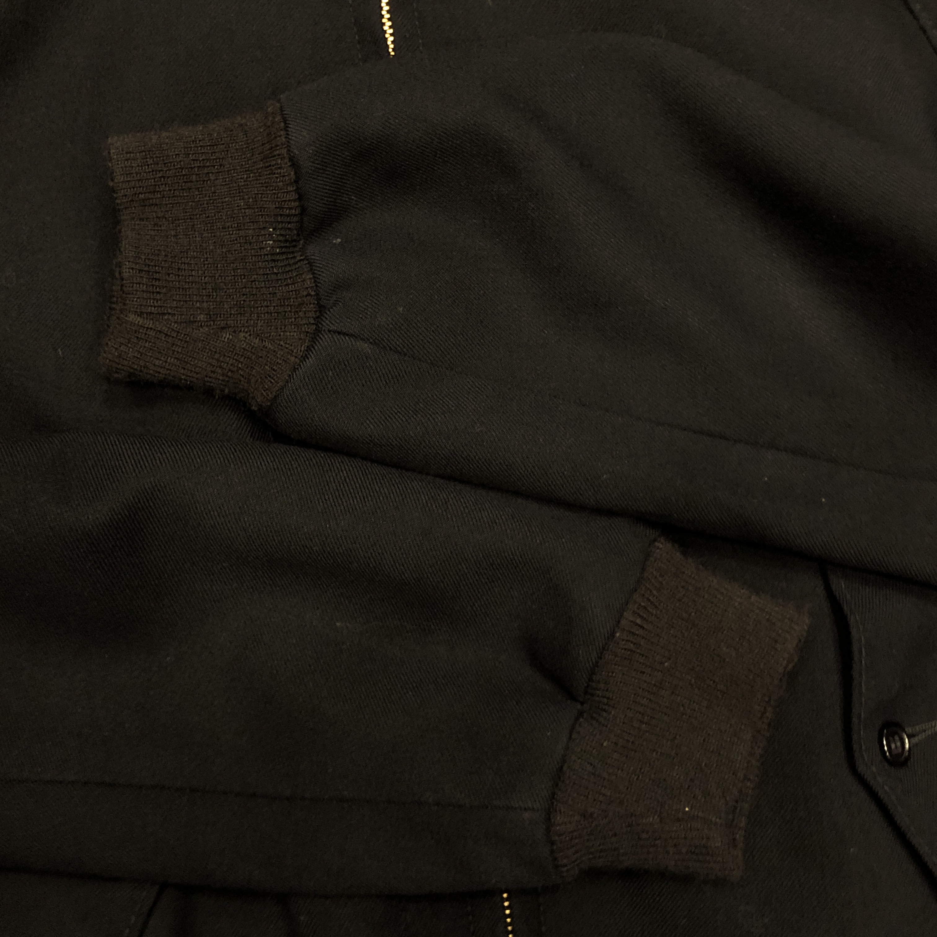 ウールギャバジンならではの深いネイビーの光沢、しっとりとした落ち感、柔らかく体に馴染む質感は、現代の生地では再現が難しく、ヴィンテージ特有の“時間の重み”が宿っています。スタンドカラー+チンストラップ、ラグランスリーブ、裾と袖口のリブ仕様、ゴールドのフロントジッパー、背面ヨークの独特なカッティングなど、ハリントンジャケットのスポーティさと上品さが絶妙に同居する、当時のバナリパらしいデザインも魅力です。