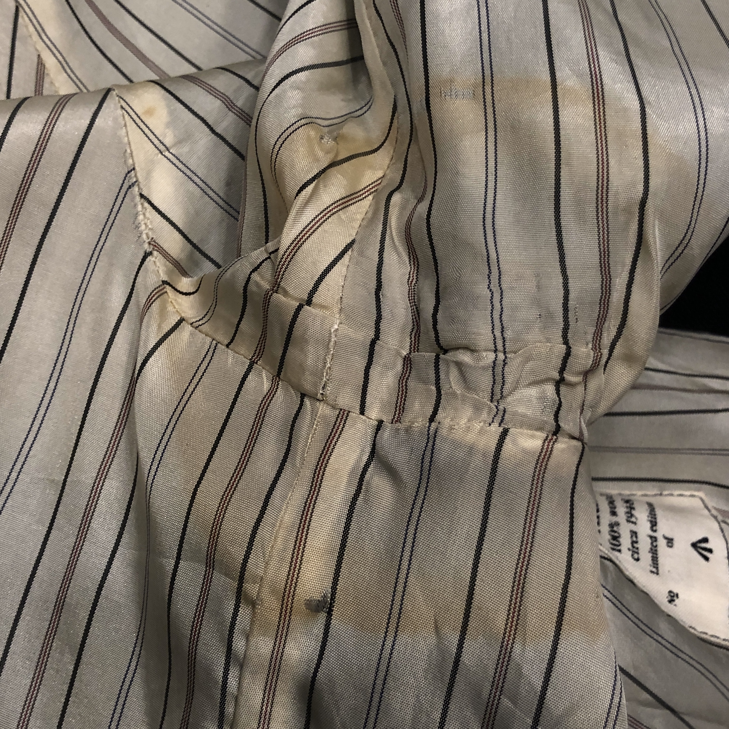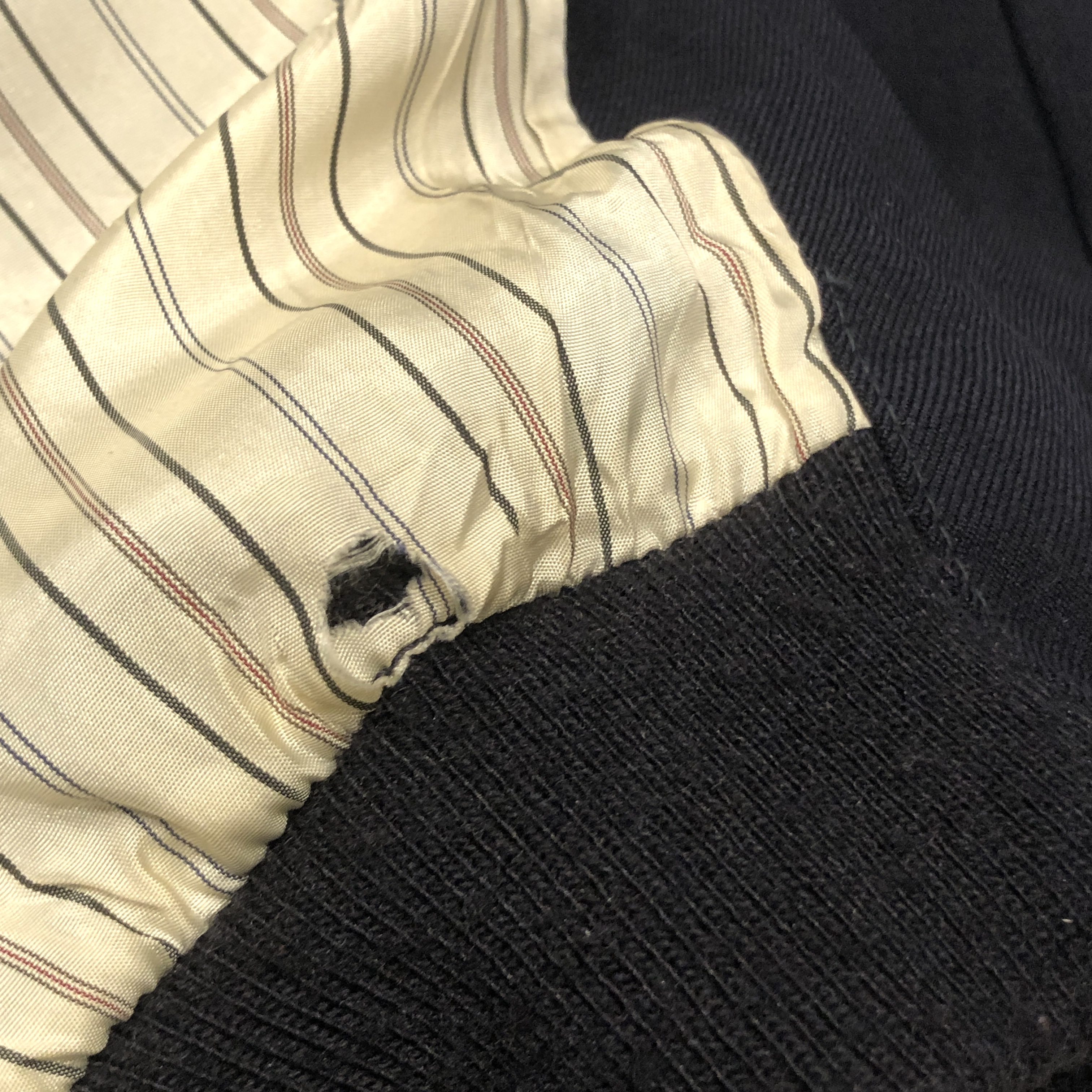 年代相応の着用感、リブの毛羽立ちとダメージ、ステッチのホツレ、内側のダメージと脇下のシミ等が画像の様にございますが、ヴィンテージ慣れされた方でしたら問題なく着用していただける範囲です。