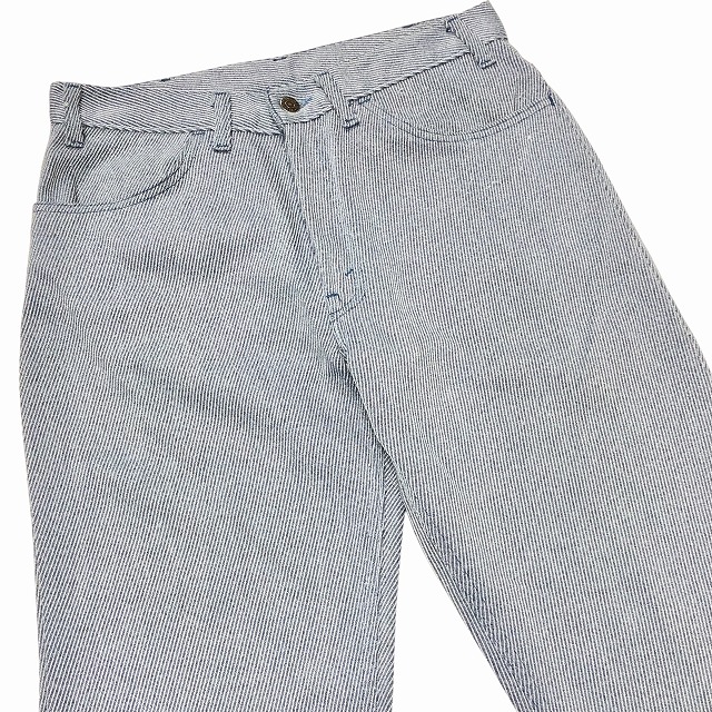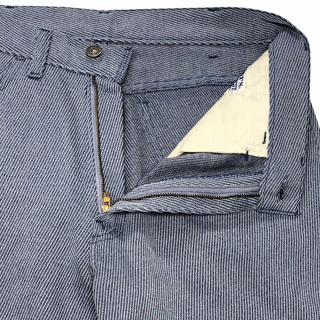 「サックスブルー、レアファブリック、実寸W31 L29.5」