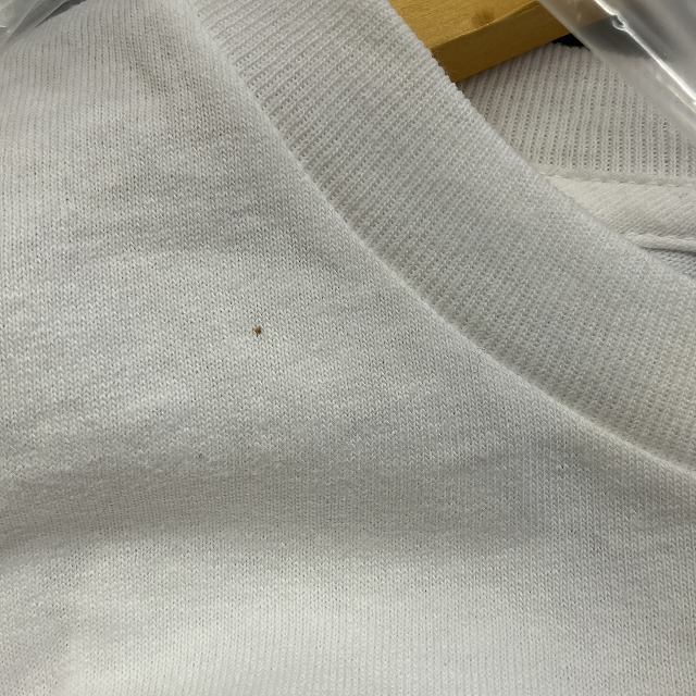 - タグ付きデッドストックの商品ですが、画像の様な襟リブ付近の小さなシミがみられます。