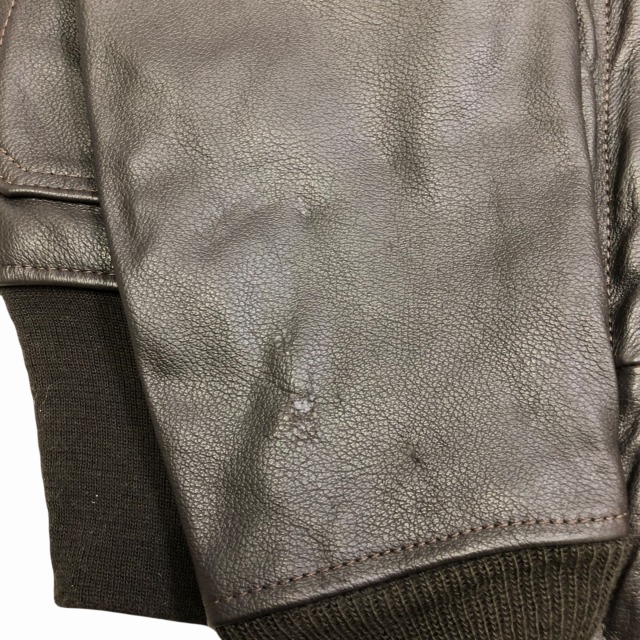 - 画像のように、右袖先にキズ、肘部分に2箇所くぼみがございます。