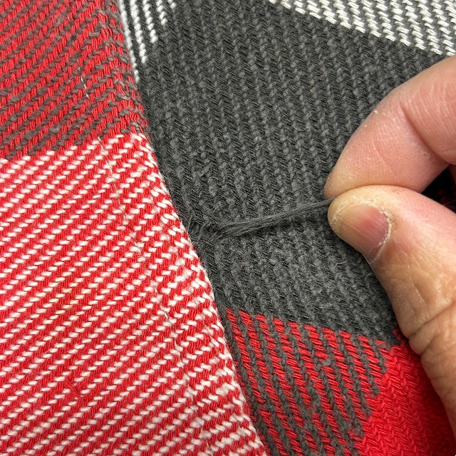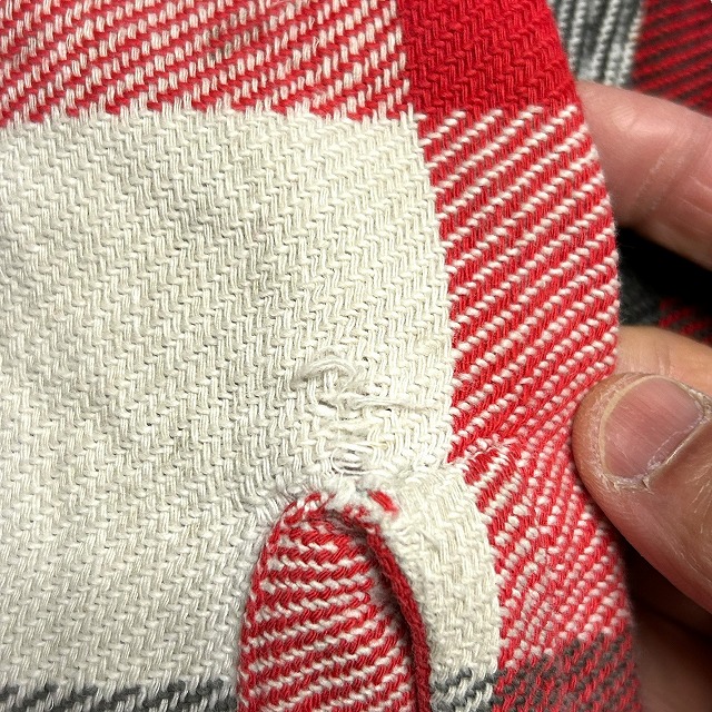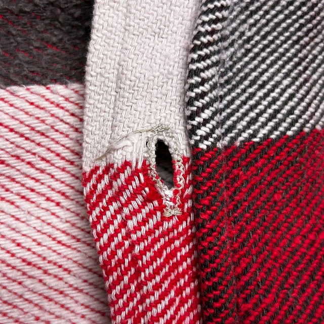 ボタンホールにホツレがみられます。