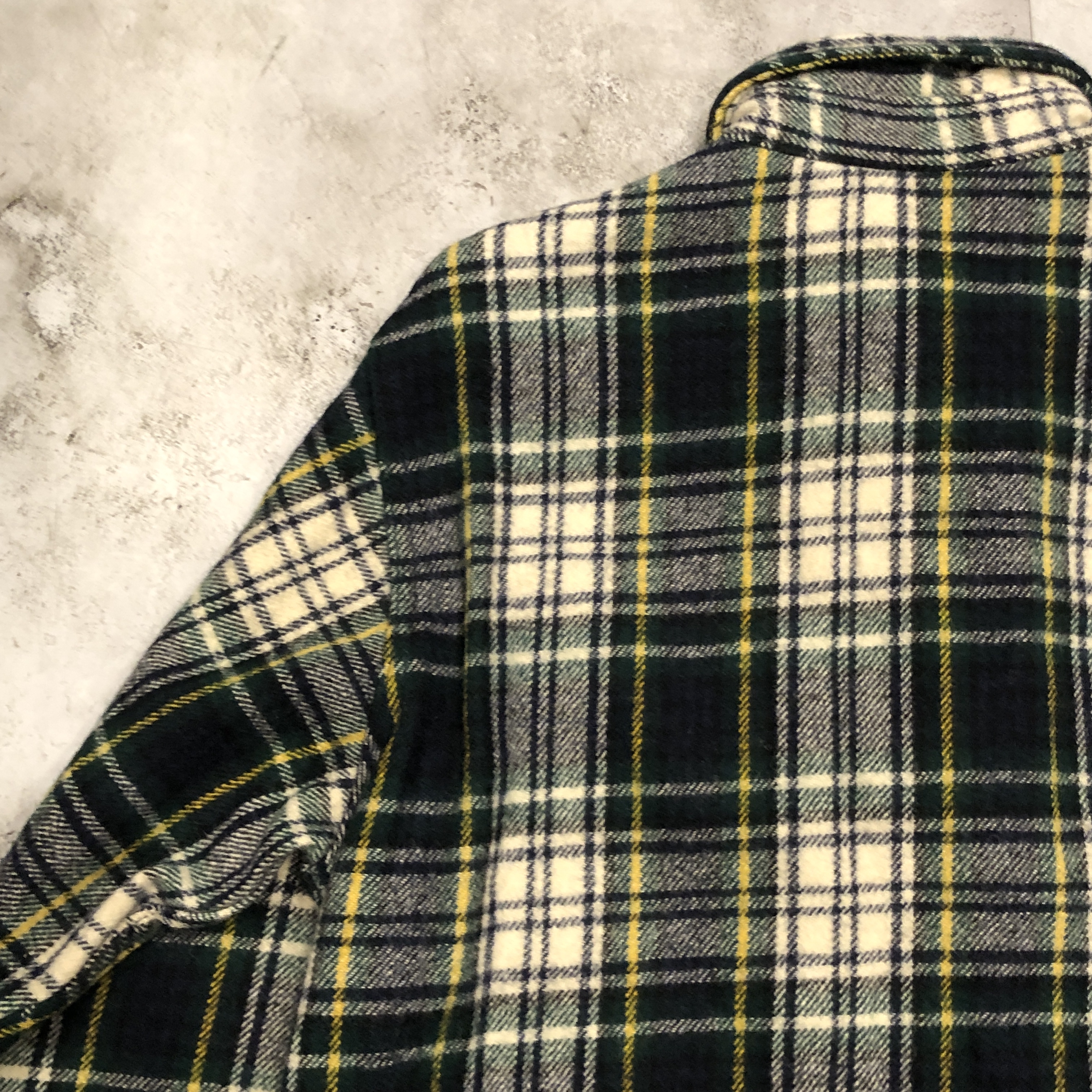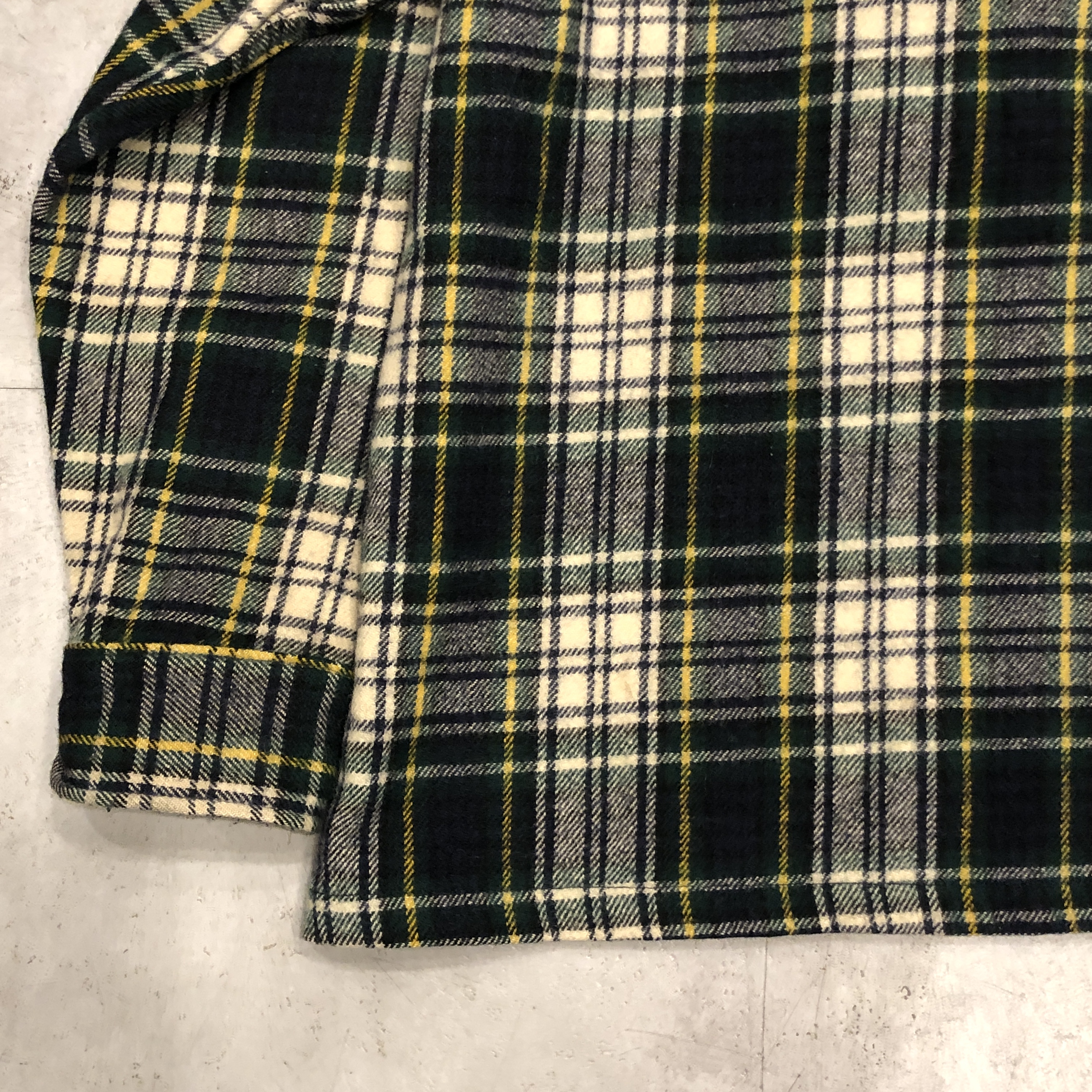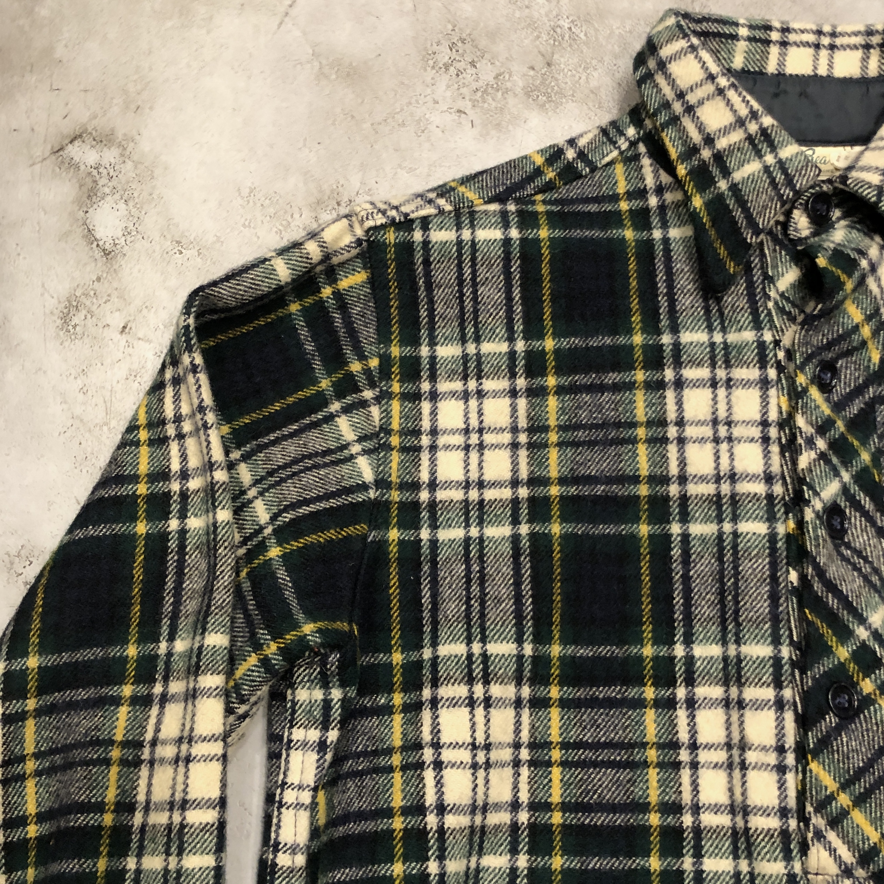 - アメリカの老舗アウトドアブランド、L.L.Beanが最も質実剛健だった1970年代に製造されたウール・プルオーバーシャツです。ホワイトカラーのベースに深いフォレストグリーンとイエローを効かせたチェック柄は、この年代のBeanならではの雰囲気を持ち、他ブランドのネルシャツには見られない独自の存在感があります。