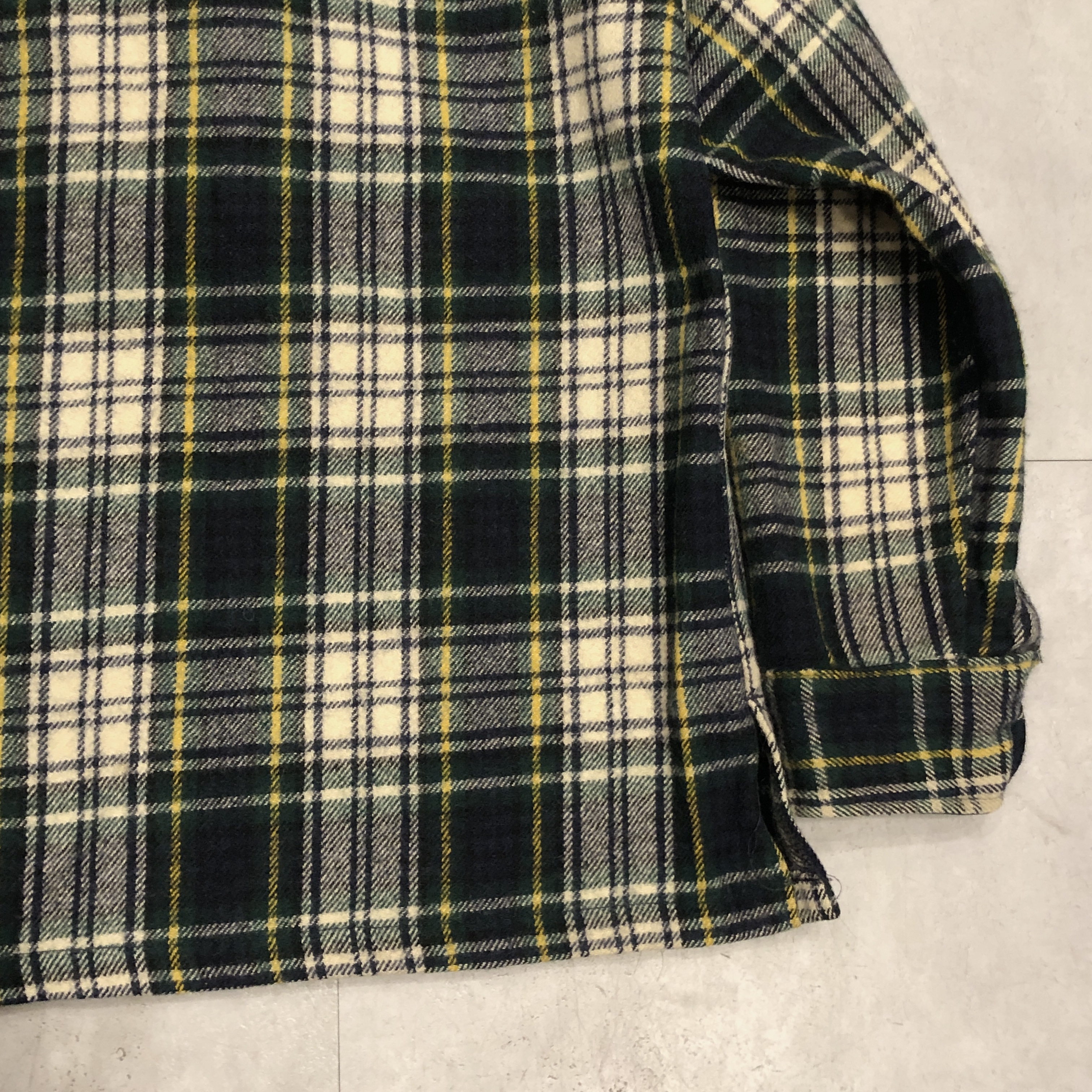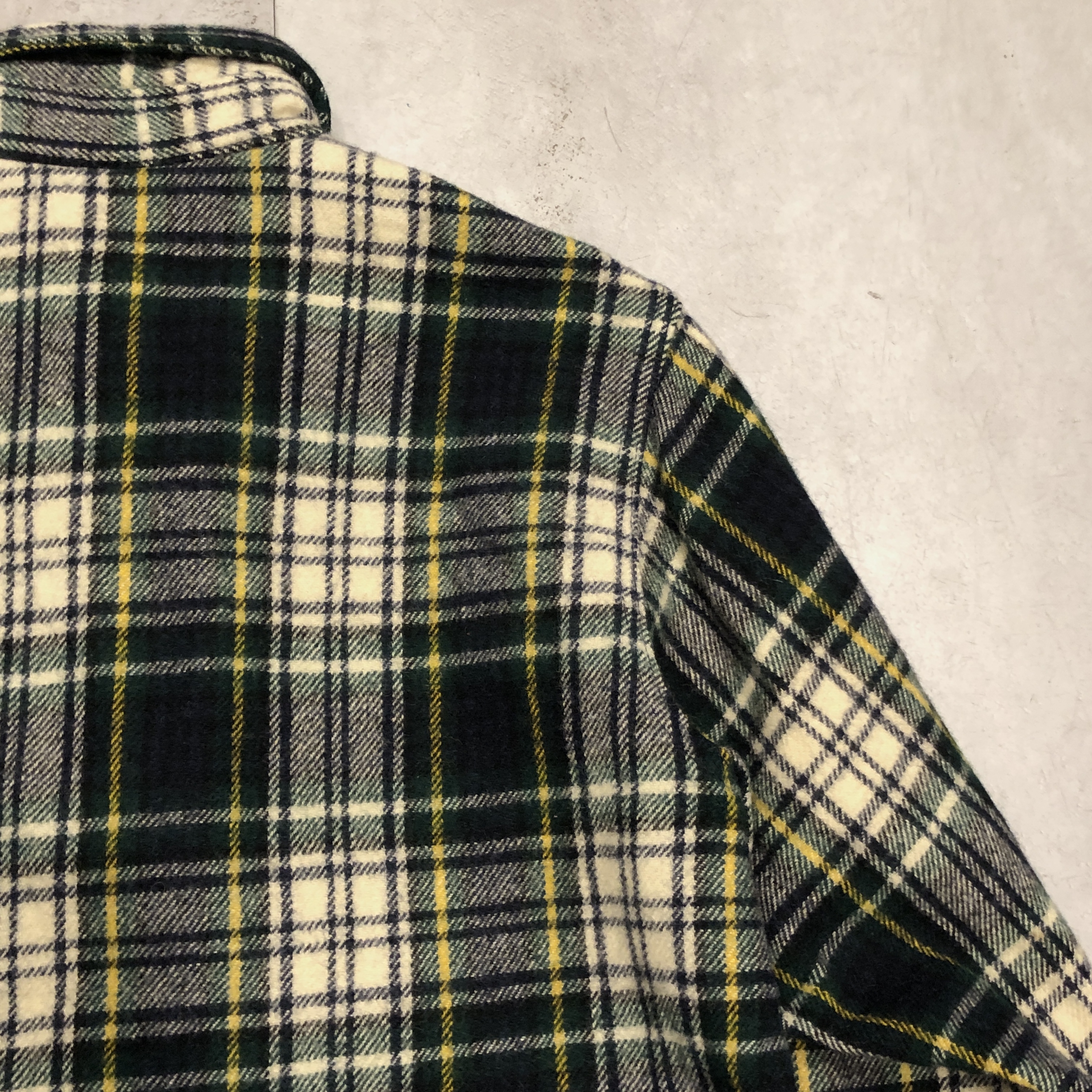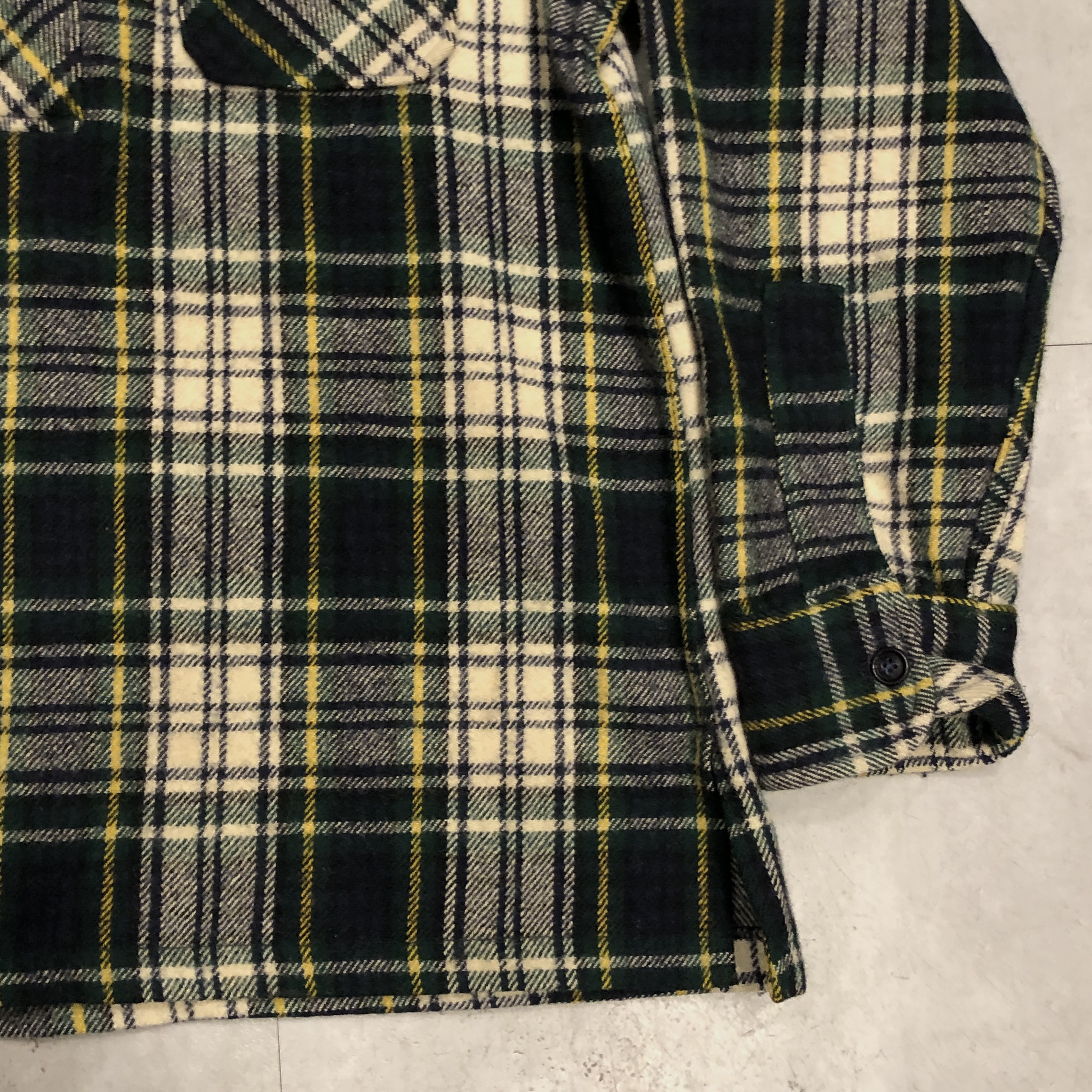 - アメリカの老舗アウトドアブランド、L.L.Beanが最も質実剛健だった1970年代に製造されたウール・プルオーバーシャツです。ホワイトカラーのベースに深いフォレストグリーンとイエローを効かせたチェック柄は、この年代のBeanならではの雰囲気を持ち、他ブランドのネルシャツには見られない独自の存在感があります。