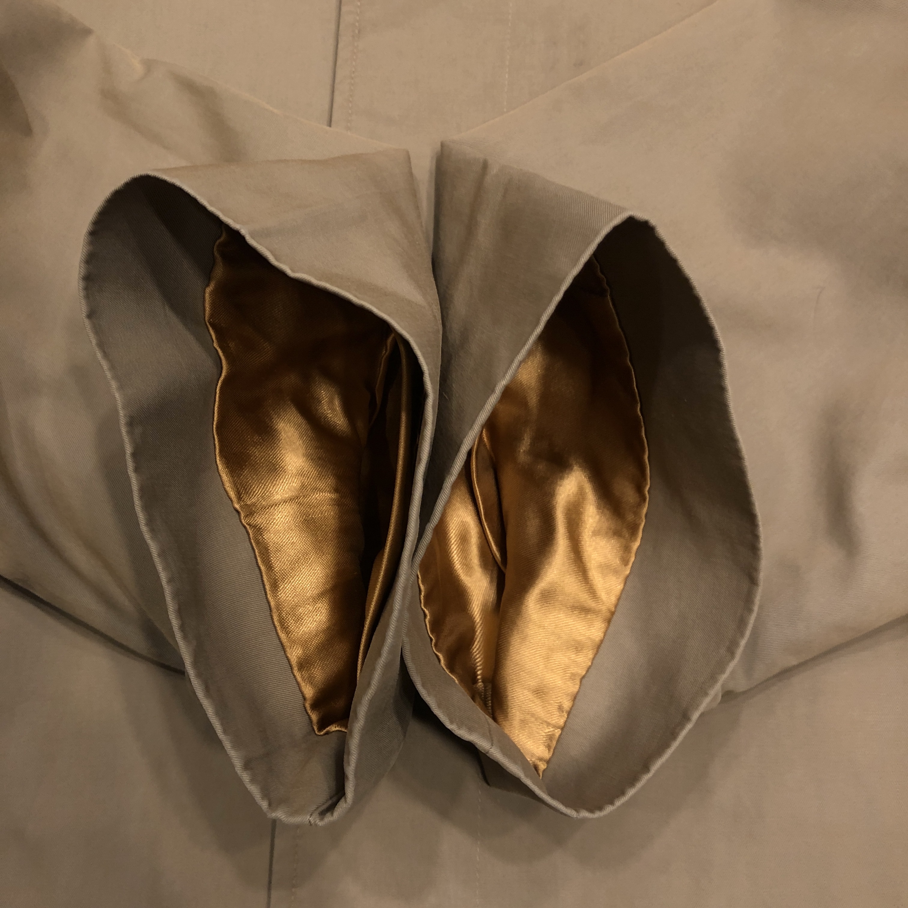 しなやかで高密度に織られたコットン・ギャバジンが織りなす独特のドレープは、立体的なパターンカッティングと相まって、まるで空気を含むかのような自然な膨らみを描きます。