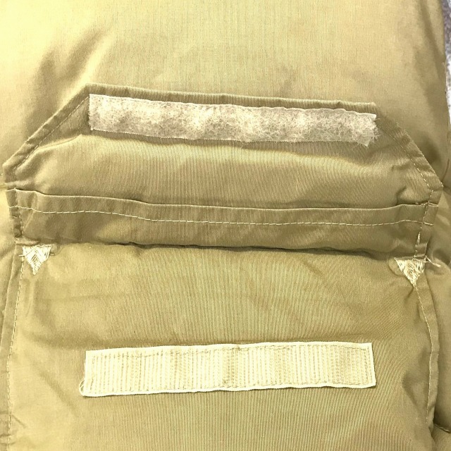 極寒地でも凍らないようにフロントボタンは金属ではなく、丸いベルクロを使用し、