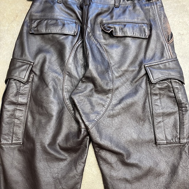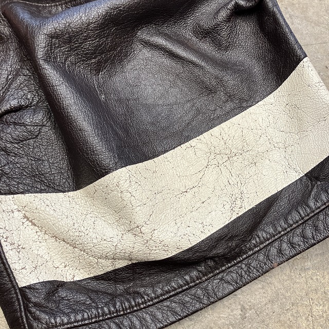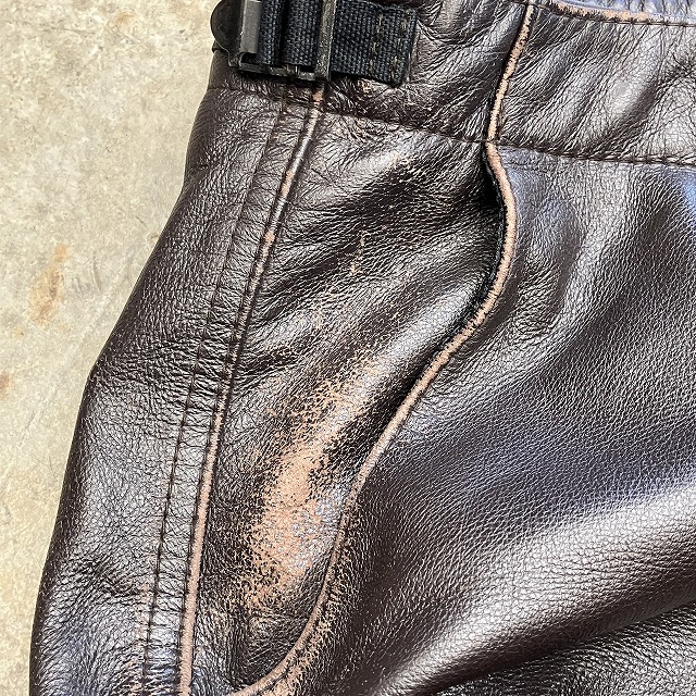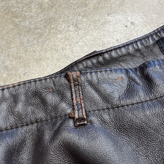 - 所々に画像の様な、レザー特有のスレや小傷がみられます。また、ボタン結び目の緩みがみられます。その他、年代相応の着用感ございますが、ユーズド慣れされた方でしたらまだまだ問題なく着用していただけます。