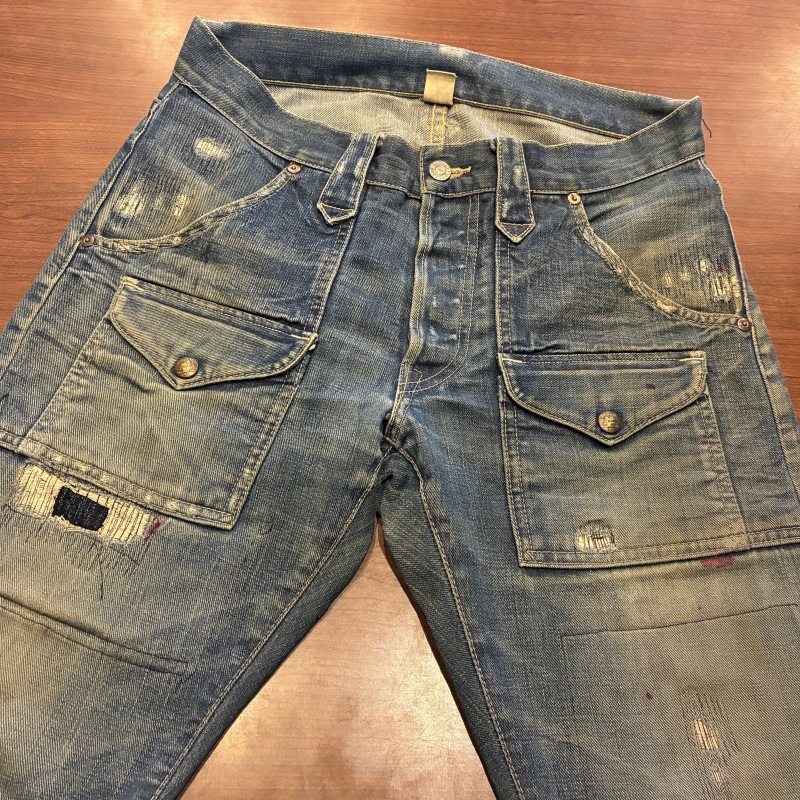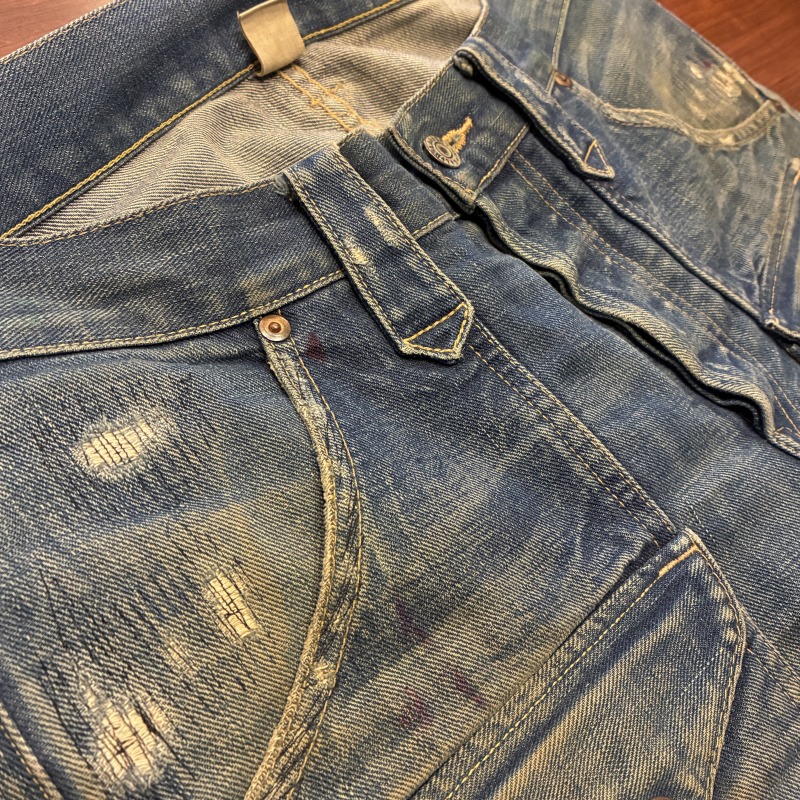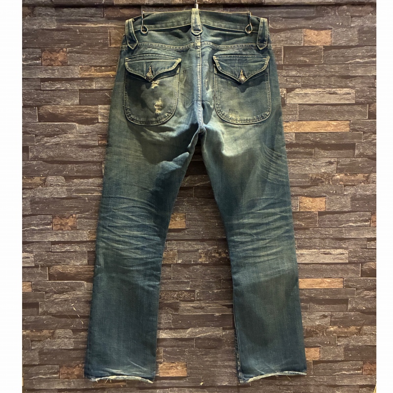 バックポケットのコンチョボタンの結び目が緩んでいたり等、多少の着用感がございますが加工箇所以外に目立つダメージ等は無く、まだまだ問題無く着用していただける状態です。