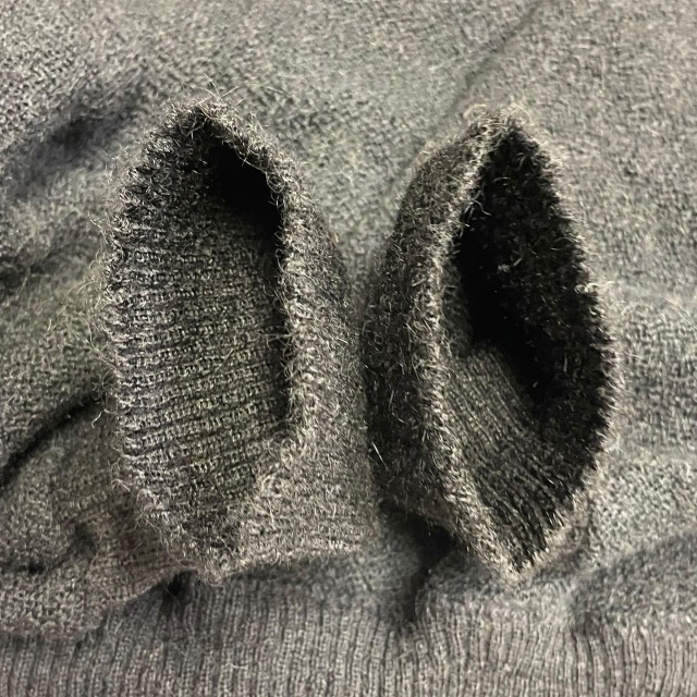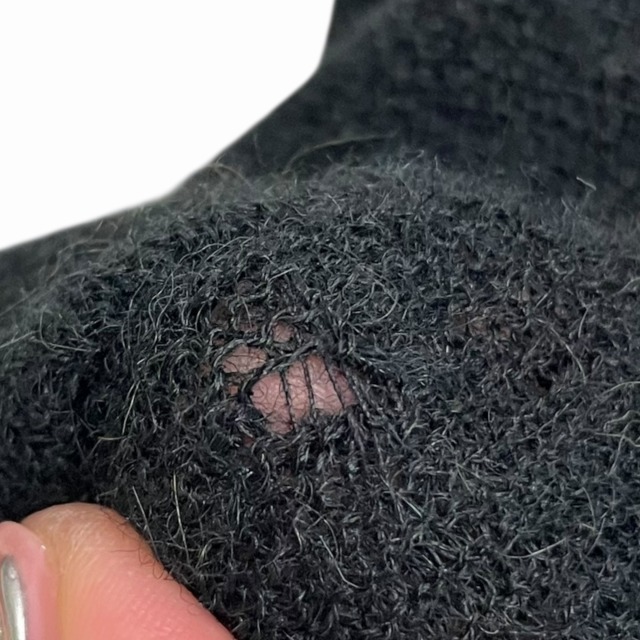 - 画像のように、前右アームホール付近や右袖等数ヶ所に網目広がりがございます。