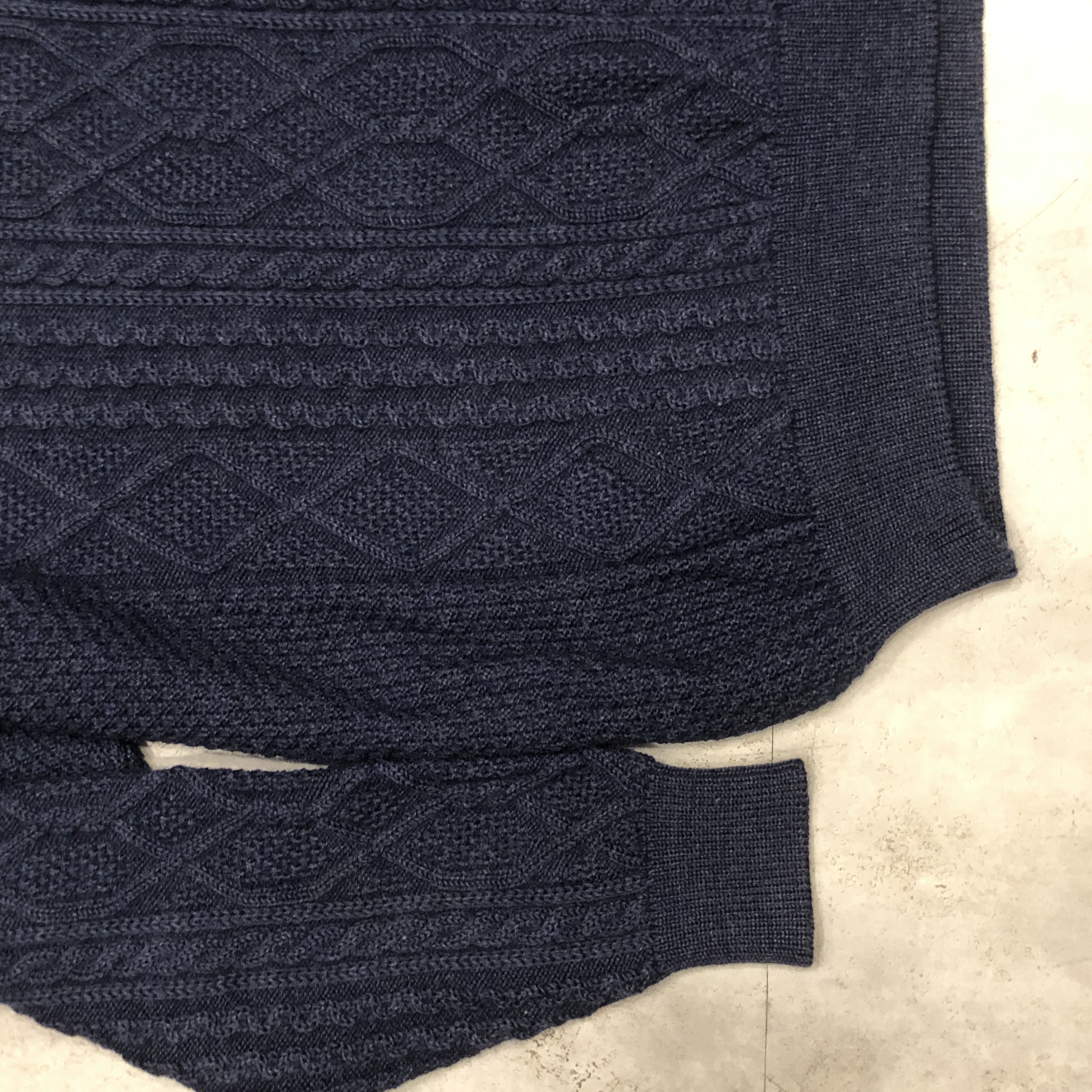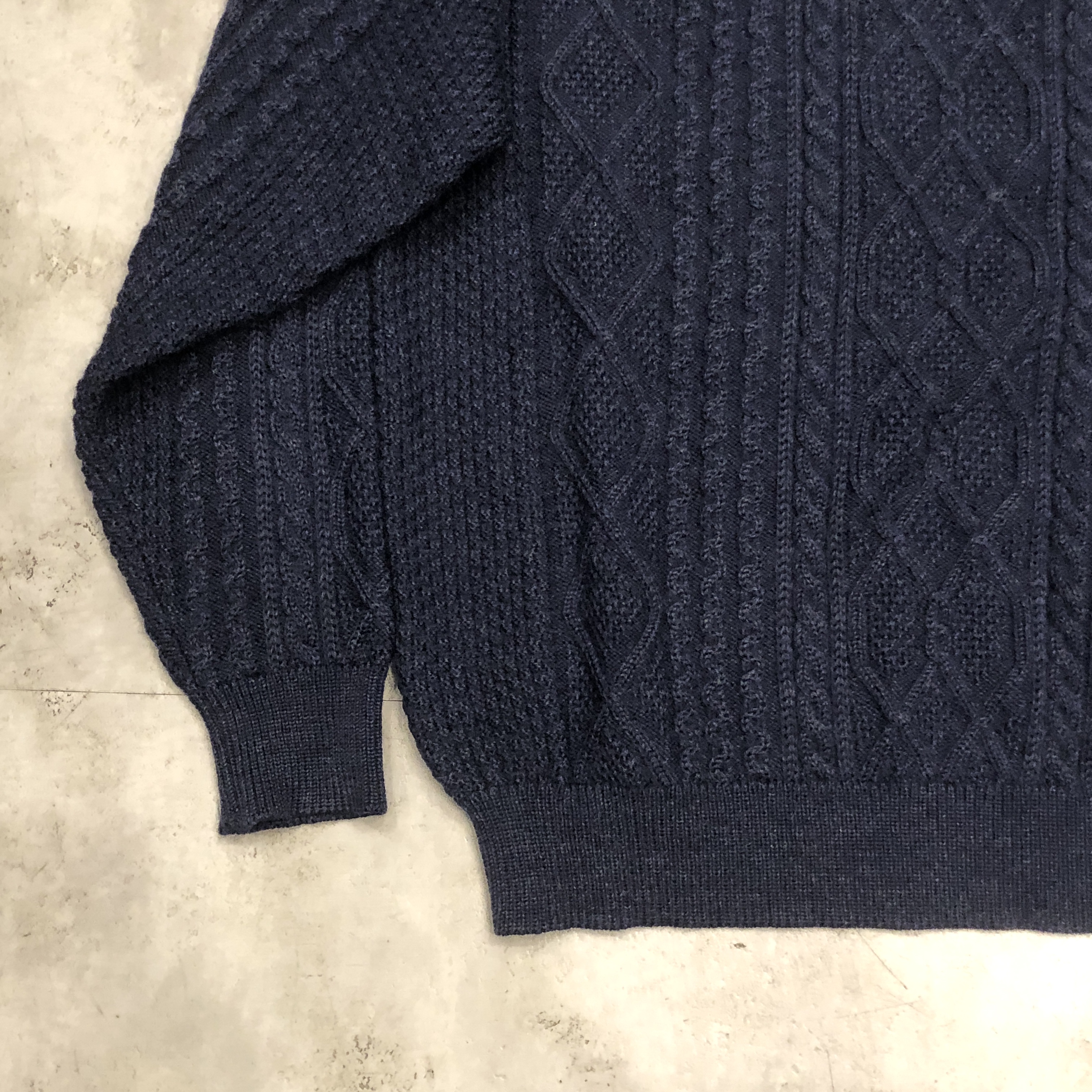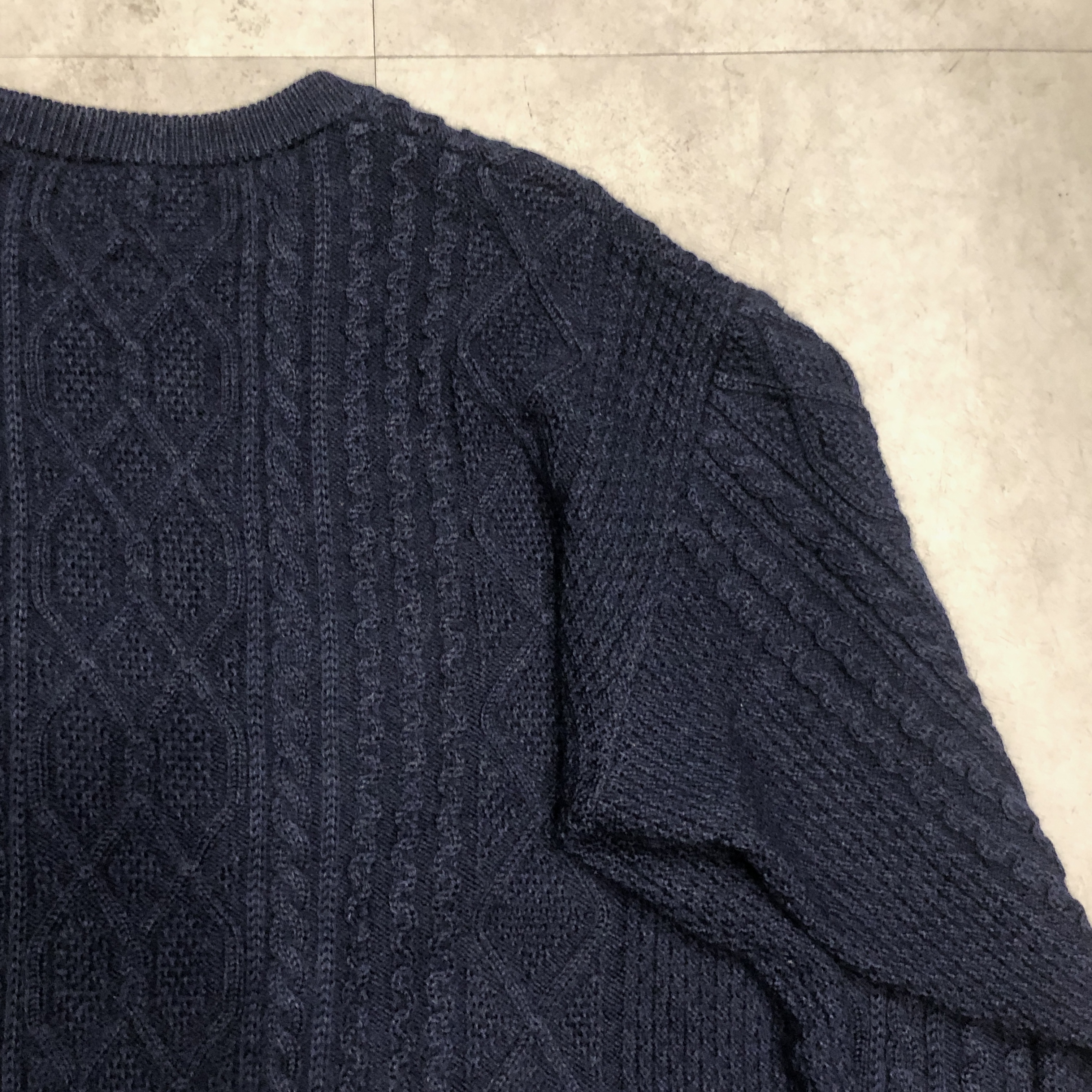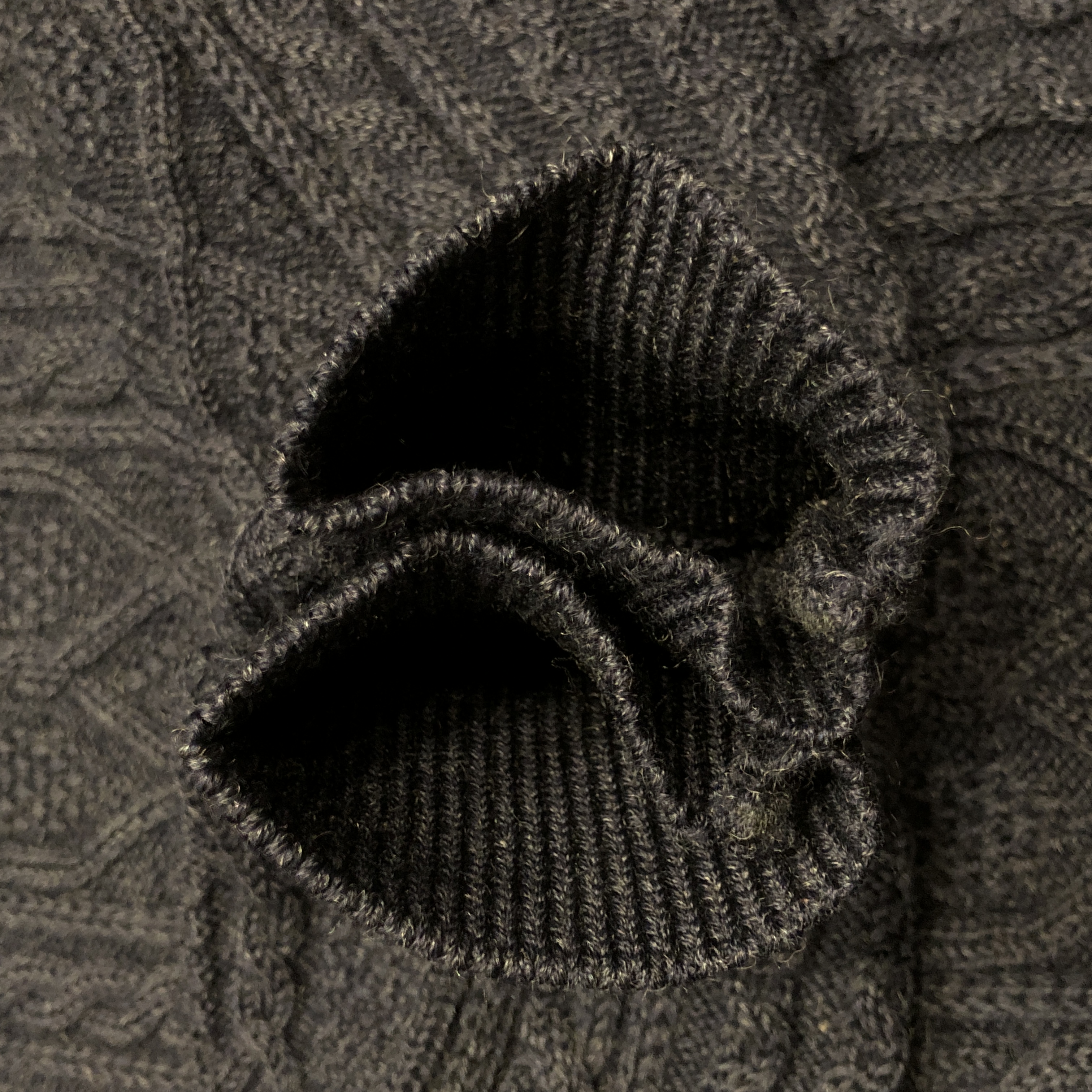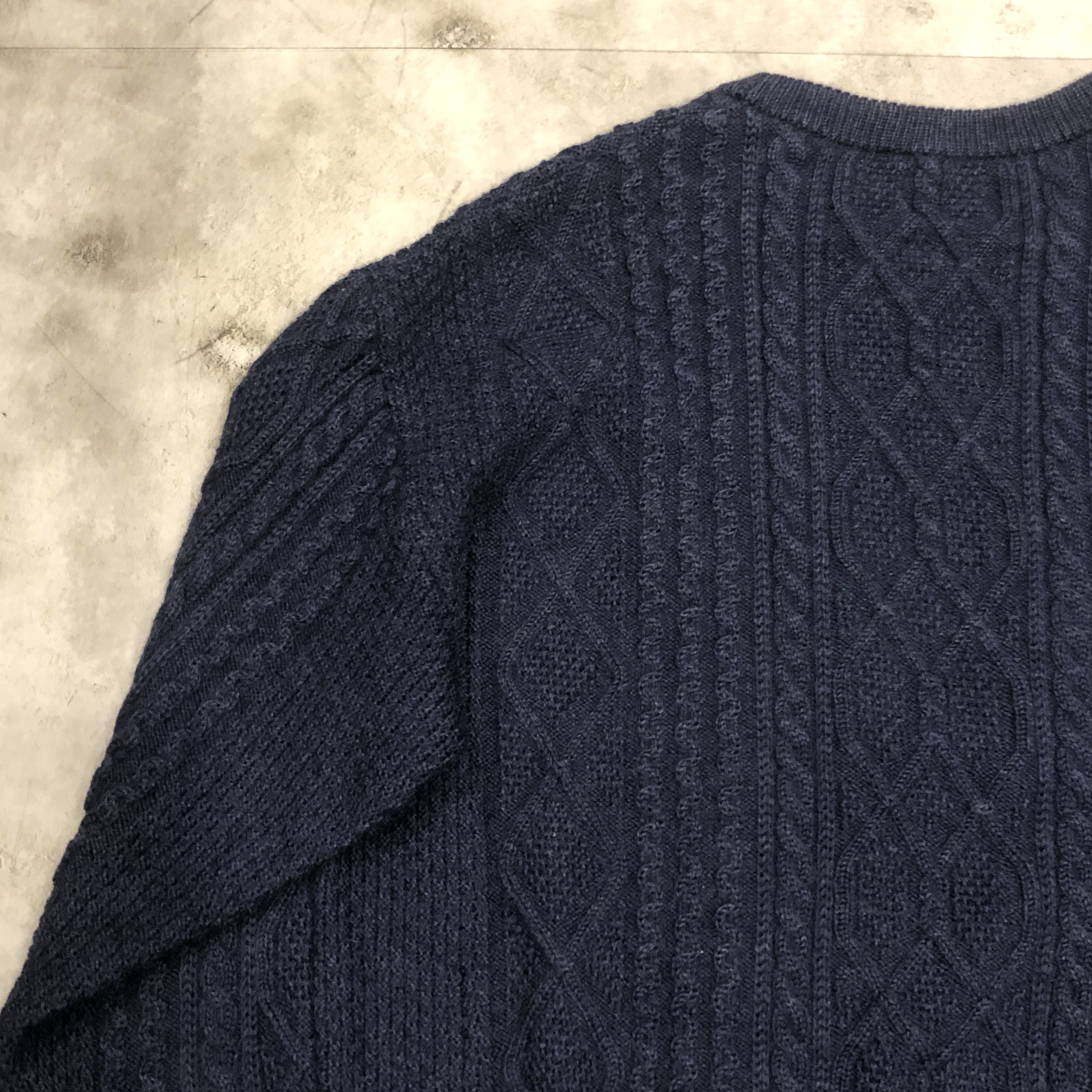 ボーダーのイメージが強いブランドですが、1980年代後半から90年代初期にかけて、実はこうした重厚なアラン編みのウールニットも生産されていました。今回の一点はまさにその希少な時代のプロダクト。