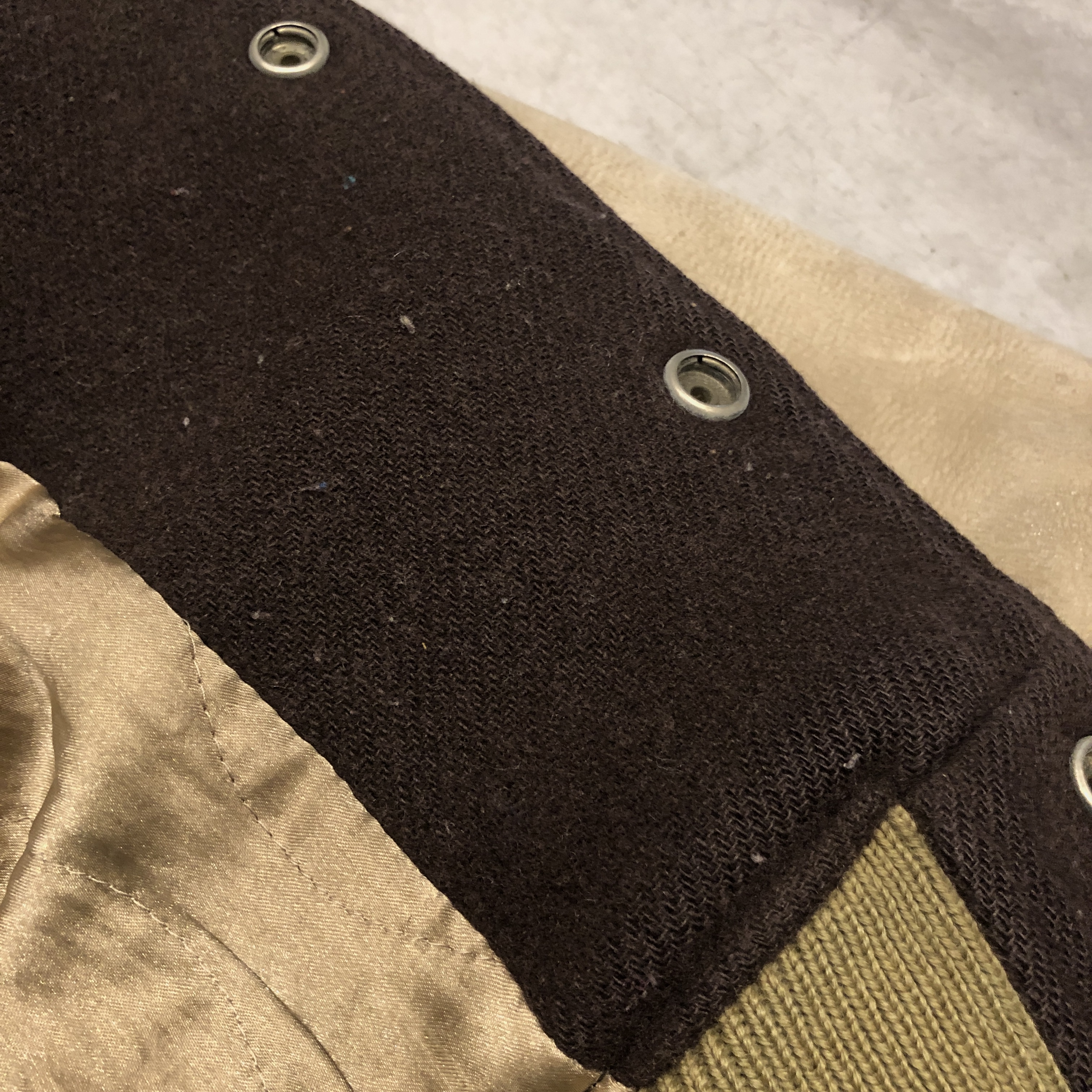 - 年代相応の着用感、ボタンのくすみ、レザー部分のスレや汚れ、毛玉等がそれぞれ画像の様にございますが、古着慣れされている方でしたら問題なくお使いいただける範囲です。
