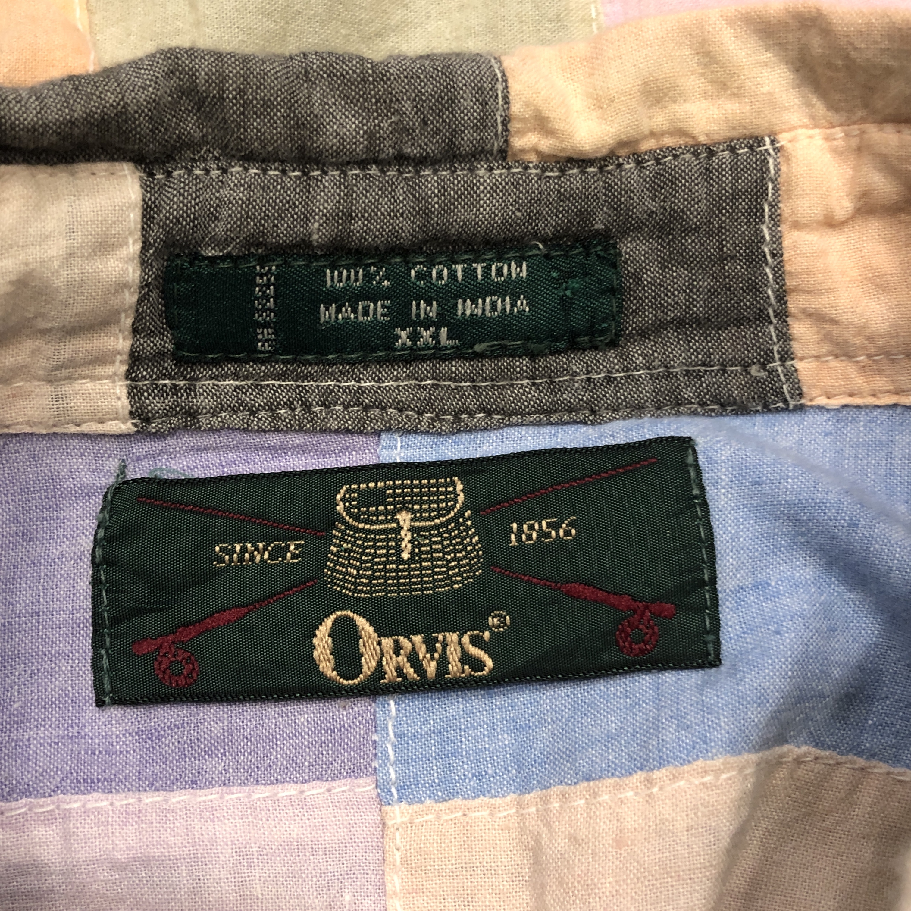 こちらは、アメリカ老舗アウトドアブランド ORVIS による、1990年代頃のパッチワークシャツです。