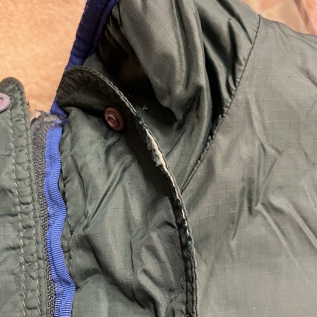 - ナイロン面、前立て部分に画像の様な多少のほつれがみられます。また、袖や、ボディ所々に薄汚れがみられます。その他、着用感はございますが、まだまだ問題なく着用していただけます。