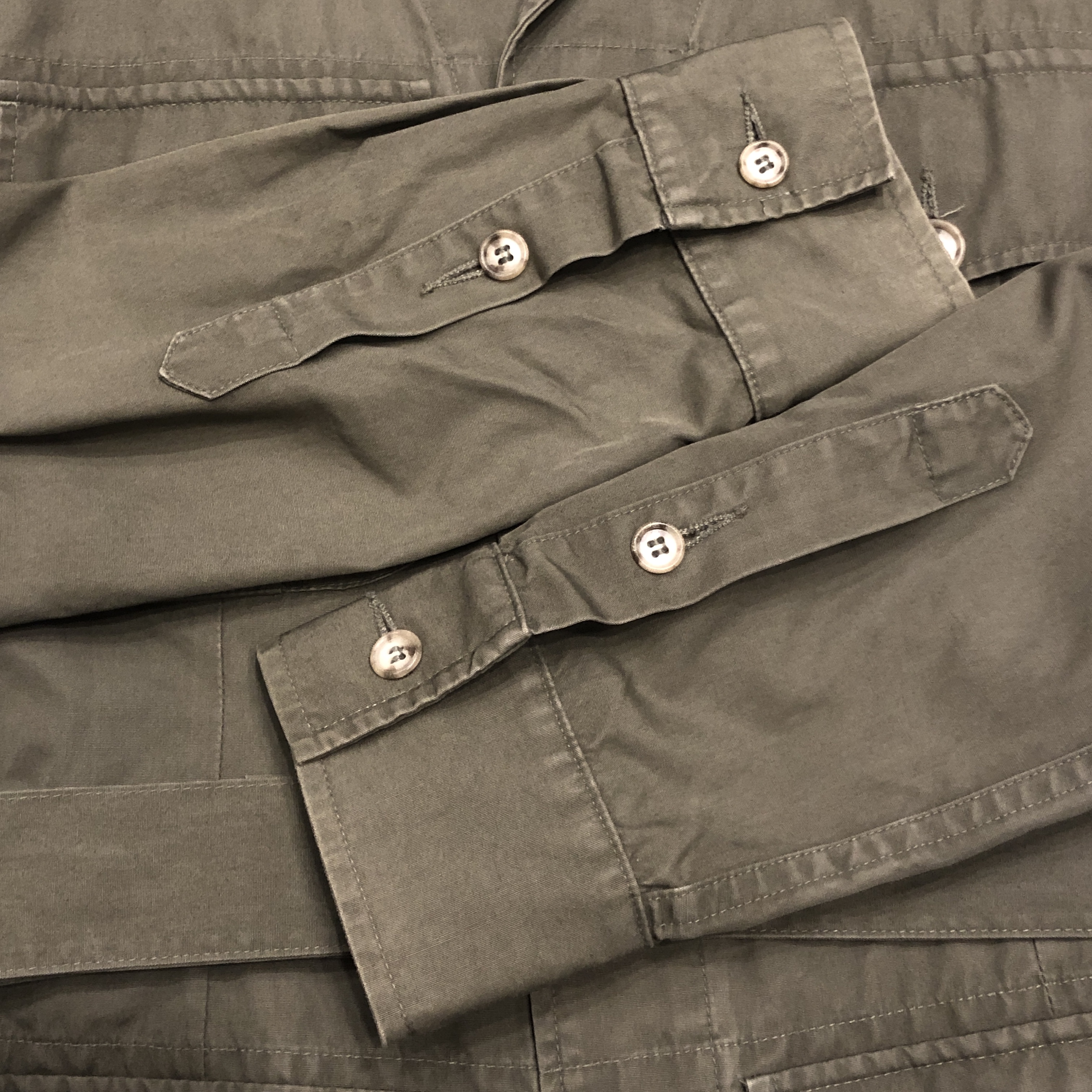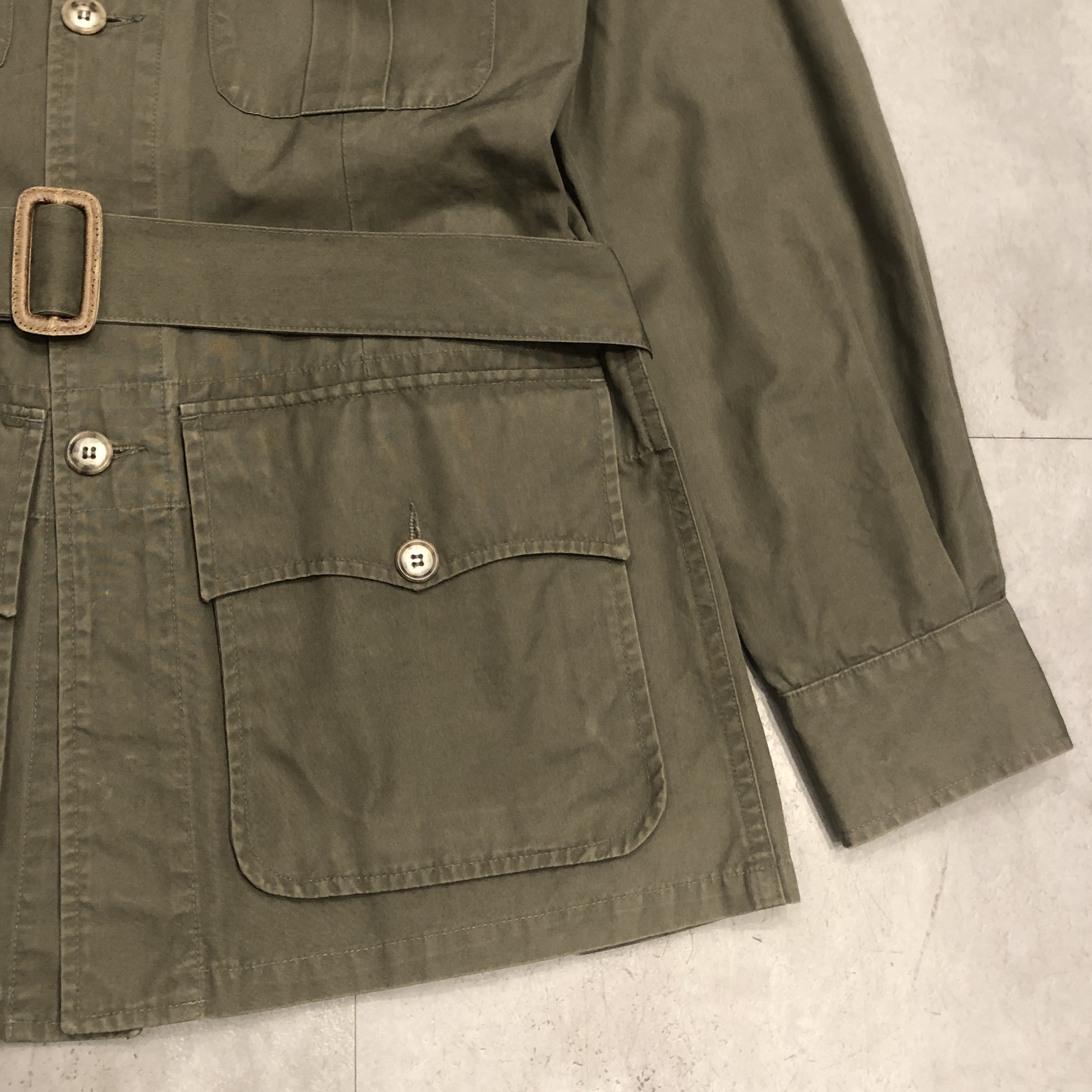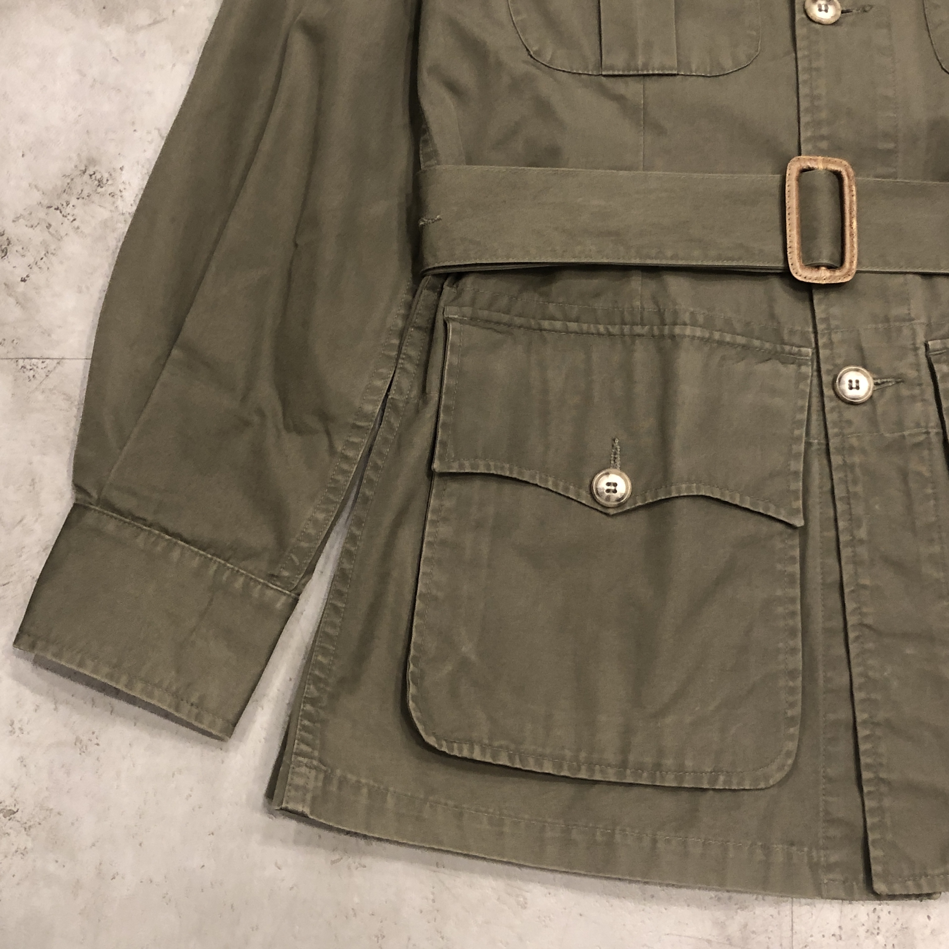 フロントと腰ポケットにはフラップ付きの大型ポケットを備え、ベルト仕様やエポレット、しっかりとしたカフスディテールなど、冒険服としての機能美が光ります。特にこの“Gable”モデルは、伝説の俳優クラーク・ゲーブルが愛用したとされるサファリジャケットをモチーフにしており、実用とエレガンスが絶妙に同居。現代のタウンユースでも映える洗練されたシルエットと上品な色味“Pewter”は、アメカジファンはもちろん、アウトドアやトラッドスタイルにも格別の存在感を放ちます。