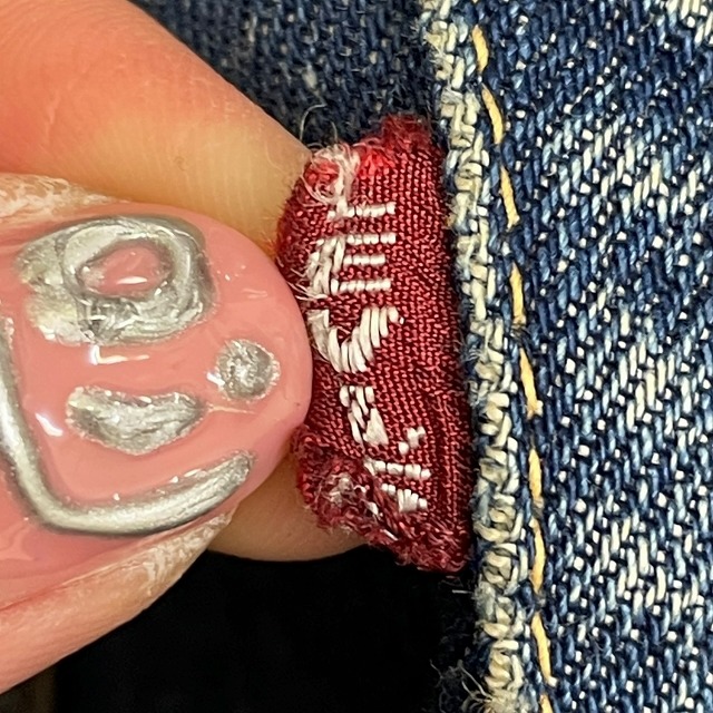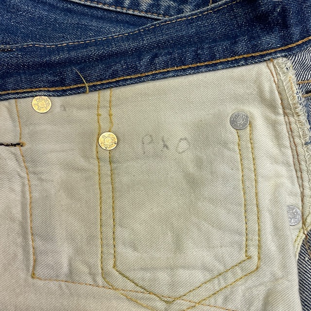 トップボタン裏刻印『6』、均等V、Vステッチ、ウェストシングル、