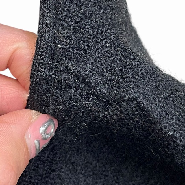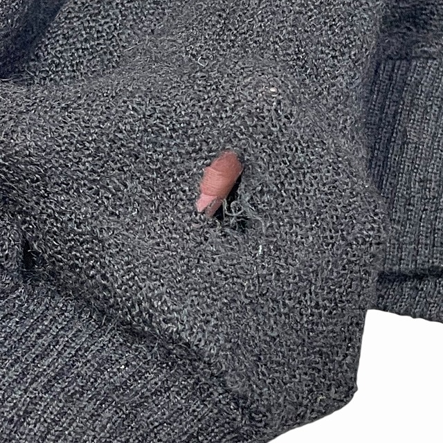 - 画像のように、袖、裾リブ切り替え部分等数か所に穴等のダメージがございます。