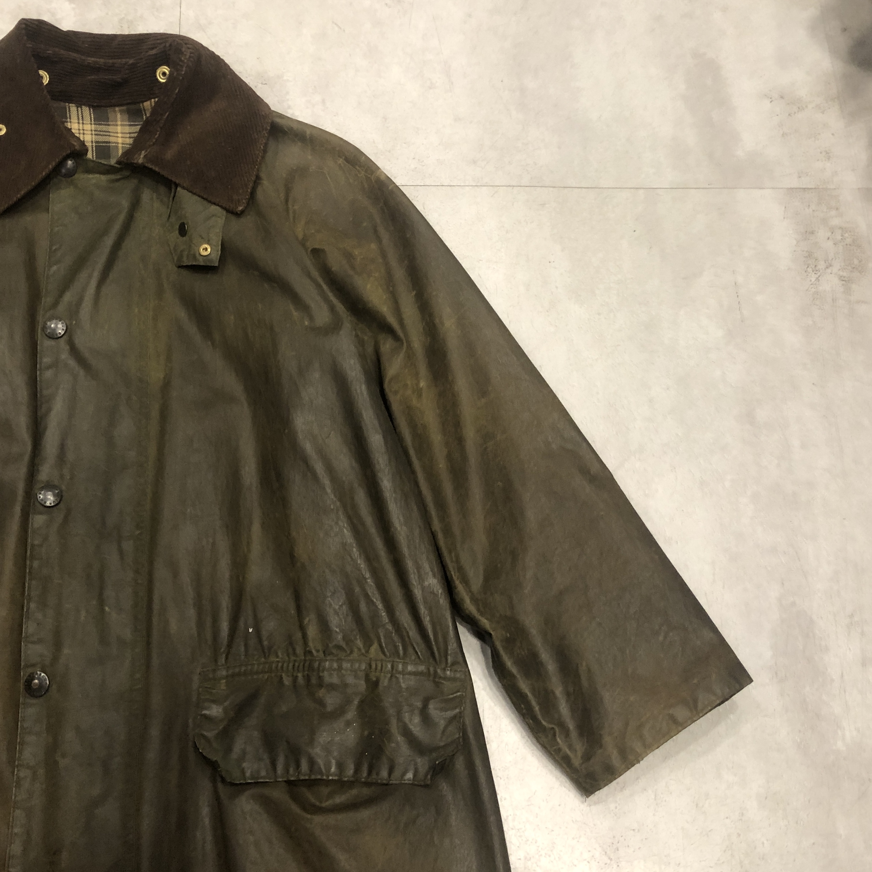 この「長さ」と「分量感」は、他のBarbourモデルではなかなか味わえない、独特の存在感があります。