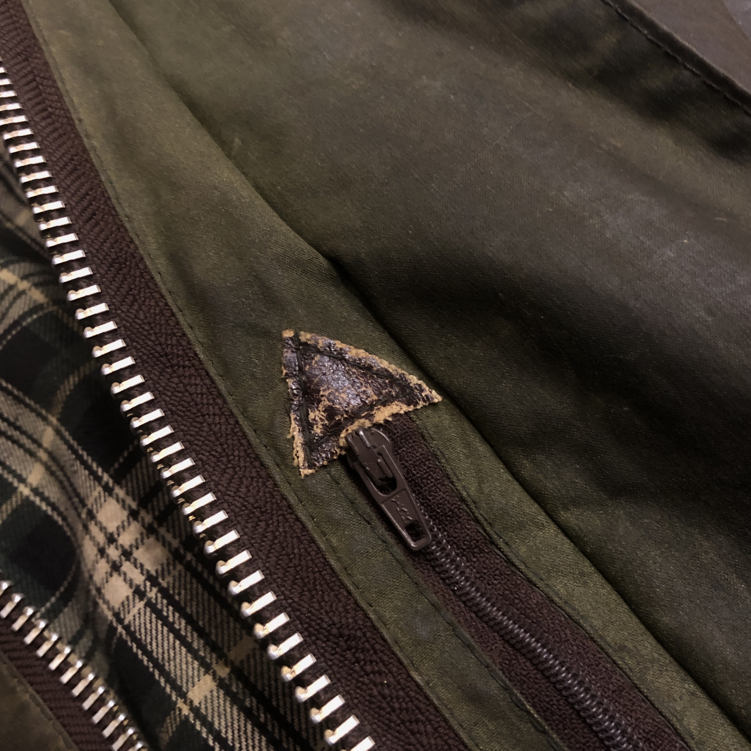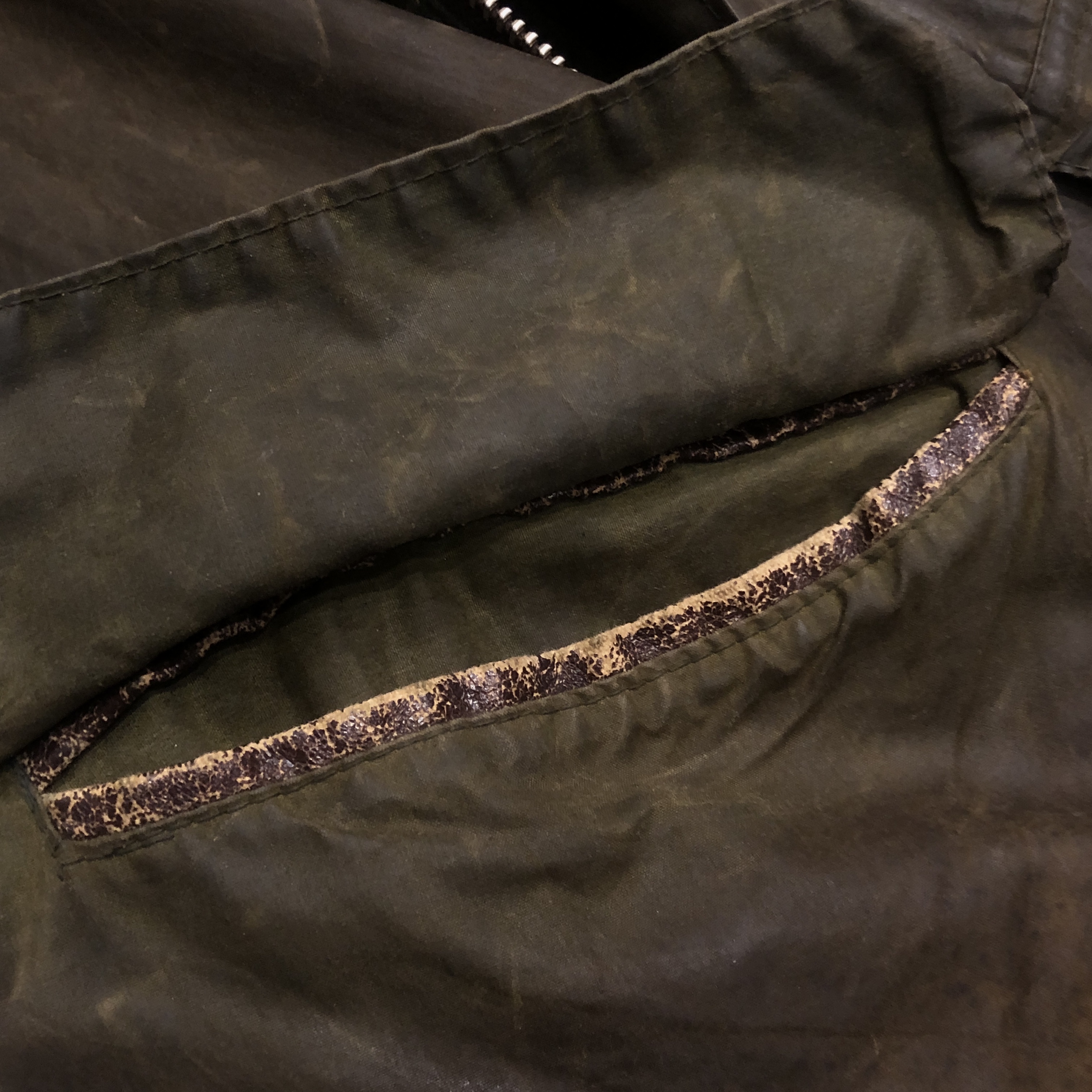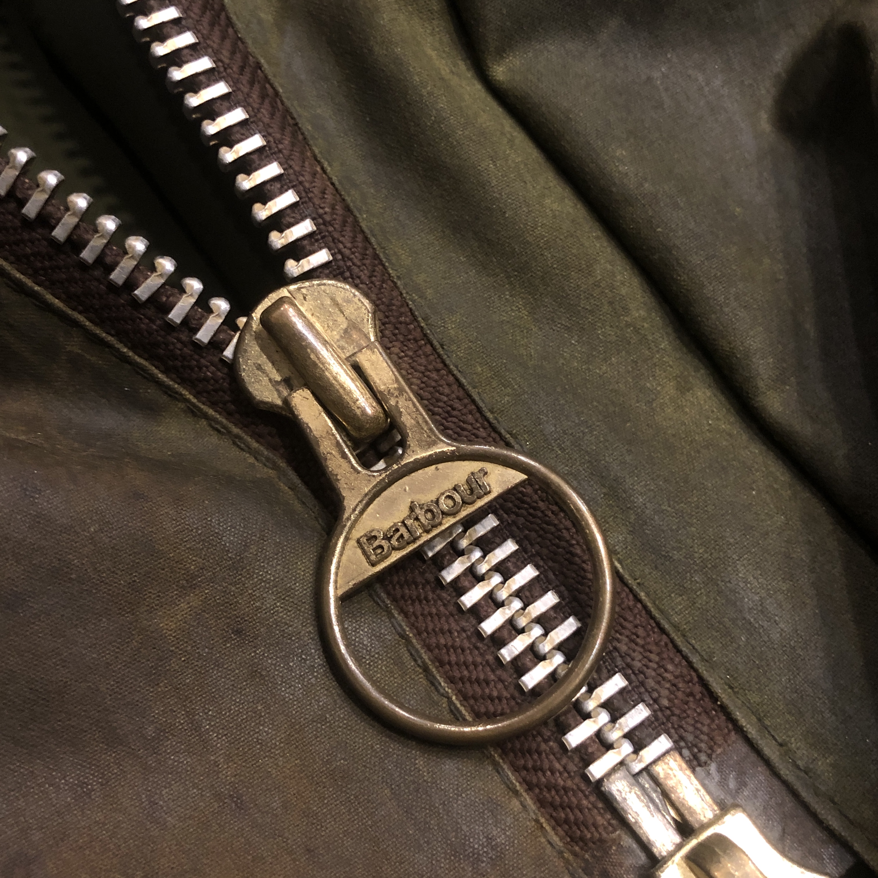 オリーブカラーは均一ではなく、時間と動きに応じて生まれた濃淡が重なり合い、まさに“育ったBarbour”という佇まいです。