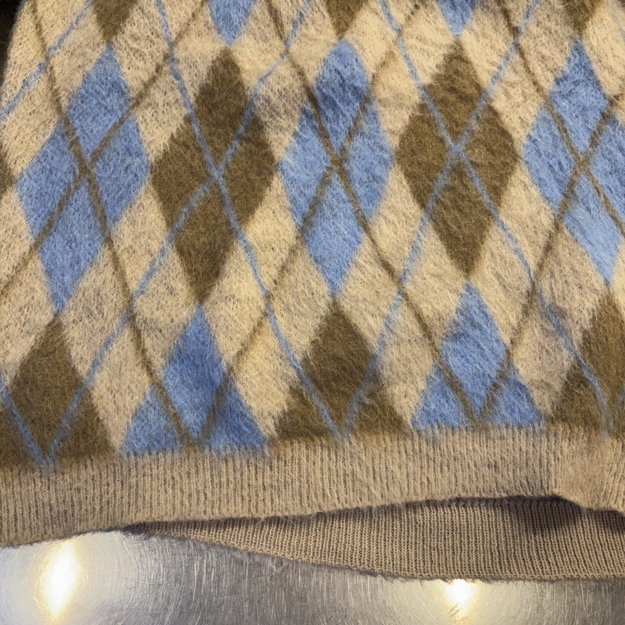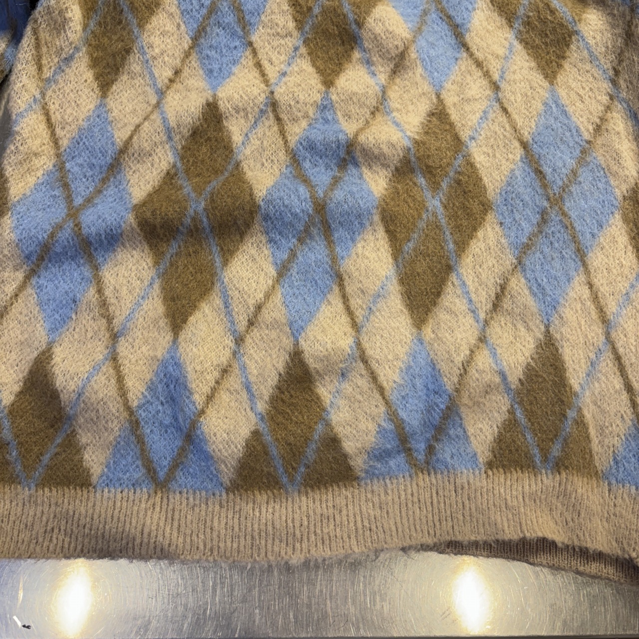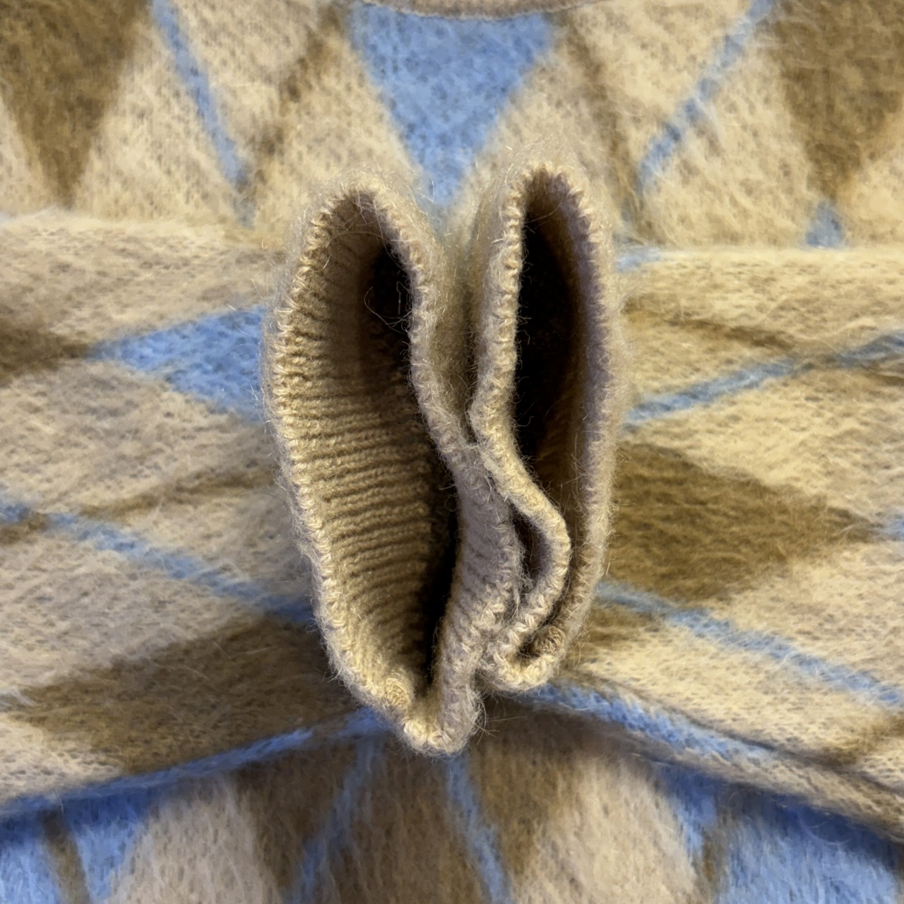 「毛足、アーガイル柄、SIZE M」