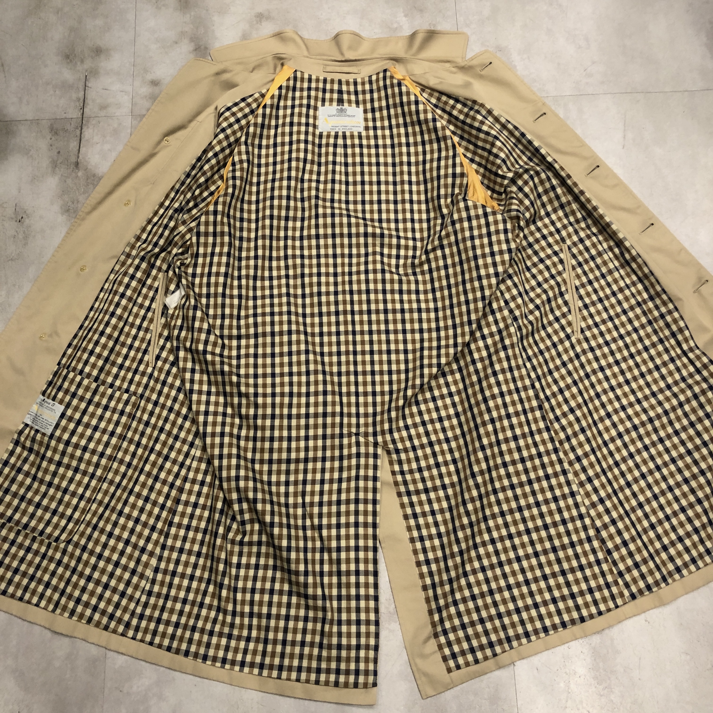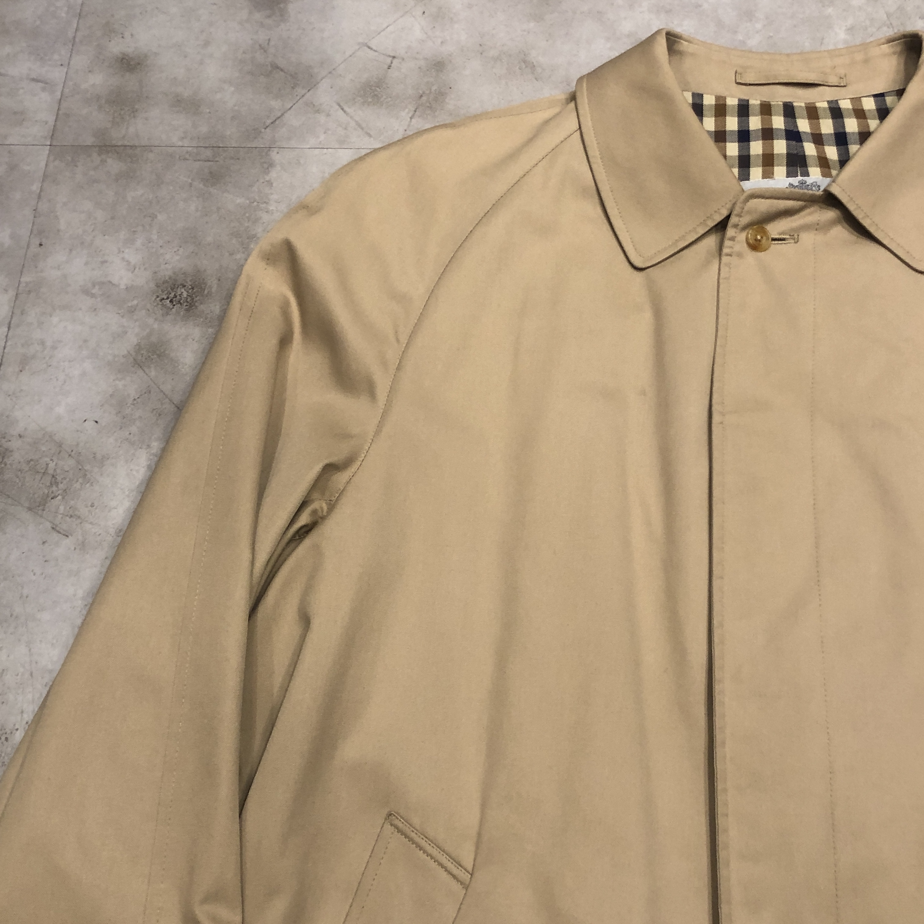 - 英国クラシックの真骨頂。Aquascutumによる、バルマカーンコートのご紹介です。オーセンティックなラグランスリーブに、比翼仕立てのミニマルな面構え、まさに往年のブリティッシュ・テーラリングが息づいています。たっぷりとしたAラインに流れるようなドレープが美しく、まとうだけで空気感が変わるような一着です。まさに「育てる」ために手にしたい逸品。