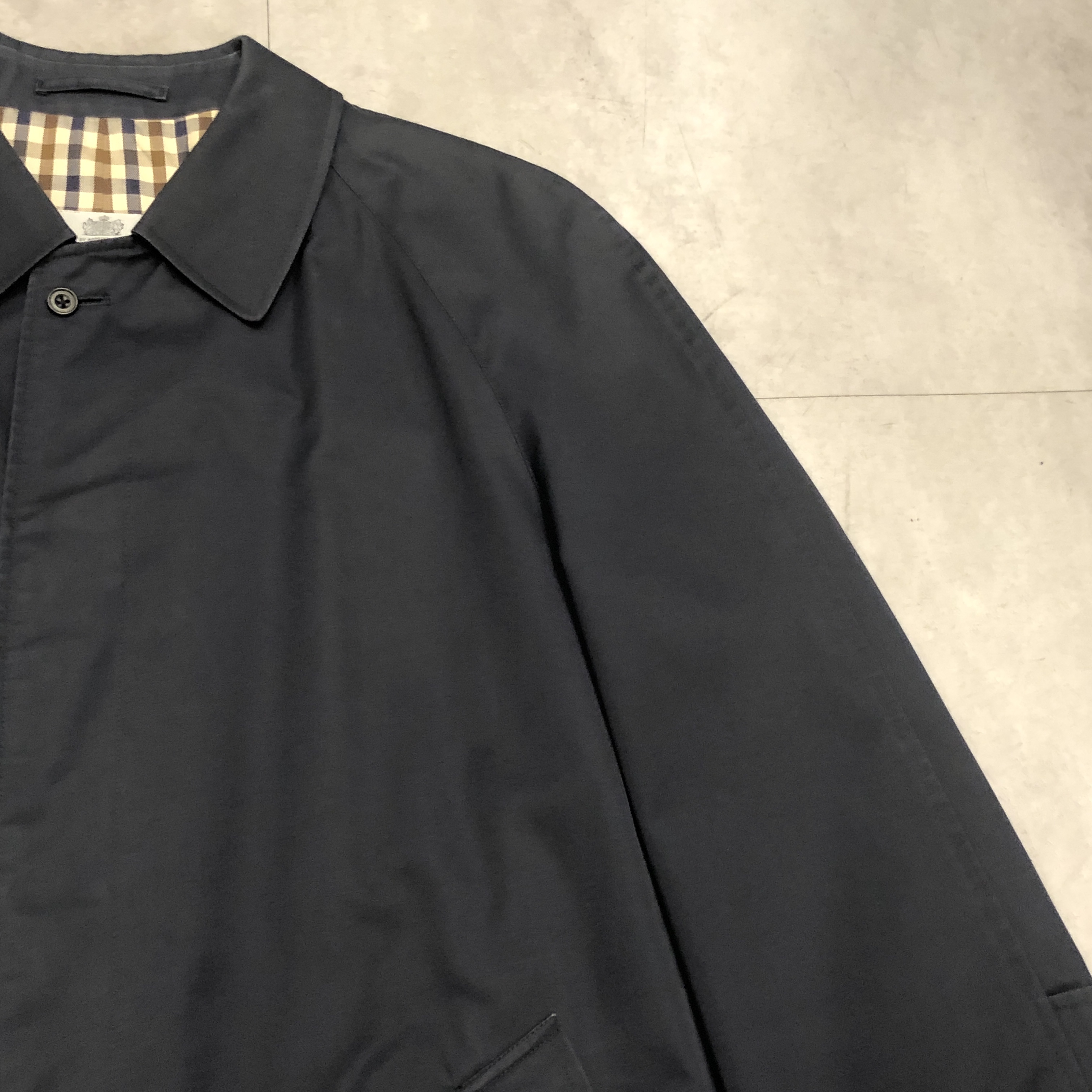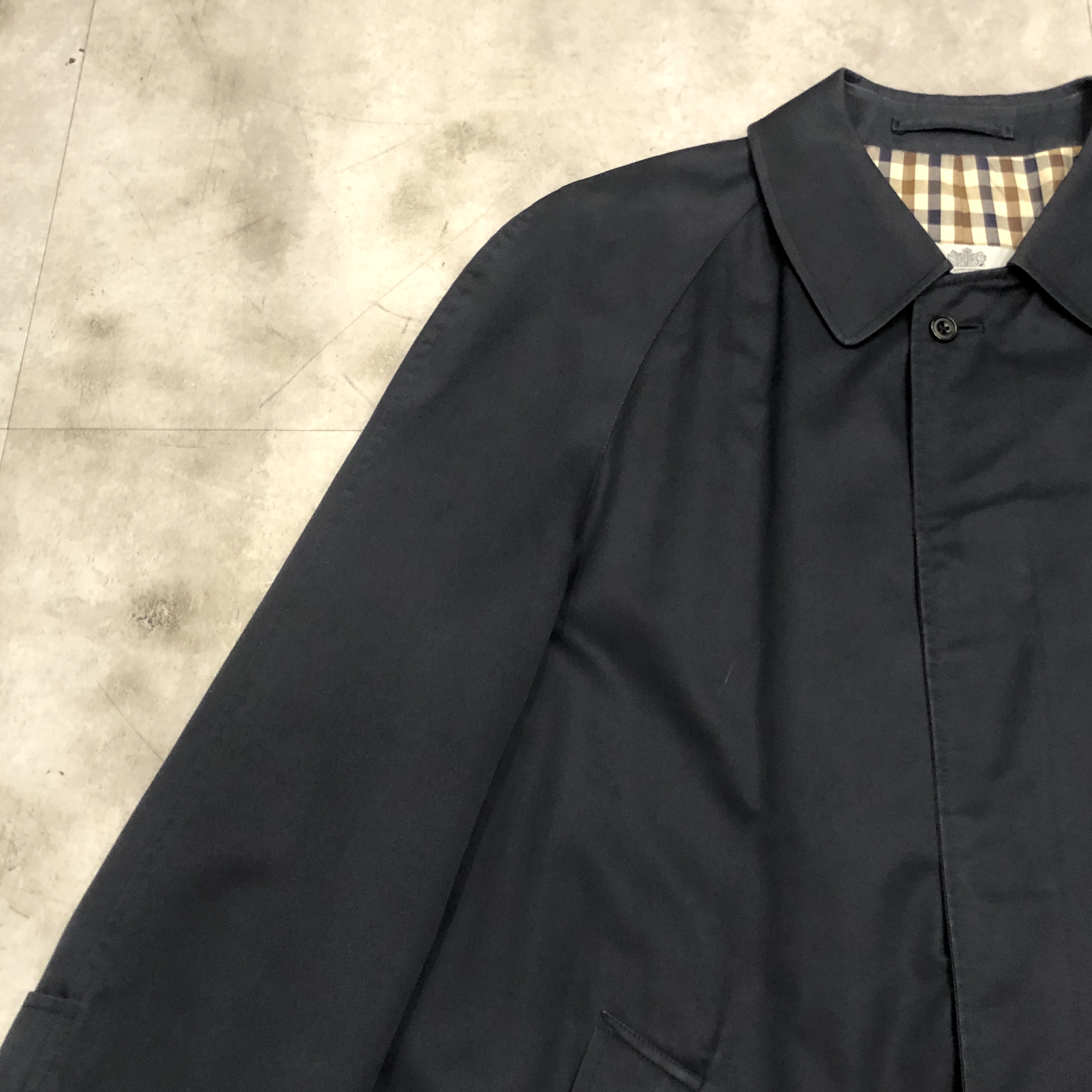 - 英国クラシックの真骨頂。Aquascutumによる、バルマカーンコートのご紹介です。オーセンティックなラグランスリーブに、比翼仕立てのミニマルな面構え、まさに往年のブリティッシュ・テーラリングが息づいています。たっぷりとしたAラインに流れるようなドレープが美しく、まとうだけで空気感が変わるような一着です。まさに「育てる」ために手にしたい逸品。