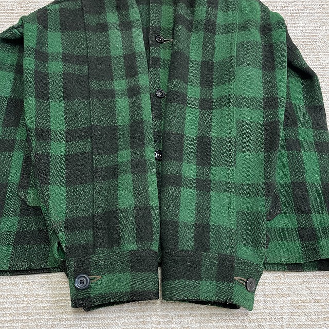 「UNION MADEタグ、旧スナップボタン、グリーン×ブラックチェック」