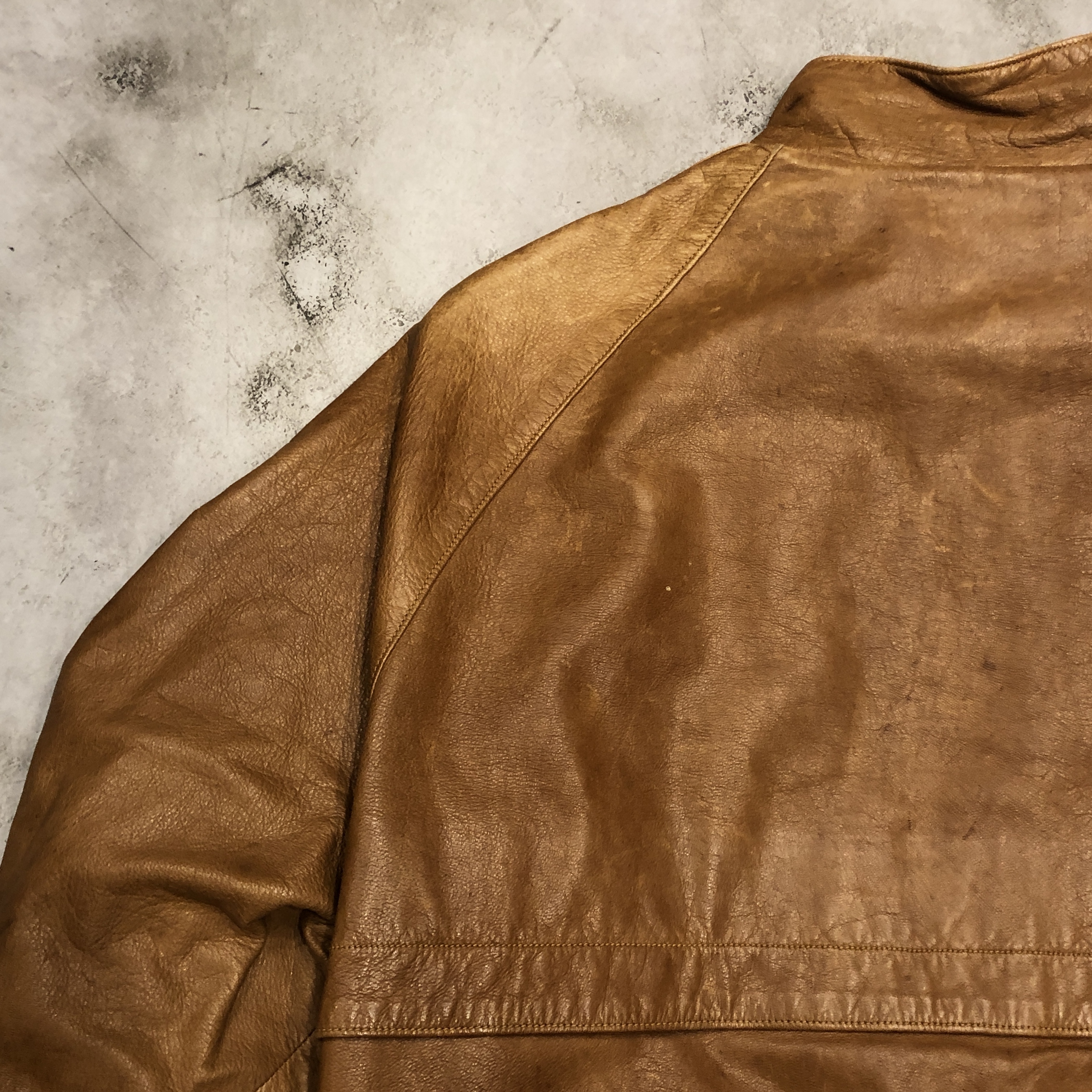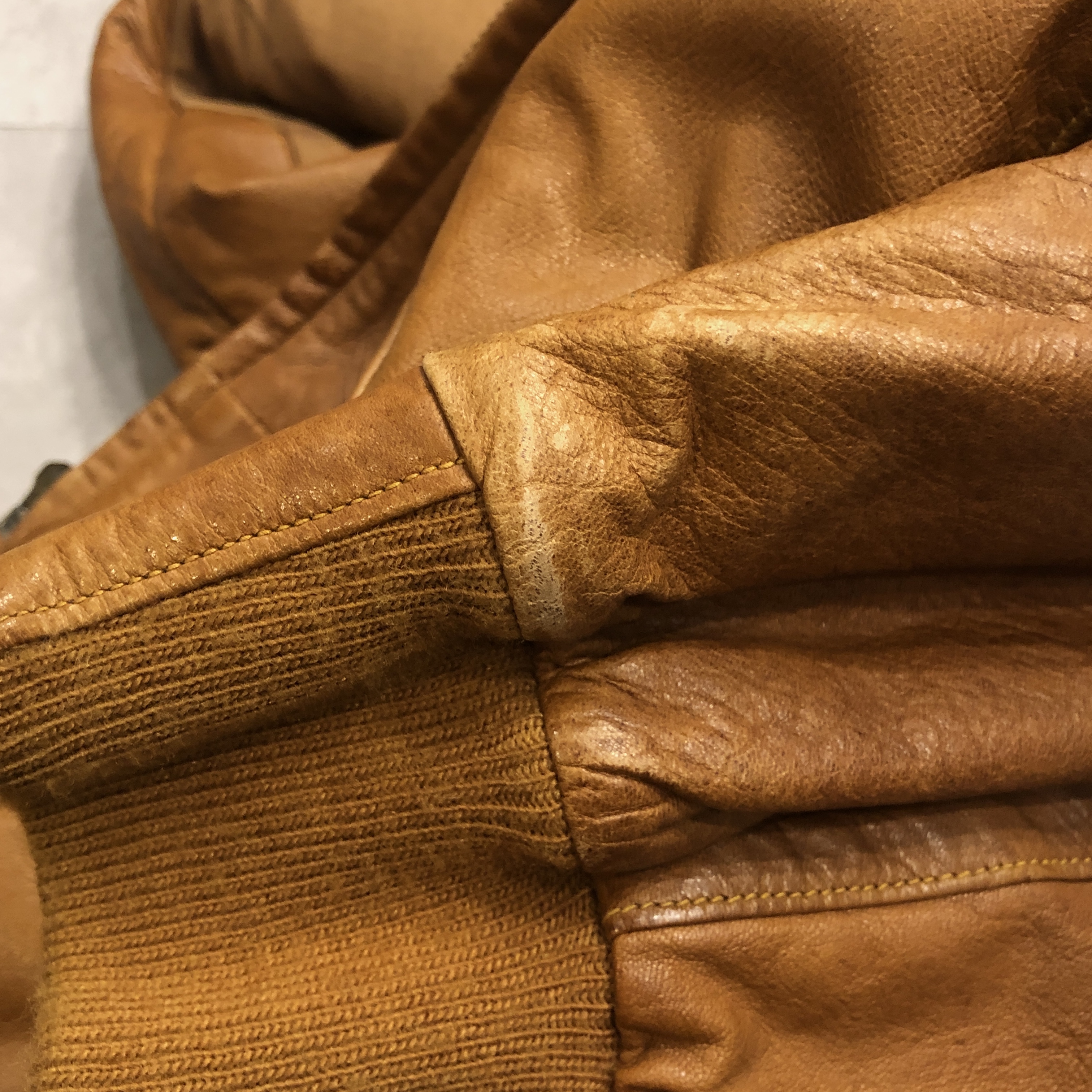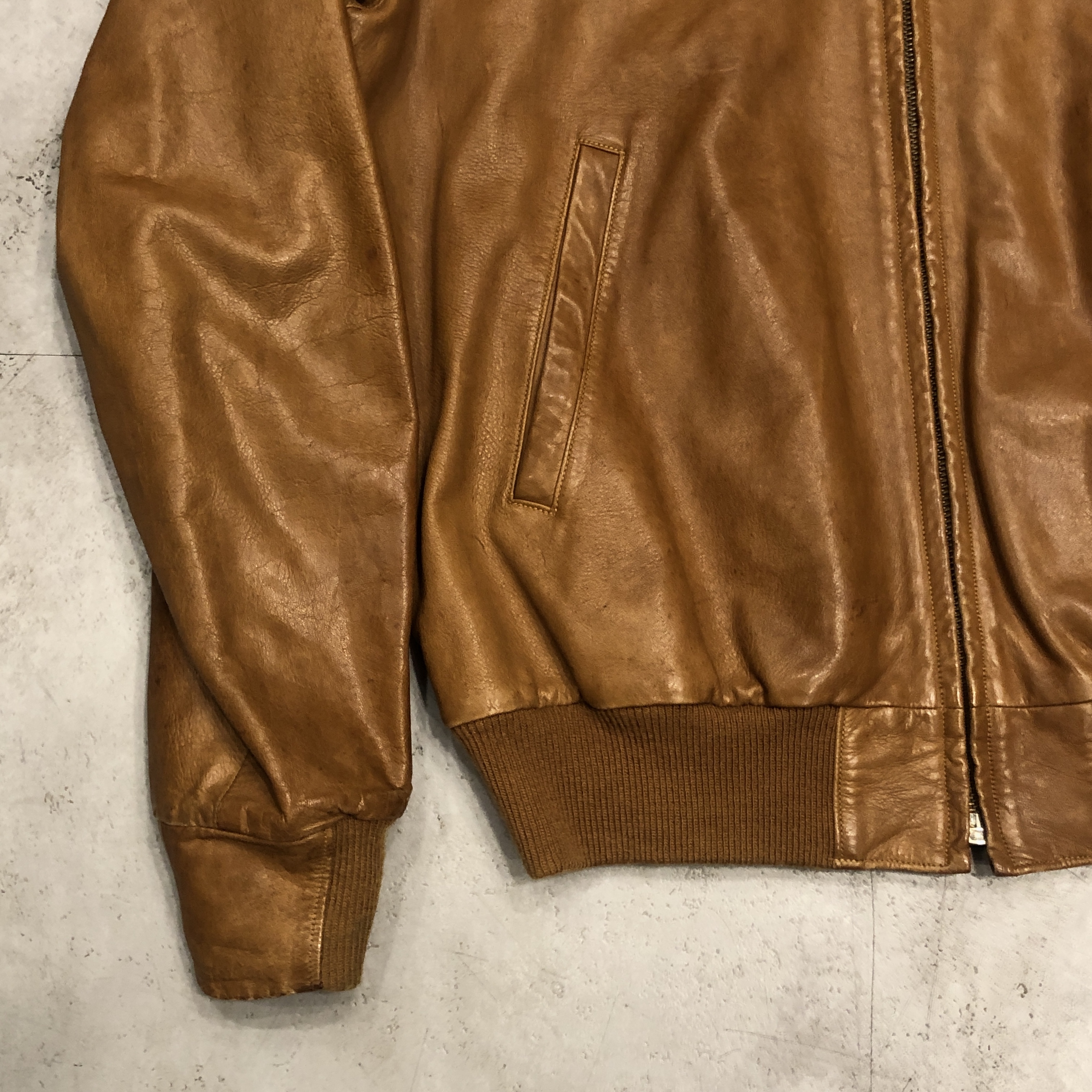 - 年代相応の着用感、レザー部分のスレ、アタリ、シミ等が画像の様にございますが、ヴィンテージ慣れされた方でしたら問題なく着用していただける範囲です。