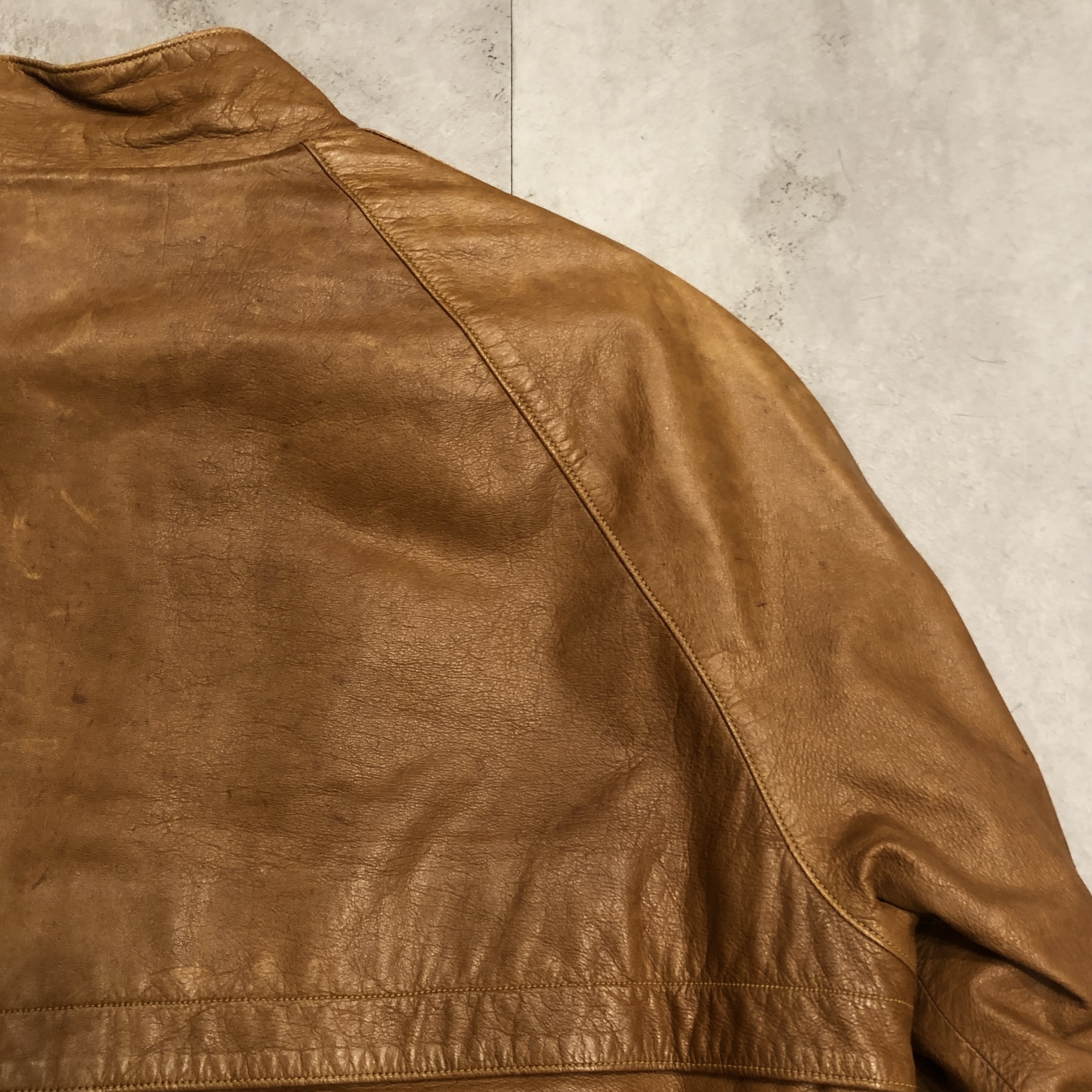 長年の時間を経て生まれた色ムラやシワは、決して「劣化」ではなく、着てきた人の人生を映したような深みです。