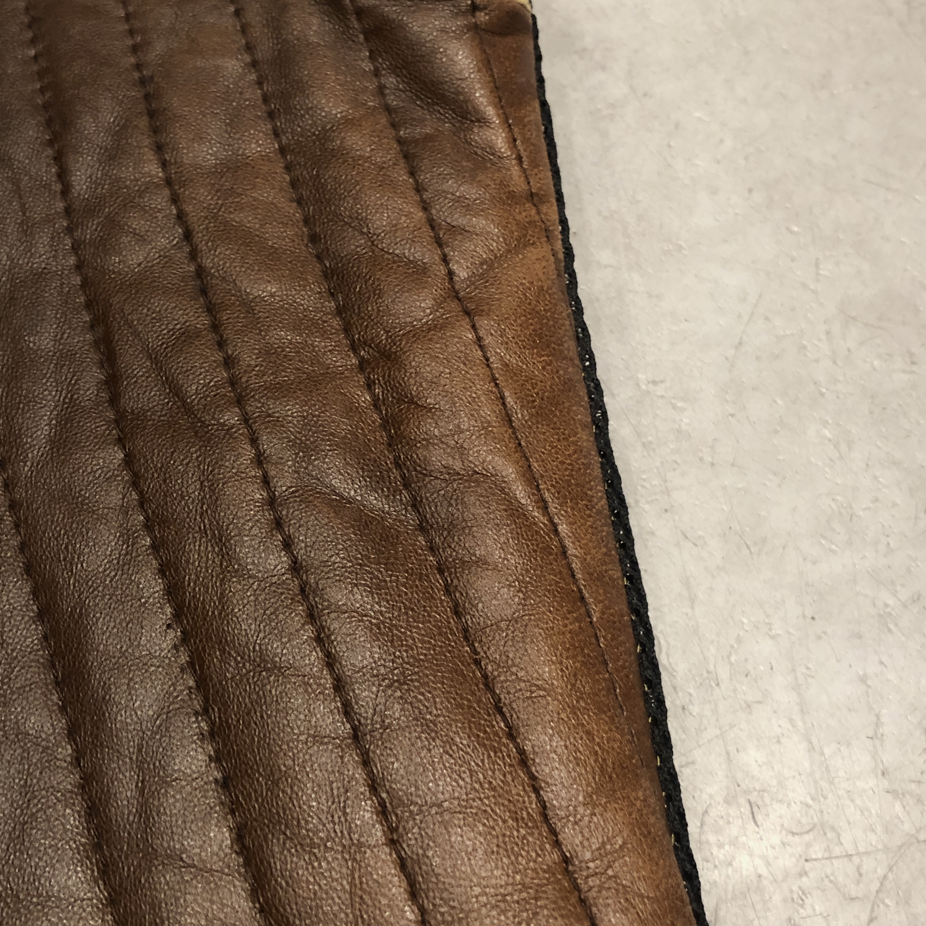 まず目を惹くのは、前身頃に配されたレザーキルティング。