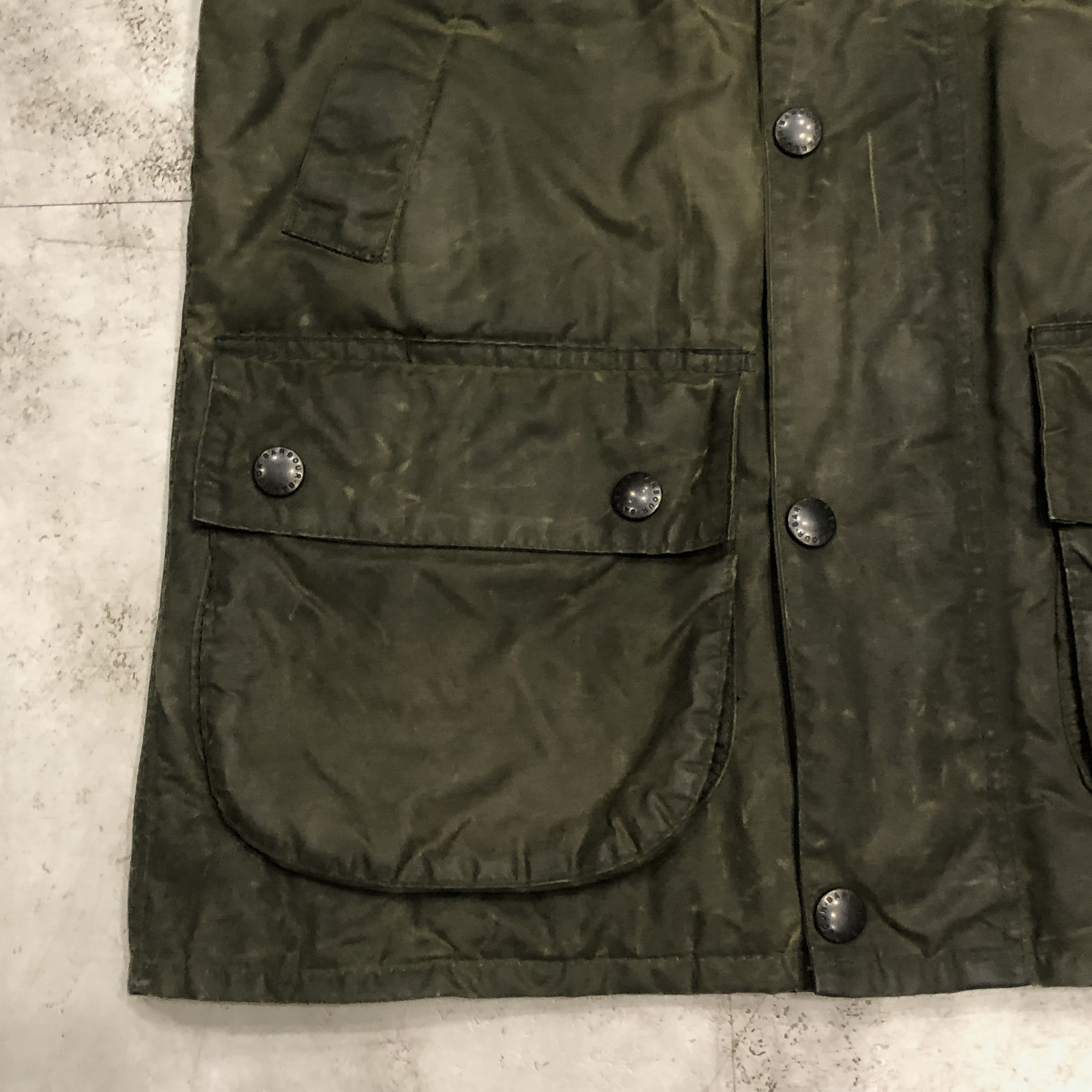 - 年代相応の着用感、オイルド生地特有のアタリや擦れ等が画像の様にございますが、古着慣れされている方でしたら問題なくお使いいただける範囲です。