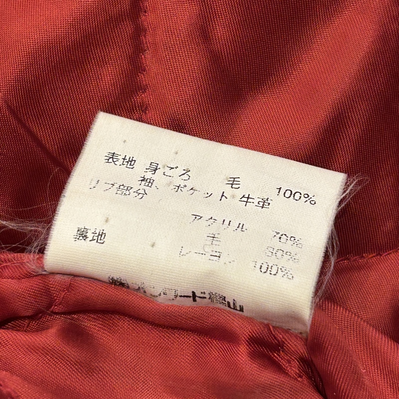 - 毛玉や毛羽立ち、レザー特有の傷やシワがございます。裏地にステッチ抜けがございます。その他に目立つ汚れやダメージ等は無く、古着慣れされた方でしたら問題無く着用していただける状態です。