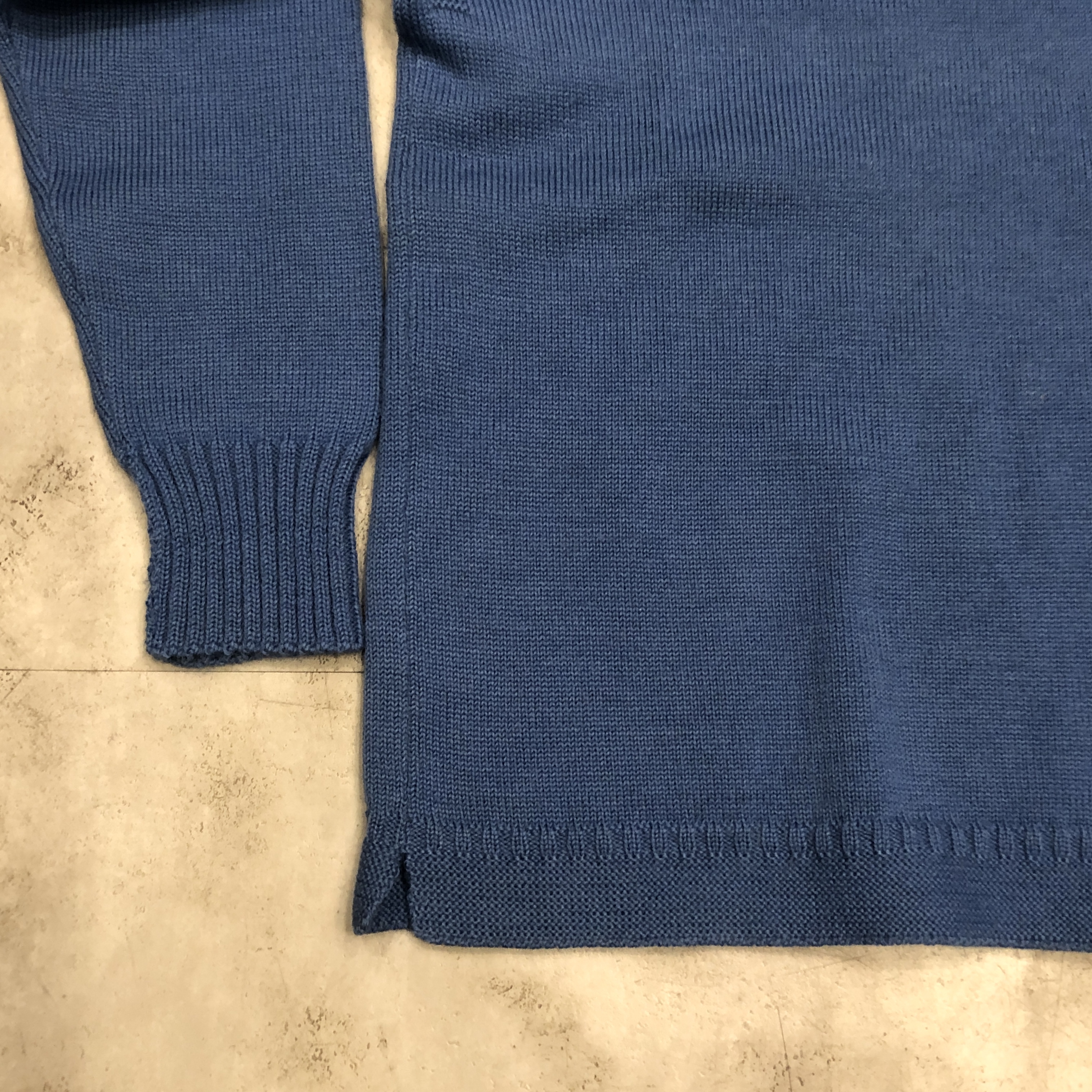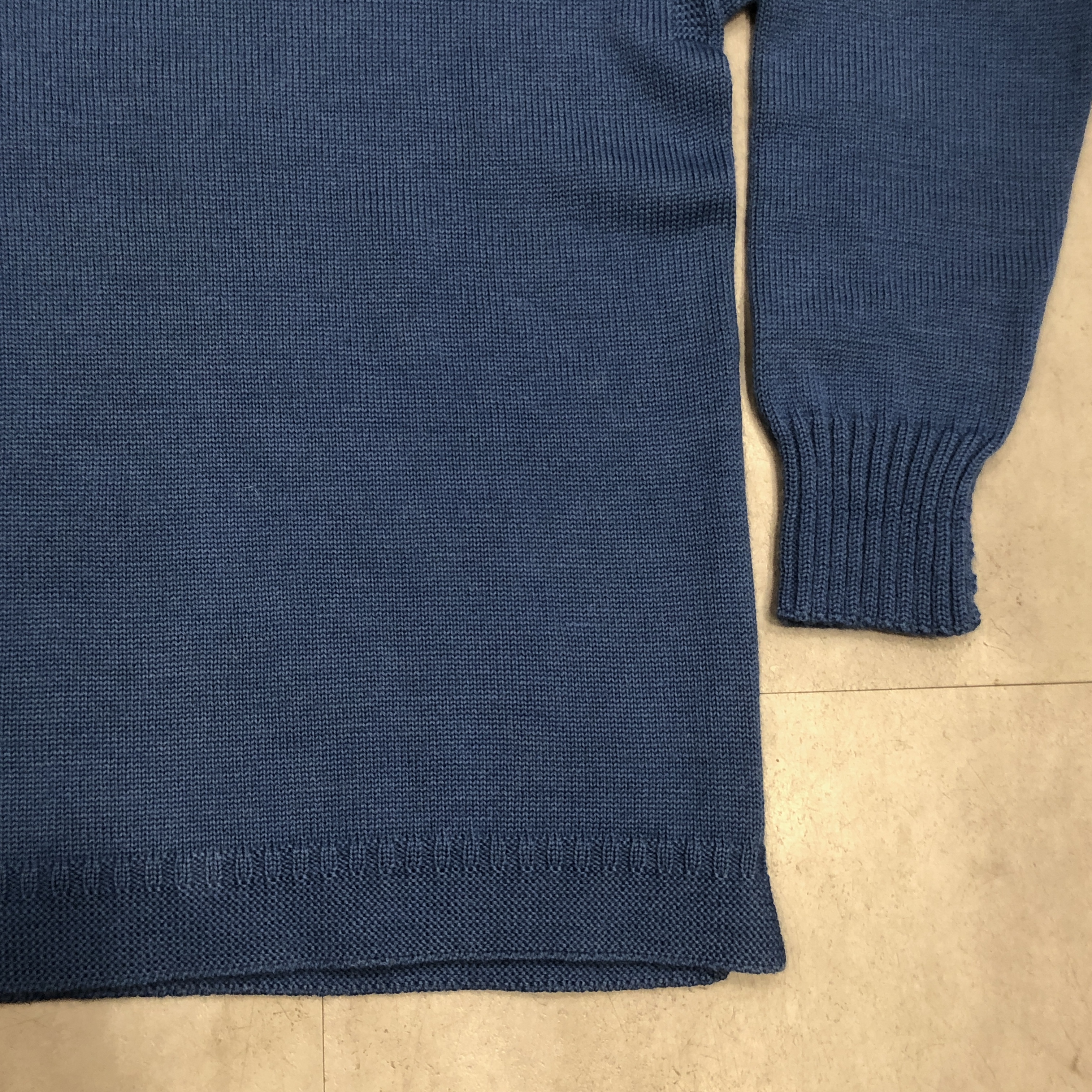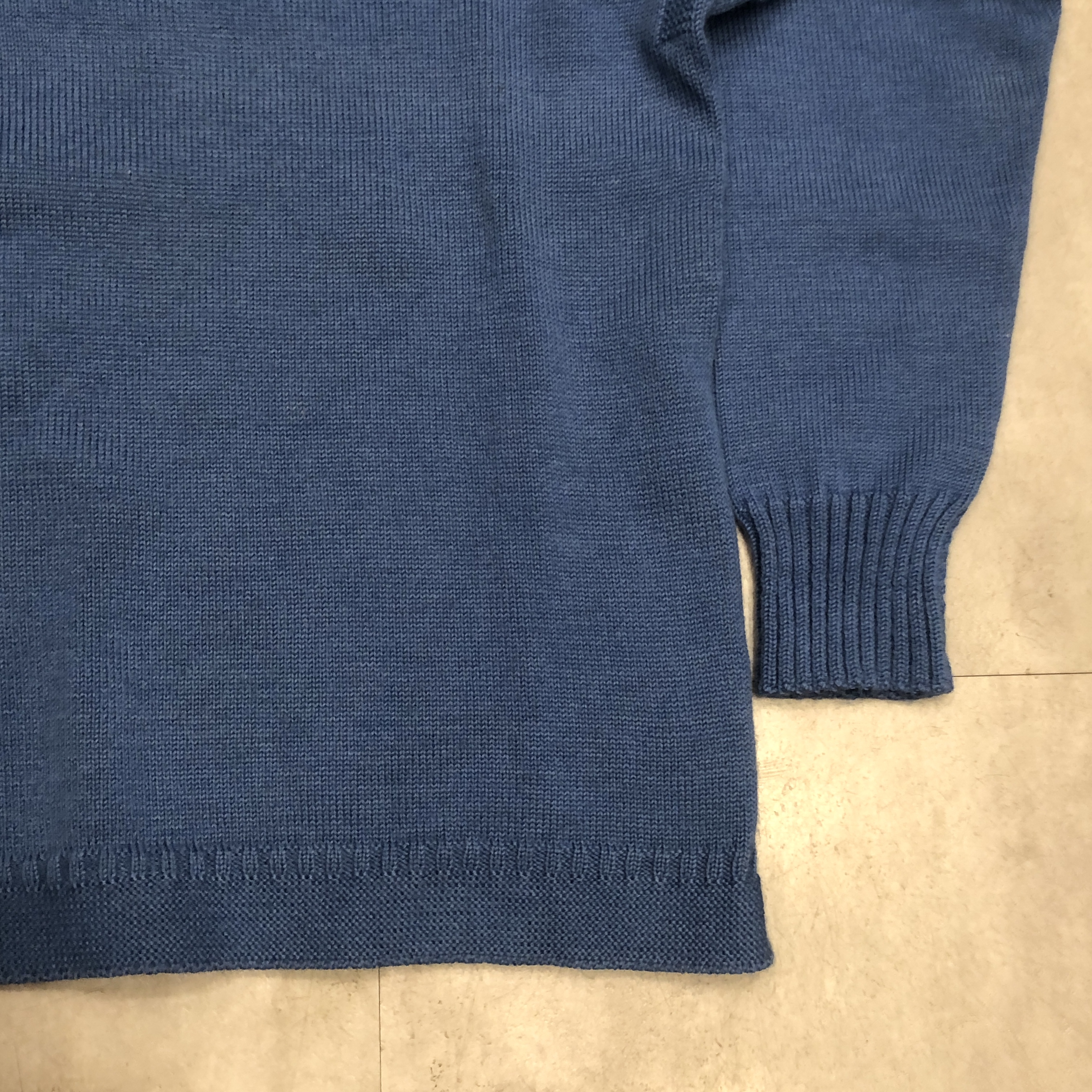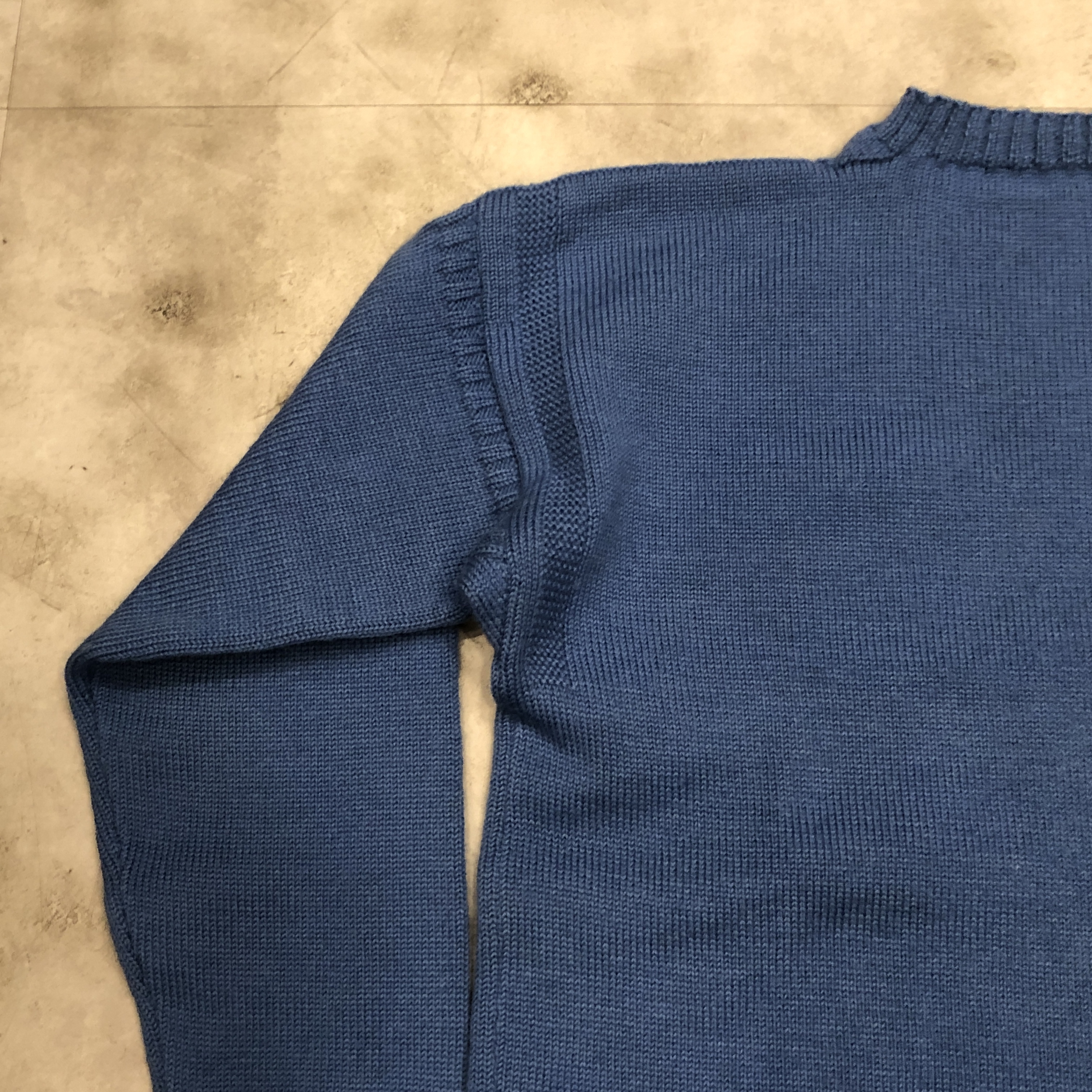 サイズ - 実寸 身幅 53cm 裄丈 84cm 着丈 70cm ※若干の誤差はご容赦下さい。 状態 多少の着用感はございますが、古着慣れされている方でしたら問題なくお使いいただける範囲です。 ※弊社の取扱商品は基本的には中古品の為、写真に写しきれない細かな汚れや、細かな擦れやアタリ等は全てを記載しきれない場合がございます。また撮影環境により、実際の色味に若干の誤差が生じる場合がございます。±2.5cm以内の採寸誤差、イメージの相違や細かなダメージの有無等による返品、返金、交換等は一切承れませんのでご了承下さい。ヴィンテージ、古着にご理解のある方のみご購入ください。 商品詳細 英国チャネル諸島・ガーンジーに伝わる伝統漁師ニットの原型を、いまもなお忠実に守り続ける老舗 LE TRICOTEUR(ル・トリコトゥール)。 クラシックなガーンジーセーター最大の魅力は、無駄を削ぎ落とした機能美だけで成立するミニマルなデザイン。海での過酷な労働に耐えるために生まれた、目の詰まったピュアウールの編み地は、防風性・保温性ともにずば抜けており、現代のアウトドアウェアとは異なる“天然素材だけで完結する完成度”が感じられます。 ぜひ、この機会にお迎えください。