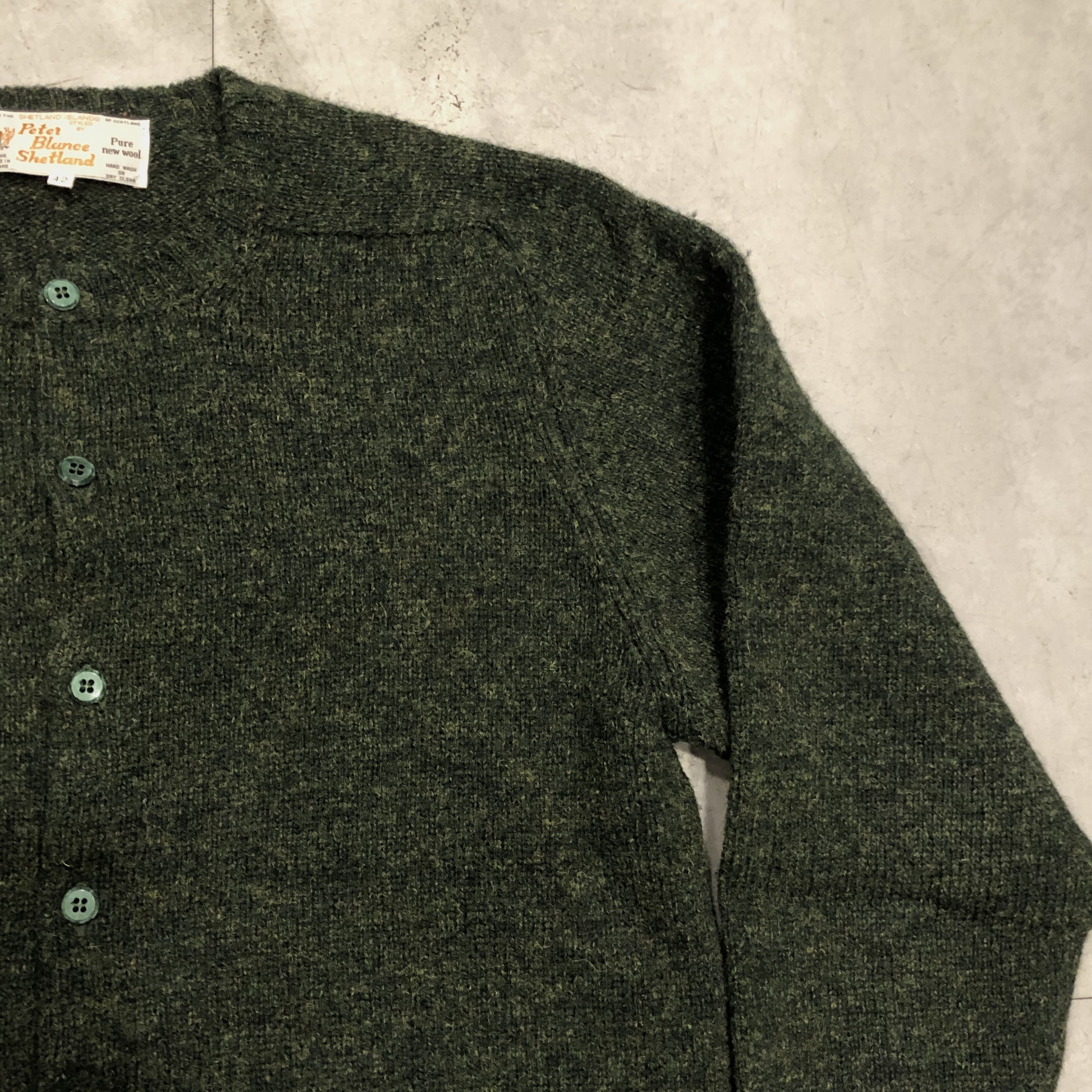 正真正銘の Shetland Wool Knit cardiganです。