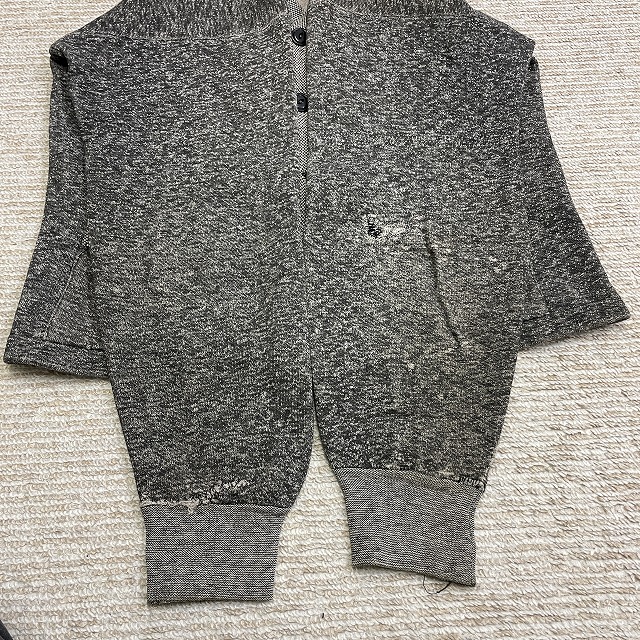 - 画像のように、フロント第3ボタンが欠損しており、袖やポケット部分等にリペアがございます。