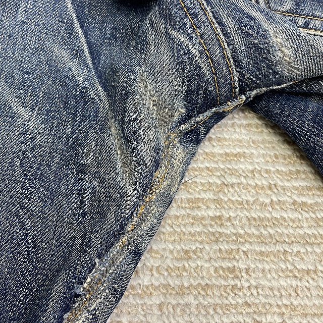 - 画像のように、スレ、アタリ、小傷があり、股にリペアがございます。