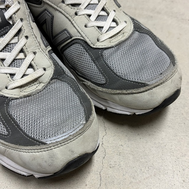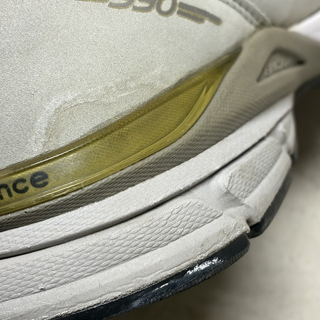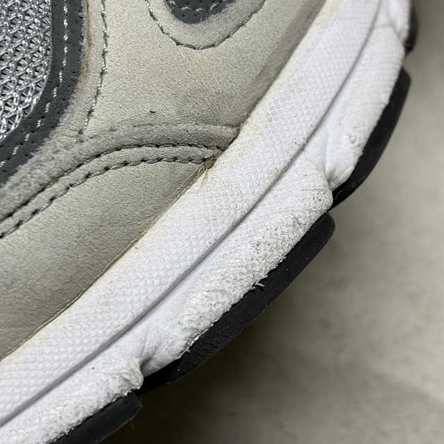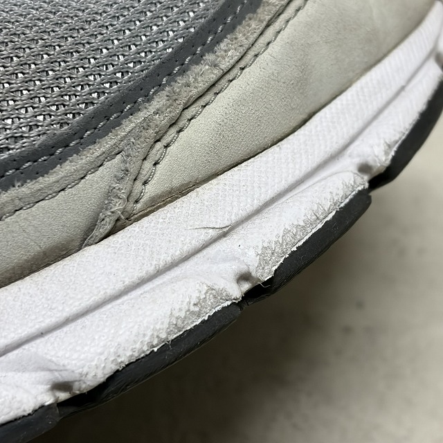 - アッパー、ミッドソール、アウトソール所々に画像の様な薄汚れ、スレがみられます。また、履きジワ等の着用感はございますが、まだまだ問題なく着用していただけます。