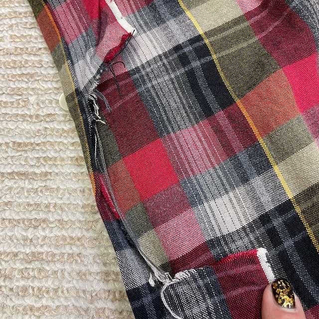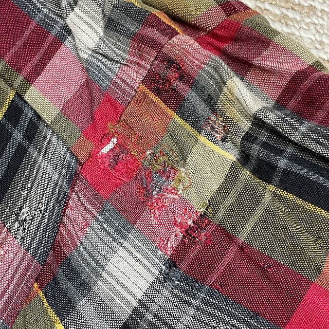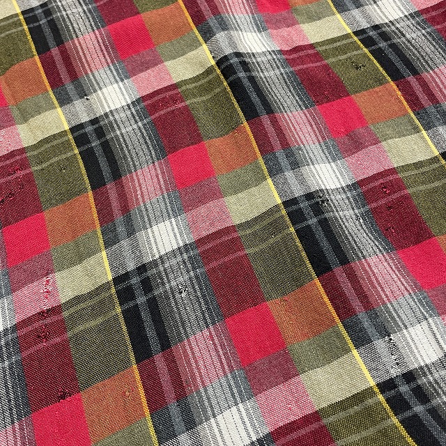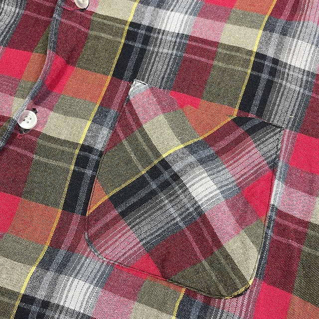 レッド×ブラック×グレーなど多色のチェックレーヨンシャツ。