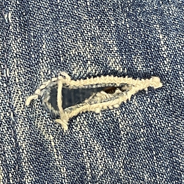 第1ボタンホールに手縫いで簡易的なお直しがございます。