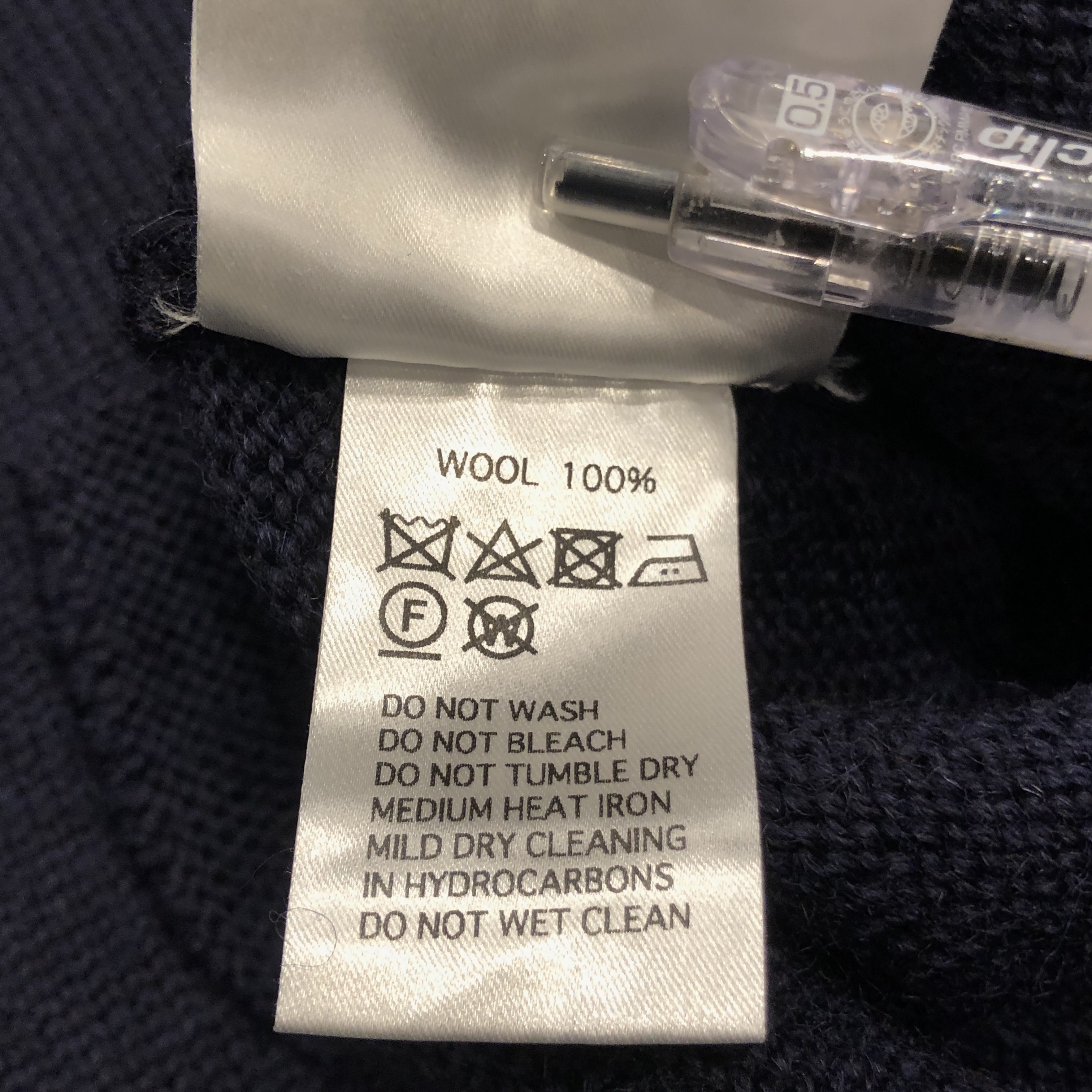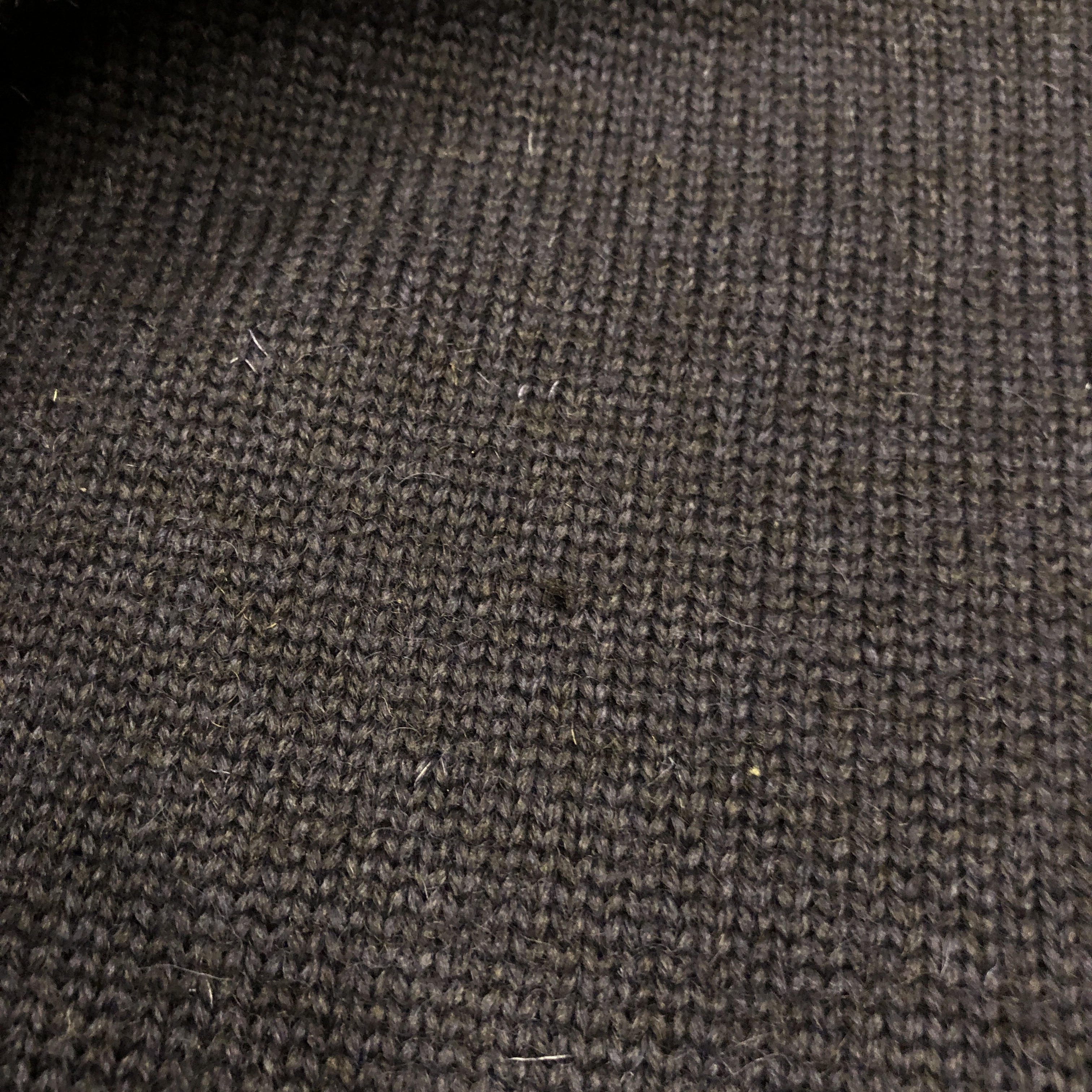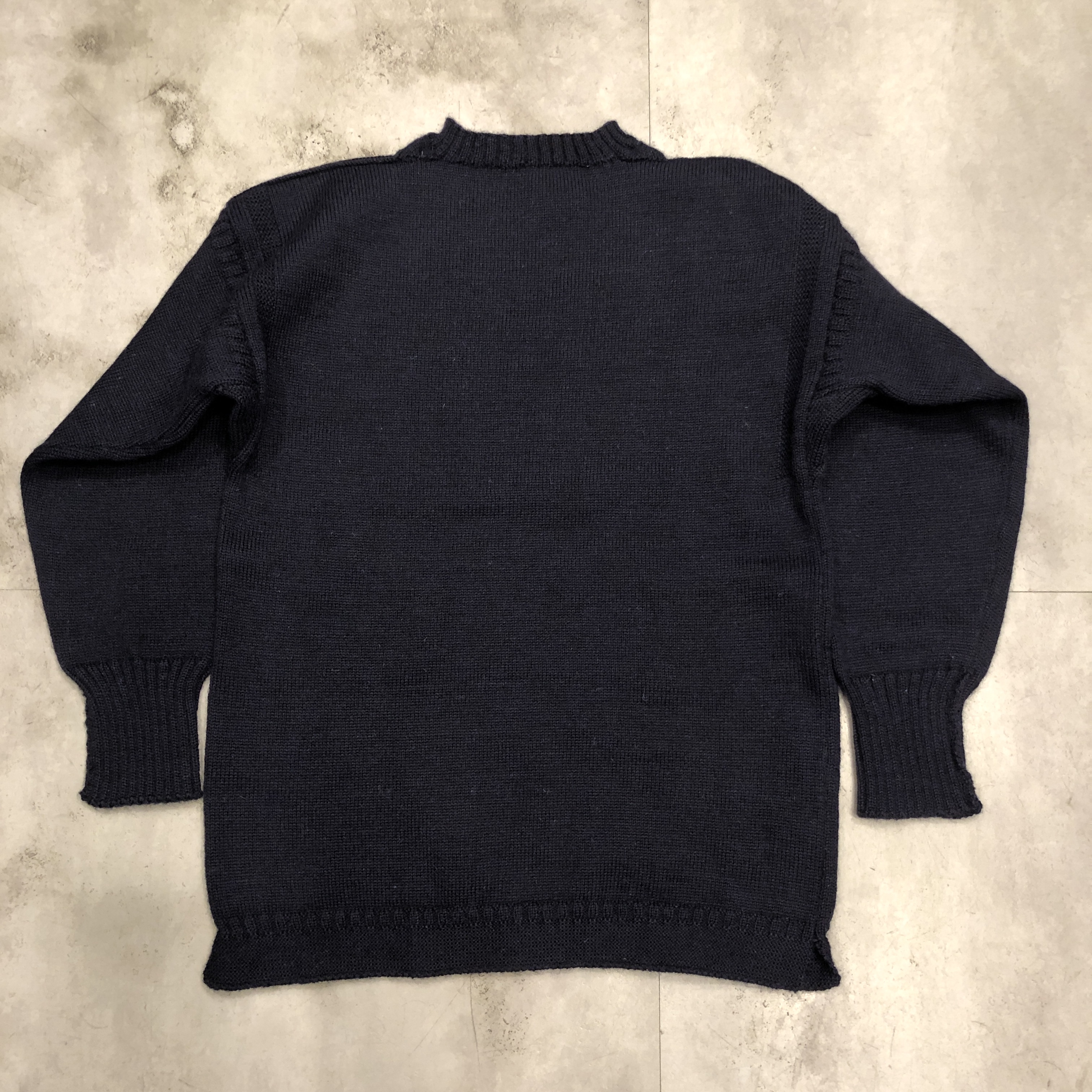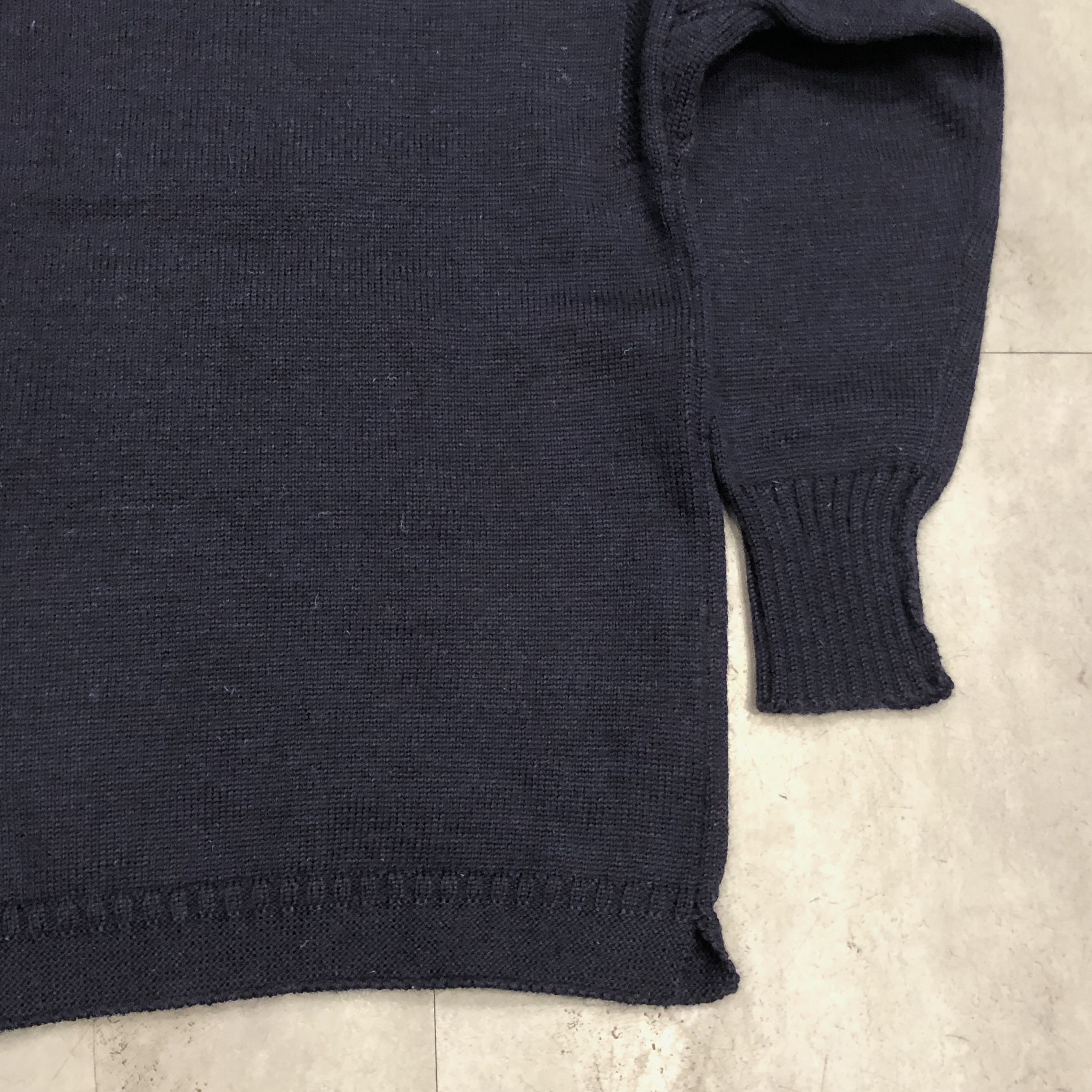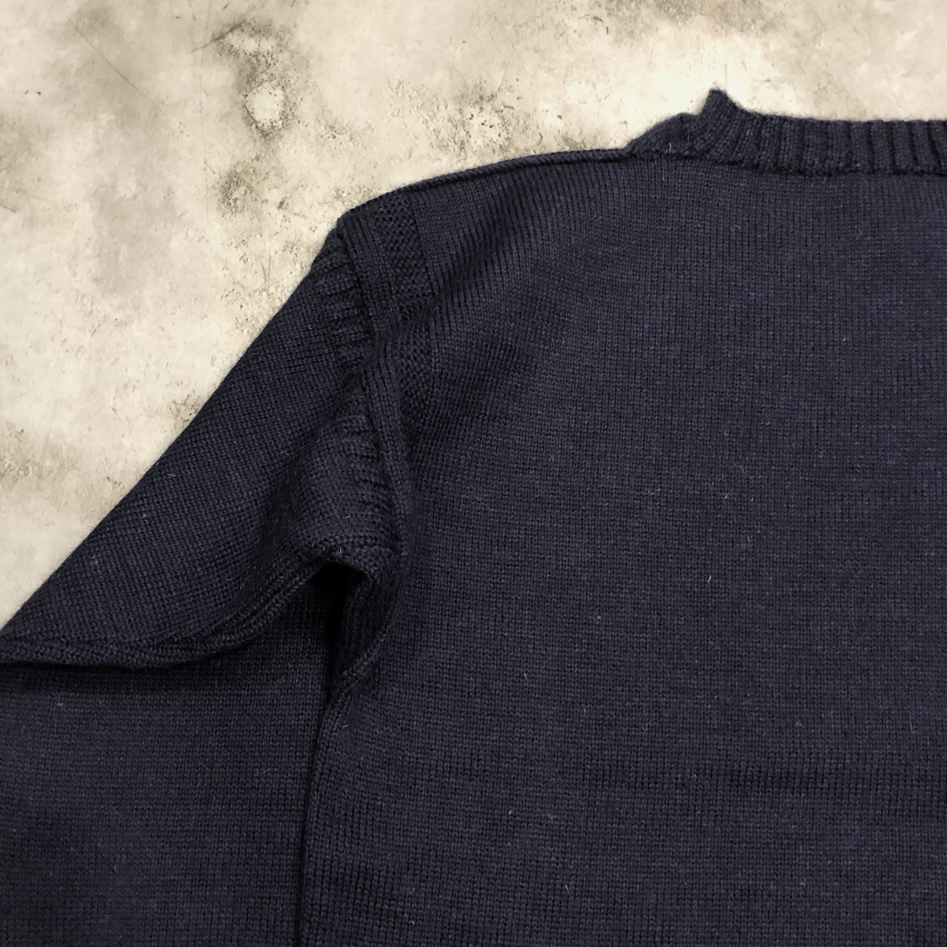 こちらの個体──ネイビーカラーのガンジーは“通好みのカラー”。ファッションではなく生活の道具として生まれたニットが、結果的にモードにすら見えてしまうという、ガンジーならではの魅力が際立ちます。
