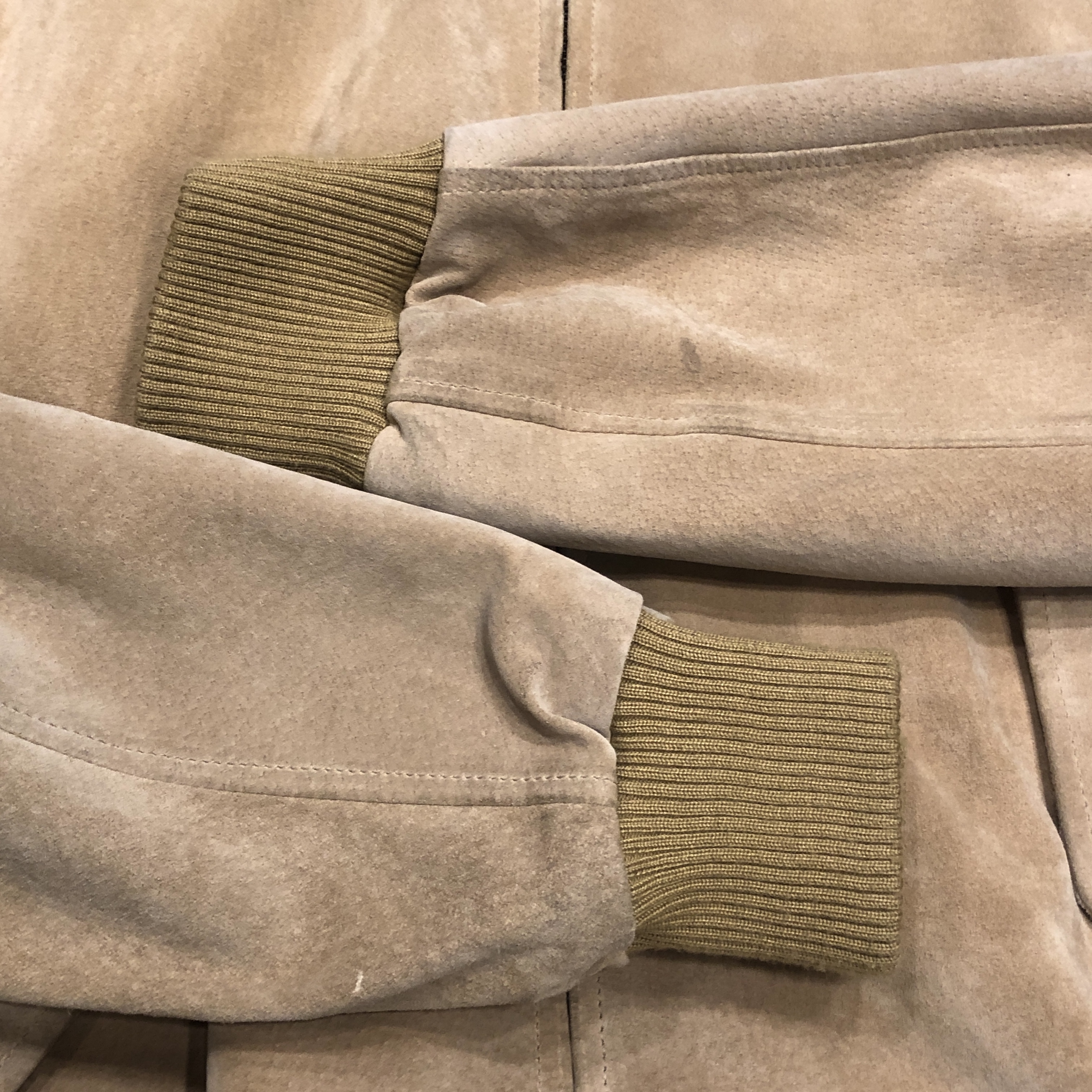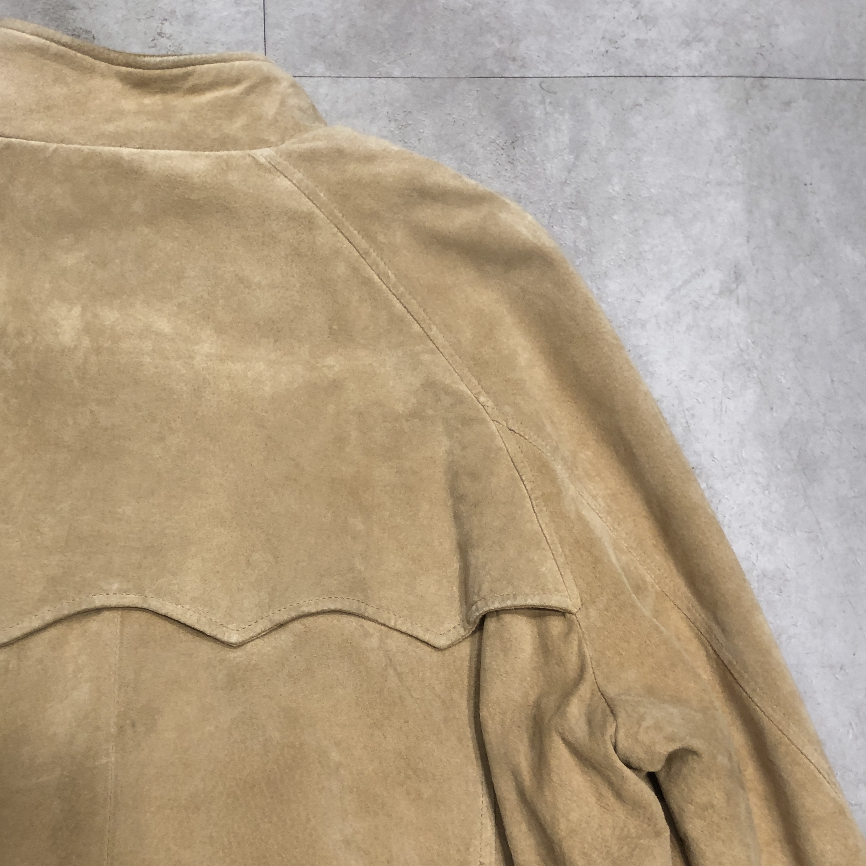 スエード特有の色ムラや経年変化も、このジャケットの魅力。