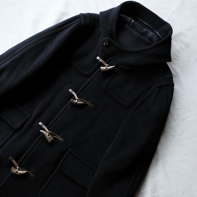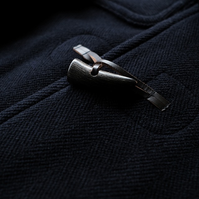 - 今はなき名ファブリック"ムーアブルック"のヘリンボーンウールを使用したダッフルコートが入荷です。HERMESやINVERTERE等名だたるブランドがダッフルコートに使用していた生地ブランド。ダッフルコートのイメージを覆す軽さ、保温性の高さ、柔らかな質感等全てにおいて最高峰です。こちらは日本のTAKESHI YAJIMAメイドの個体。