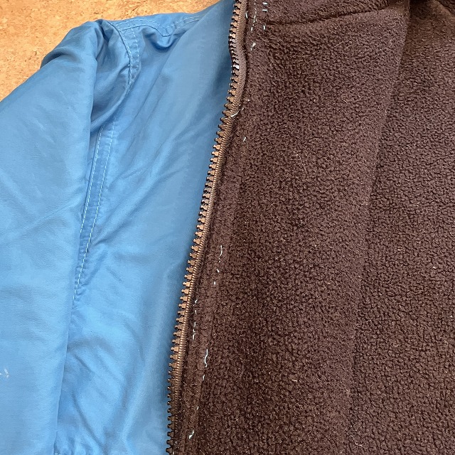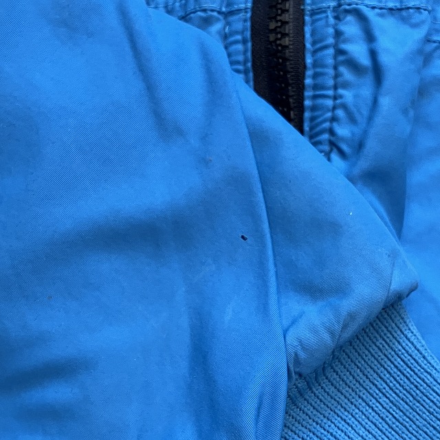 - 所々に画像の様な、薄汚れや小穴がみられます。また、ジッパーステッチのほつれがみられます。その他、スレ、アタリ、毛羽立ち等の年代相応の着用感はございますが、ユーズド慣れされている方でしたら、まだまだ問題なく着用していただけます。