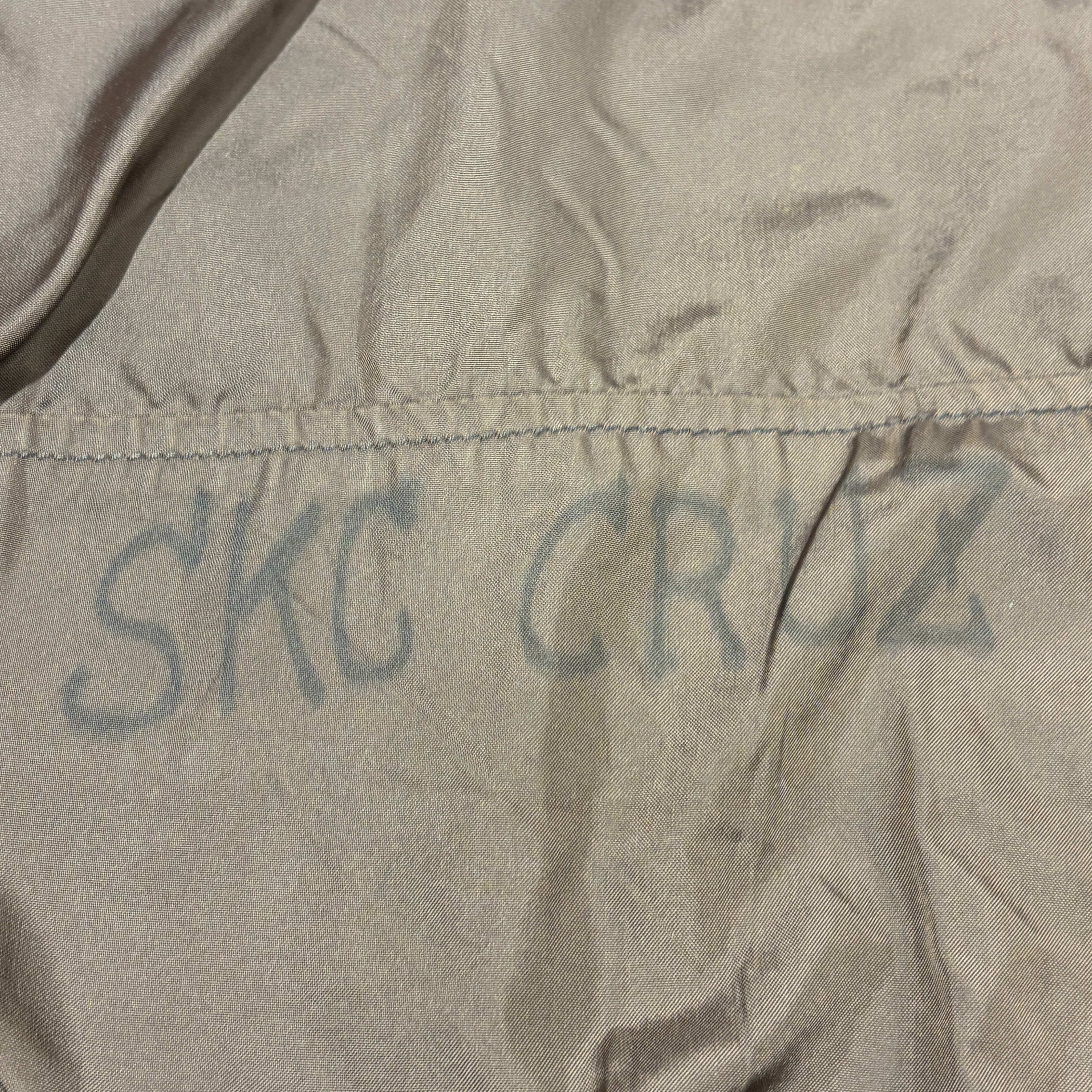 - リブダメージ、小穴、左ポケットボタン欠損、その他全体的に着用感はございますが問題なく着用可能な状態です。