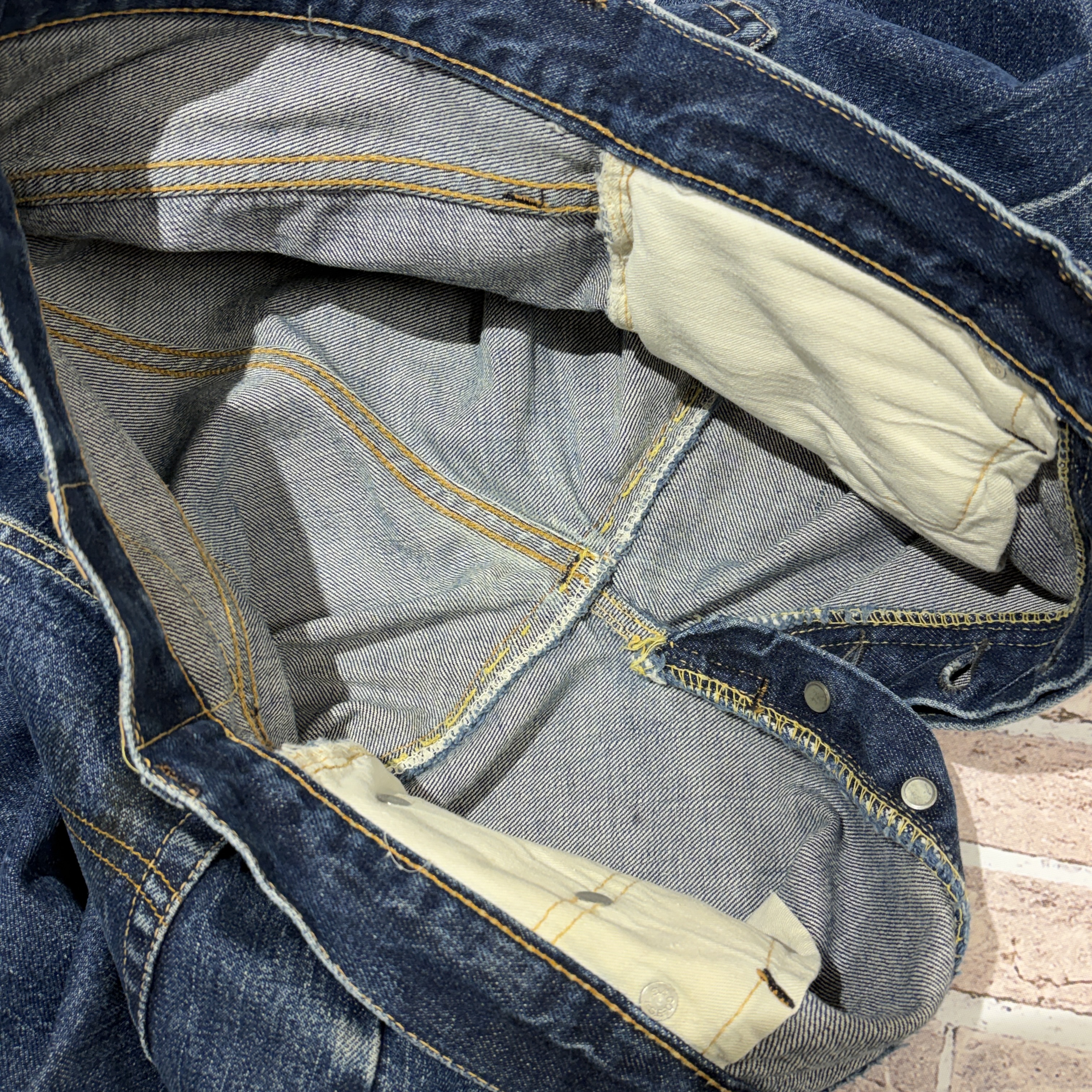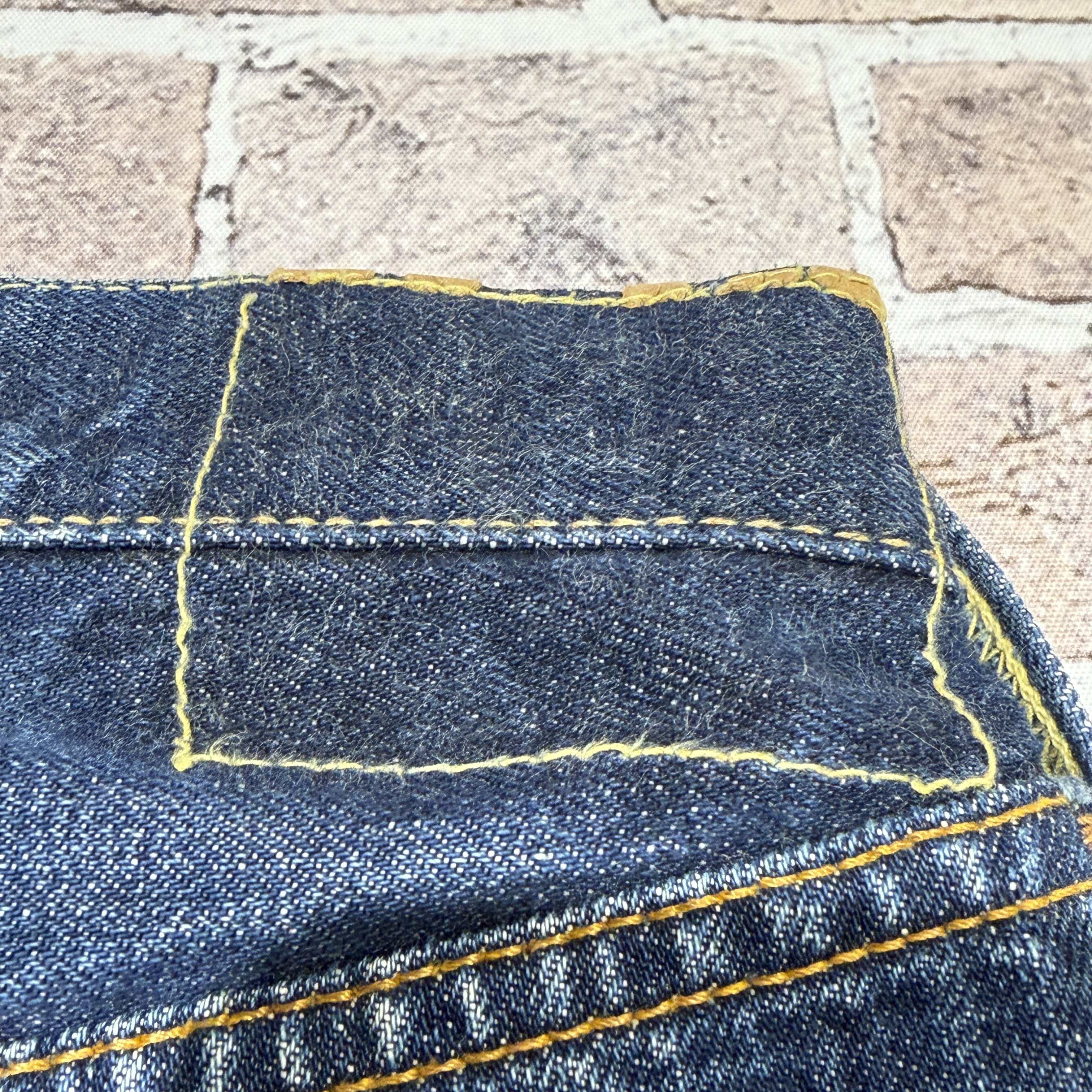 「WAIST SINGLE、色残り7割程度、実寸 W29 L27.5」
