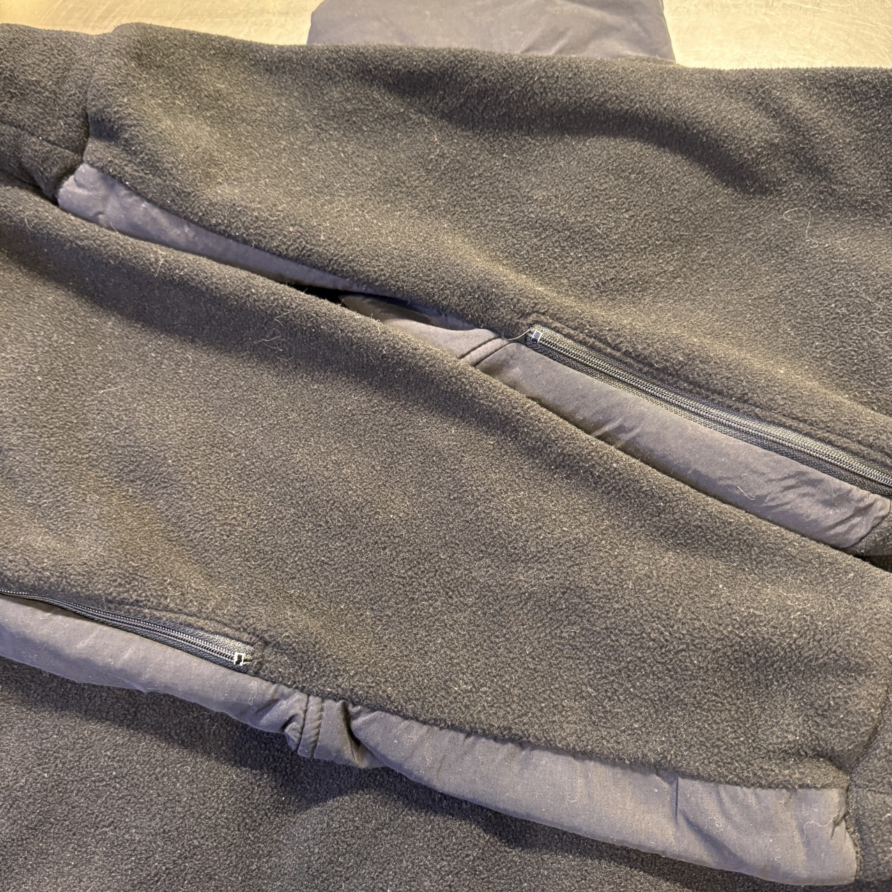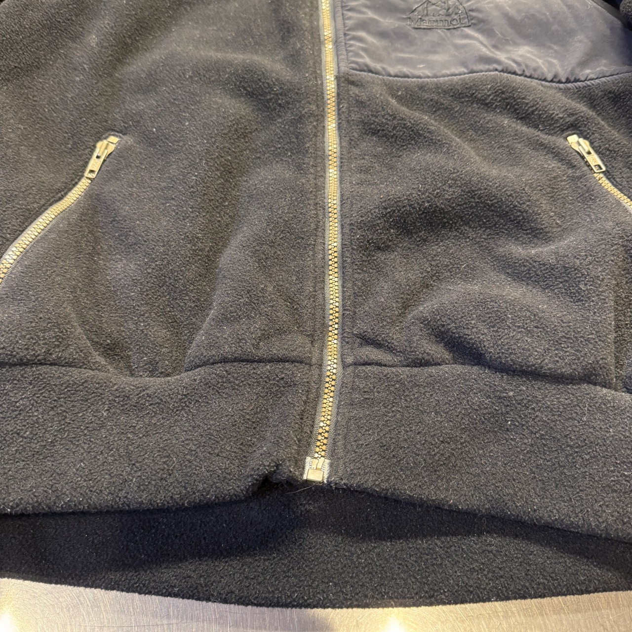 胸元片方に逆ハの字ジップが付くブラックフリースジャケット!