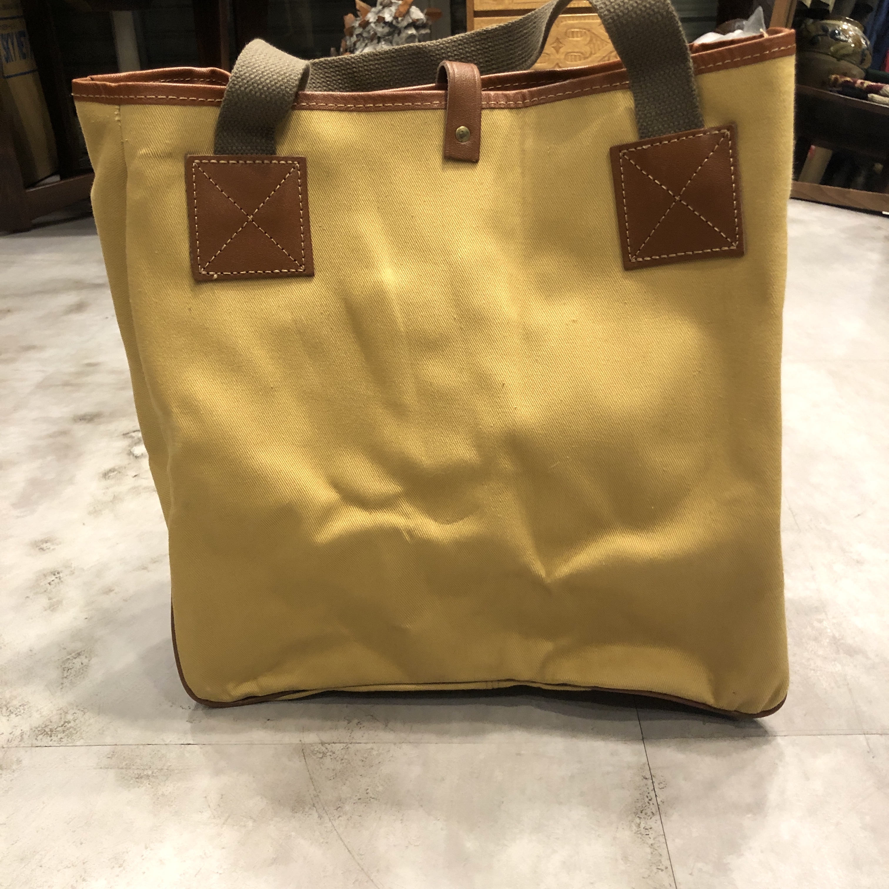 厚手のオリーブベージュキャンバスに、