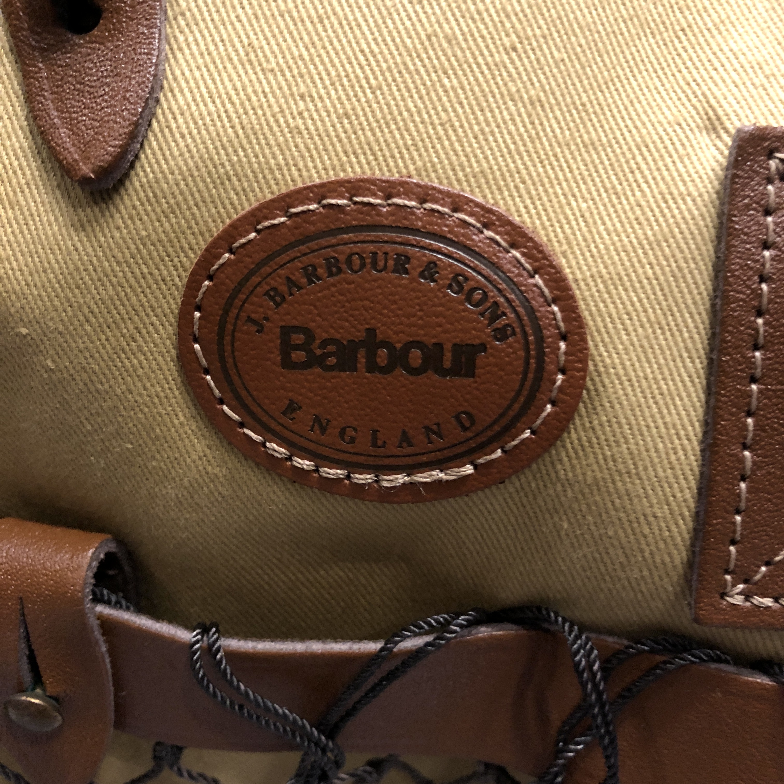 J.BARBOUR & SONS刻印入りのブラウンレザー。