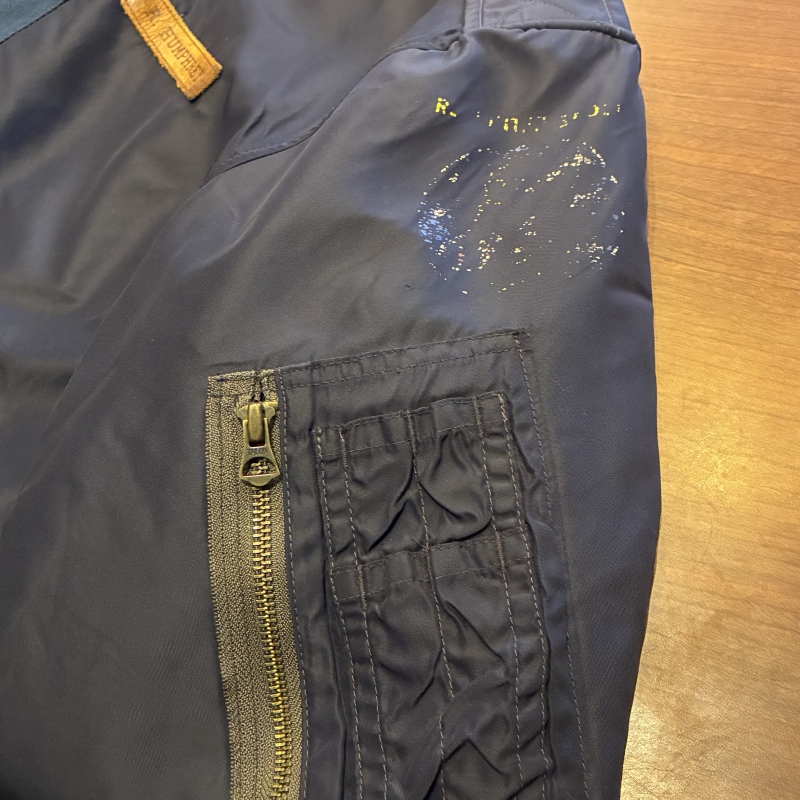 - コットン地側の袖に画像の様な小穴、跡と所々に薄汚れやアタリ等が見られます。
