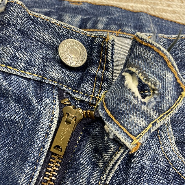 ウエストボタンホールにホツレがあり、左膝裏付近に糸ツレがございます。